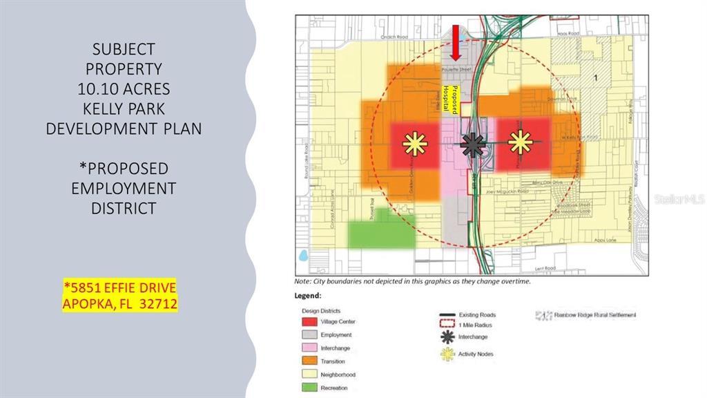 10.10 ACRES OF VALUABLE LAND in the Proposed "Employment District" of the Kelly Park Development Plan. CENTRAL FLORIDA'S hottest market IN THE EPICENTER OF APOPKA'S GROWTH for generations to come. This land is only a few lots from the Proposed Orlando Health Hospital Site on Effie Dr. Minutes from the 429 Interchange and Publix Shopping Center. This high and dry mostly cleared land is a great opportunity for the near future development in this area. It is included in the 565+ Acres located in the Northwest Quadrant of the Greater Orlando's 429 Beltway. On January 19, 2024 The Wyld Oaks, mixed-use destination, broke ground for a new live + work + shop + dine + unwind destination. It will include up to 280,000 sq ft of retail space, 70,000 sq ft of restaurant space & pubs, two hotels 3,000 to 4,000 multifamily and condominium residences., expansive outdoor entertainment venue,, up to 200,000 sq ft of office space, a 10 acre park with multi use trails, dog park and preserve. In close proximity are future shopping centers, a regional mall, a Hospital, medical offices, a theater, and single family/multi-family residential homes. One of the fastest growing sub-markets in the Orlando area. LOCATION, LOCATION, LOCATION...IT'S NOT JUST A PHRASE IT'S REALITY! Don't miss this opportunity as an investor or developer in the PRIMARY high-intensity development within the One-Mile Radius of the Interchange. See Photo#2 for the design districts. THE VALUE IS IN THE LAND! Call for an appointment to view the property today.