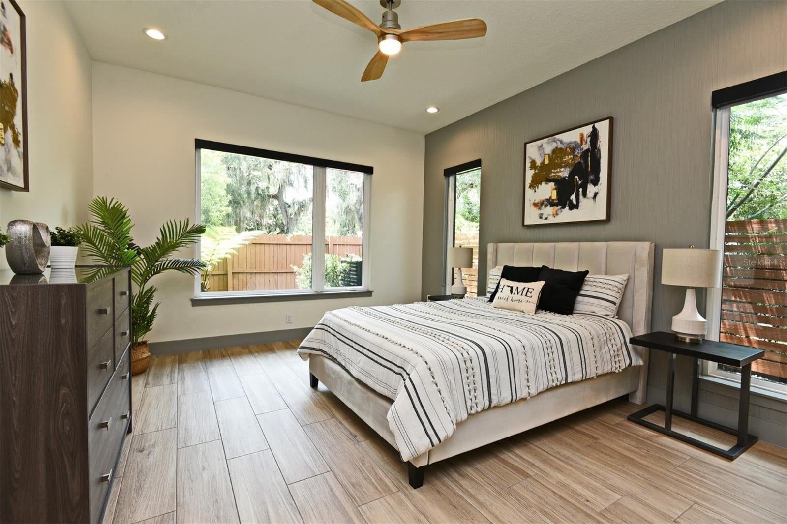 - Ceiling Fans(s), High Ceilings, Kitchen/Family Room Combo, Primary Bedroom Main Floor, Open Floorplan, Split Bedroom, Stone Counters, Walk-In Closet(s), Window Treatments