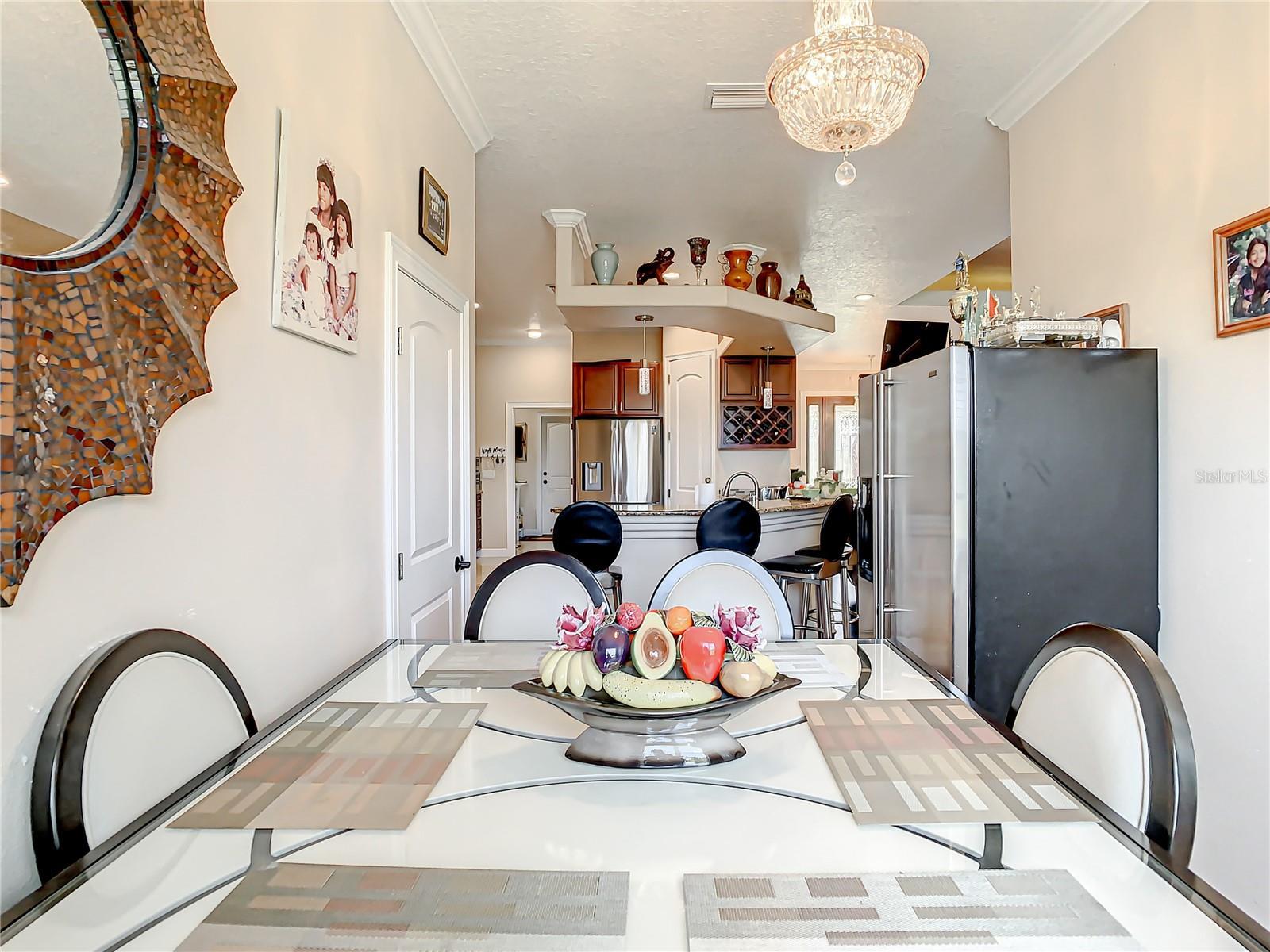- Ceiling Fans(s), Crown Molding, Kitchen/Family Room Combo, Living Room/Dining Room Combo, Primary Bedroom Main Floor, Open Floorplan, Solid Wood Cabinets, Stone Counters, Thermostat, Walk-In Closet(s)