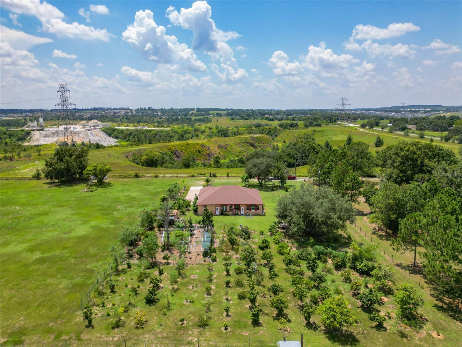 Welcome to this exceptional opportunity to own an expansive parcel of land, boasting nearly 5 acres of prime real estate in the coveted area of Clermont. Situated just minutes away from the main road, this property offers both convenience and tranquility in one remarkable package. The lot itself has been meticulously cleared, presenting a canvas of possibilities for your creative aspirations. Positioned in an area that remains consistently high and dry, this property ensures a solid foundation for your future endeavors. The highlight of this property is the exquisite custom-designed single-story house that graces the land. This house has been thoughtfully crafted to harmonize with the surrounding landscape while providing the utmost in comfort and functionality. Stepping inside, you'll be greeted by a spacious interior layout that encompasses both classic design and timeless elegance. The living spaces are bathed in natural light, creating an inviting and warm atmosphere. With a well-appointed kitchen, cozy living areas, and tasteful finishes throughout, the house becomes not just a dwelling, but a haven. No expense was spared when building this home, low-e double pane windows, spray foam insulation in walls and ceiling, custom Brazilian cherry wood floors, hardwood ceiling in foyer and lanai, 2’x2’ ceramic tile, high ceilings, crown molding and a water softener to name a few. For those with a green thumb, the property presents an awe-inspiring spectacle: a lush orchard containing around 200 fruit trees. Imagine the delight of harvesting an array of fruits right from your own backyard – a testament to the bountiful potential this property holds. Watering all these plants is not a problem with a 5” well drilled 250ft into the ground while the house itself is on city water. Beyond the main house, the property offers practical features that enhance its appeal. A 2-car garage provides ample space for your vehicles, storage, or even a workshop. Additionally, a tool shed adds functionality, providing a dedicated space for your equipment and tools. One remarkable facet of this property is the potential for subdividing, in accordance with the County's regulations. This offers the chance to further capitalize on this investment by exploring development options, making it an enticing prospect for both homeowners and developers alike. In summary, this property is more than just a piece of land; it's a canvas for your dreams and aspirations. With its cleared and elevated lot, custom-built house, abundant fruit orchard, and the possibility of subdividing, this property encapsulates the essence of opportunity. Don't miss your chance to own a slice of paradise in Clermont – a sanctuary where convenience, natural beauty, and potential converge seamlessly.
