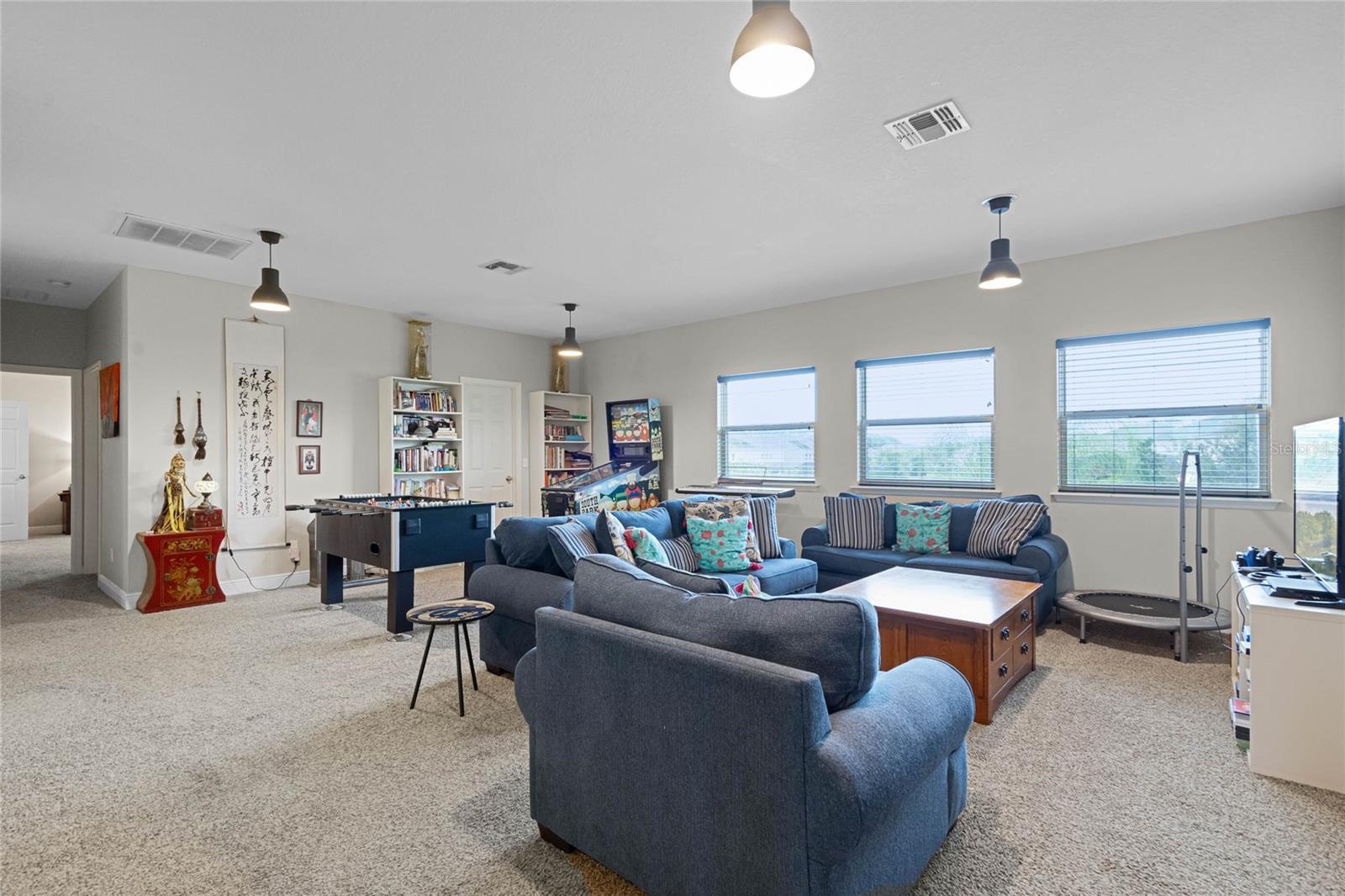 Under contract-accepting backup offers. Beautiful pool home in the desirable Johns Lake Pointe Community of Winter Garden! This exquisite 5 bedroom, 4 bath home is perfectly situated on a pond view lot and comes with a solar panel system! This lot plus gorgeous landscaping provides all the privacy you could want. Upon entering you will find the formal living and dining rooms. As you continue through the home, the gourmet kitchen is perfect for the chef of the family and has an open floorplan to the family room. It is complete with stainless steel appliances, granite countertops, a pantry, a breakfast bar, and a large eat-in dining area with french doors to the pool area. Downstairs you will also find a bedroom, full bath that has a door to the pool, and a bonus room (currently used as a gym). The upstairs of this home is perfect for any family! You’ll find the spacious primary suite and a luxurious bath with dual vanities, a garden tub, a separate shower, and a large custom walk-in closet. Two of the additional bedrooms share a full bathroom, while another upstairs bedroom is adjacent to a full bath. Additionally, there is a large loft area, multi-level movie theater room, laundry room, and lots of closet space. The loft area has so many possibilities as it could be used as a billiard room, playroom, etc. Add the gorgeous pool with an outdoor kitchen and firepit and this home will be sure to please the most discerning buyer. Close to schools, Winter Garden Village, downtown Winter Garden, shopping, and restaurants. Also, located within 25-30 minutes of the parks! Johns Lake Pointe features a resort-style pool, clubhouse, playground, fitness room, and tennis courts, which are all located in close proximity to the home! Schedule your showing today!!