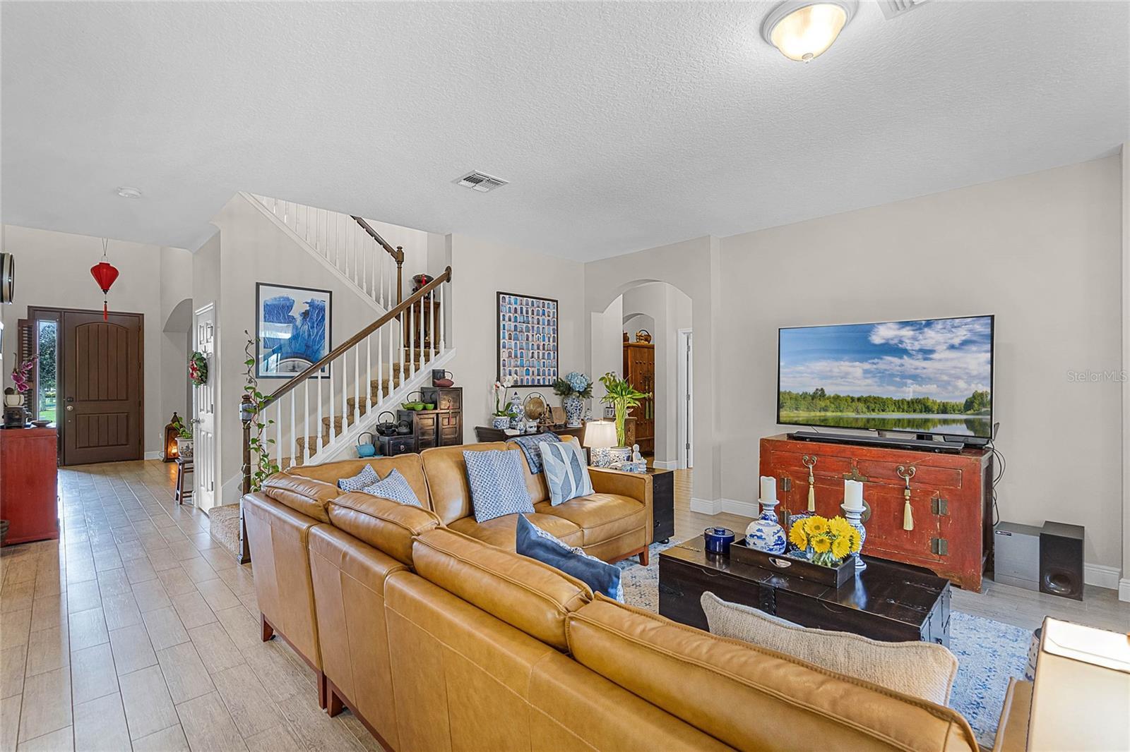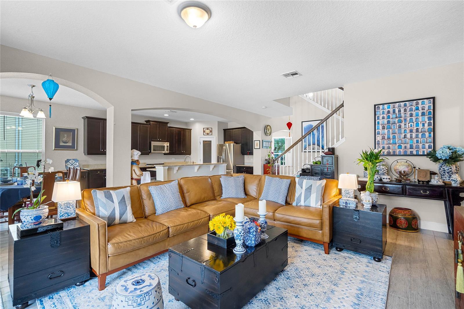 - Eat-in Kitchen, High Ceilings, Kitchen/Family Room Combo, Master Bedroom Upstairs, Open Floorplan, Solid Surface Counters, Walk-In Closet(s)