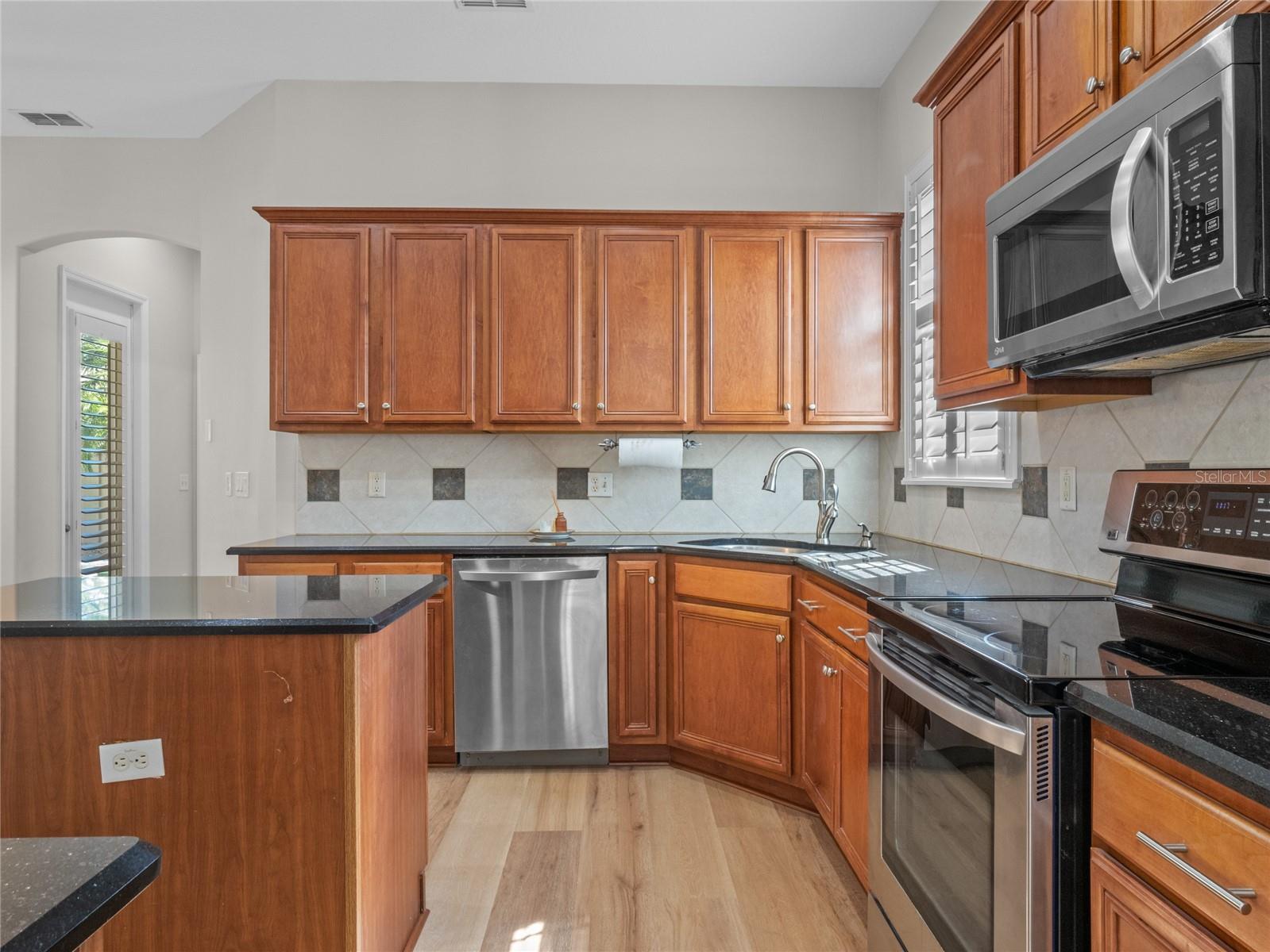 - Dishwasher, Disposal, Dryer, Electric Water Heater, Exhaust Fan, Microwave, Range, Refrigerator, Washer