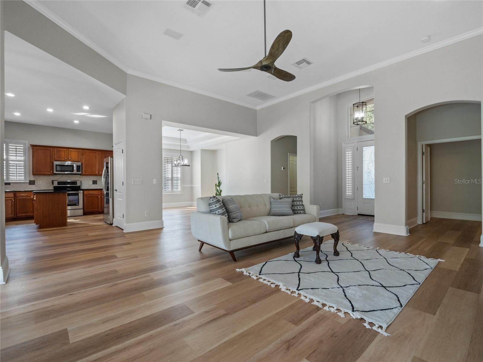 - Ceiling Fans(s), Chair Rail, Crown Molding, Eat-in Kitchen, High Ceilings, Open Floorplan, Split Bedroom, Tray Ceiling(s), Walk-In Closet(s), Window Treatments