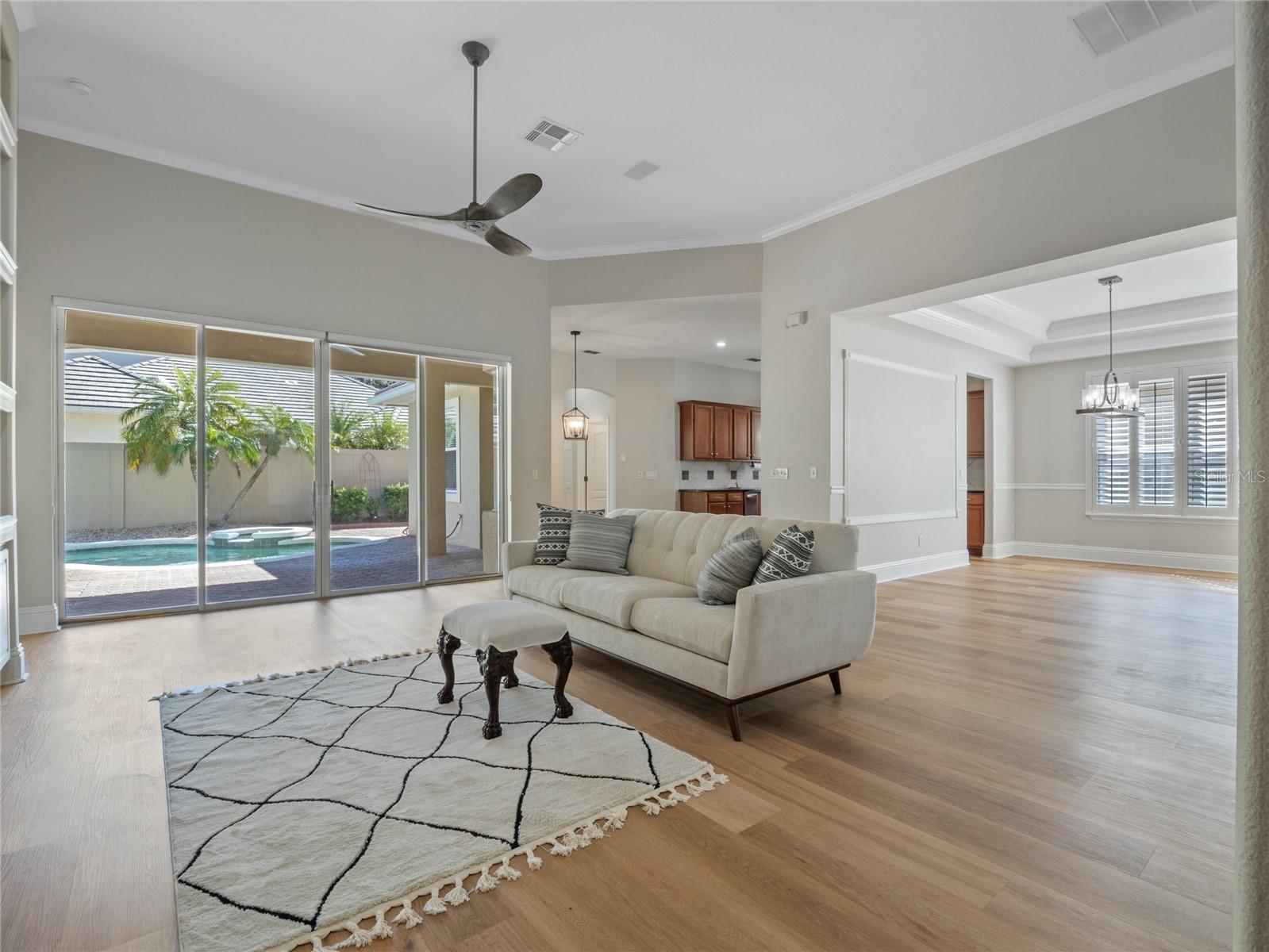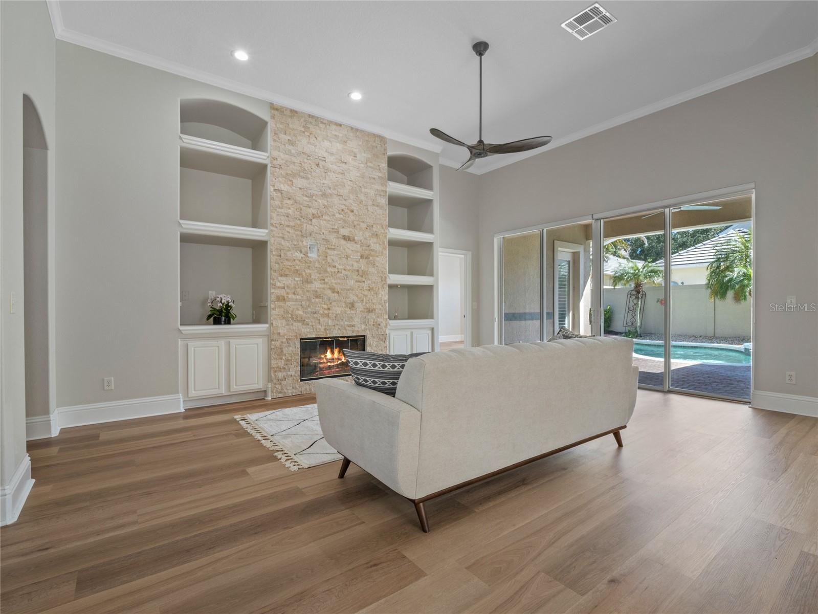 Indulge in the opportunity to acquire this exquisite residence—a captivating 3-bedroom, 3-bathroom one-story home with a tile roof and a private pool nestled within the secure Turtle Creek 24-hour guard-gated community in the highly desirable Dr. Phillips locale. Revel in the finer details, such as crown molding, plantation shutters, and luxury vinyl flooring gracing throughout the house, complemented by an elevated ceiling that imparts an airy, expansive feel. The great room boasts a wood-burning fireplace integrated with built-in shelves. Embrace the tranquil allure of the pool area through quadruple sliding glass doors, offering a seamless integration to outdoor serenity. The formal dining room is a visual delight, adorned with a double trey ceiling and an artful chair rail. The spacious kitchen is well-appointed with complete 42” wood cabinets, top-tier stainless steel appliances, granite countertops, an island, and an inviting breakfast nook. The master suite boasts a bay window sitting area and a trey ceiling with an enclosed bathroom featuring dual sinks, rich wood cabinets, a garden tub, and a walk-in shower, complemented by a California walk-in closet. Additional highlights include two spacious bedrooms with adjacent full bathrooms, a laundry room with washer, dryer, and utility sink, and a fenced-in pool area featuring a raised fountain and a cozy garden. Spacious 2-car garage with plenty of storage space! Enjoy ultimate privacy with a paver lanai and an expanded paver cool deck surrounding the pool, offering a refined setting for leisure and entertainment. This beautiful property was renovated in 2020, some of the features and upgrades include the installation of a new air conditioning system, fresh sod for the yard, wood-look luxury vinyl floors in the common areas and in all bedrooms, new elegant porcelain tiles in the primary bedroom, a stack stone wall above the fireplace, a new exterior and interior paint job, epoxy-coated garage flooring, and a new refrigerator. Lifestyle resort with Lawn mowing and shrub trimming part of the HOA fee coverage. Community Pool, tennis court, basketball court, playground, and a park for residents to enjoy. The lakefront Dr. Phillips Community Park is only a 5-minute driving distance, with walking trails, sports facilities, and picnic pavilions. Turtle Creek is situated in an excellent school district and it is conveniently located near shopping, restaurants, hospitals, theme parks, major highways, and the airport. Don't miss the opportunity to tour this exceptional property! Call me to schedule your private showing.