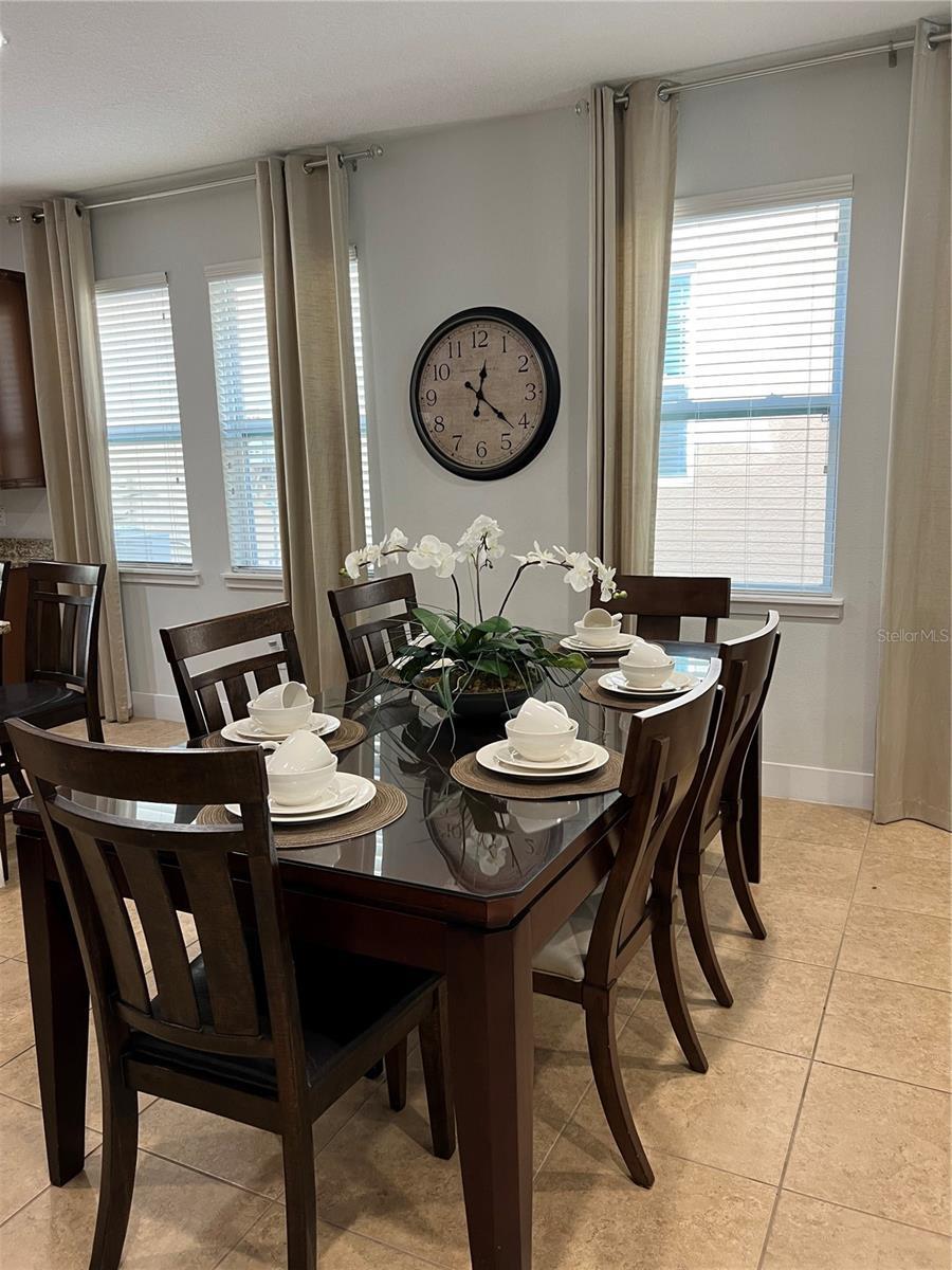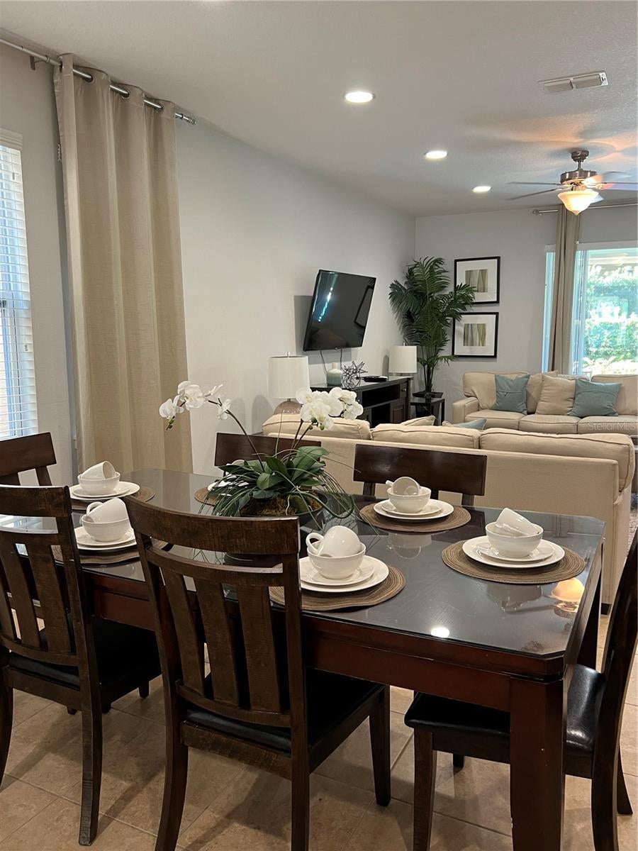 - Ceiling Fans(s), Eat-in Kitchen, High Ceilings, Living Room/Dining Room Combo, Primary Bedroom Main Floor, Solid Wood Cabinets, Thermostat, Walk-In Closet(s)