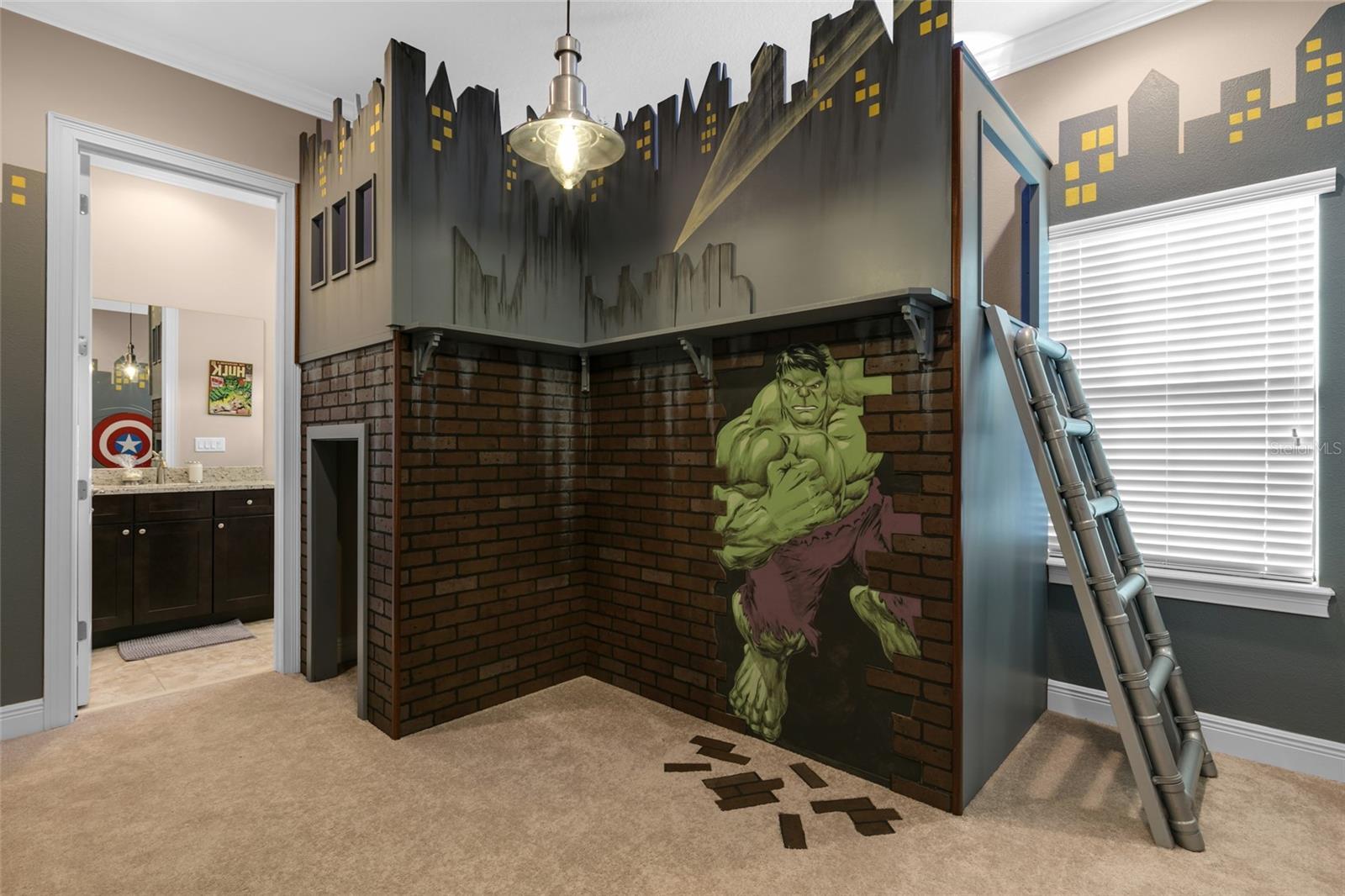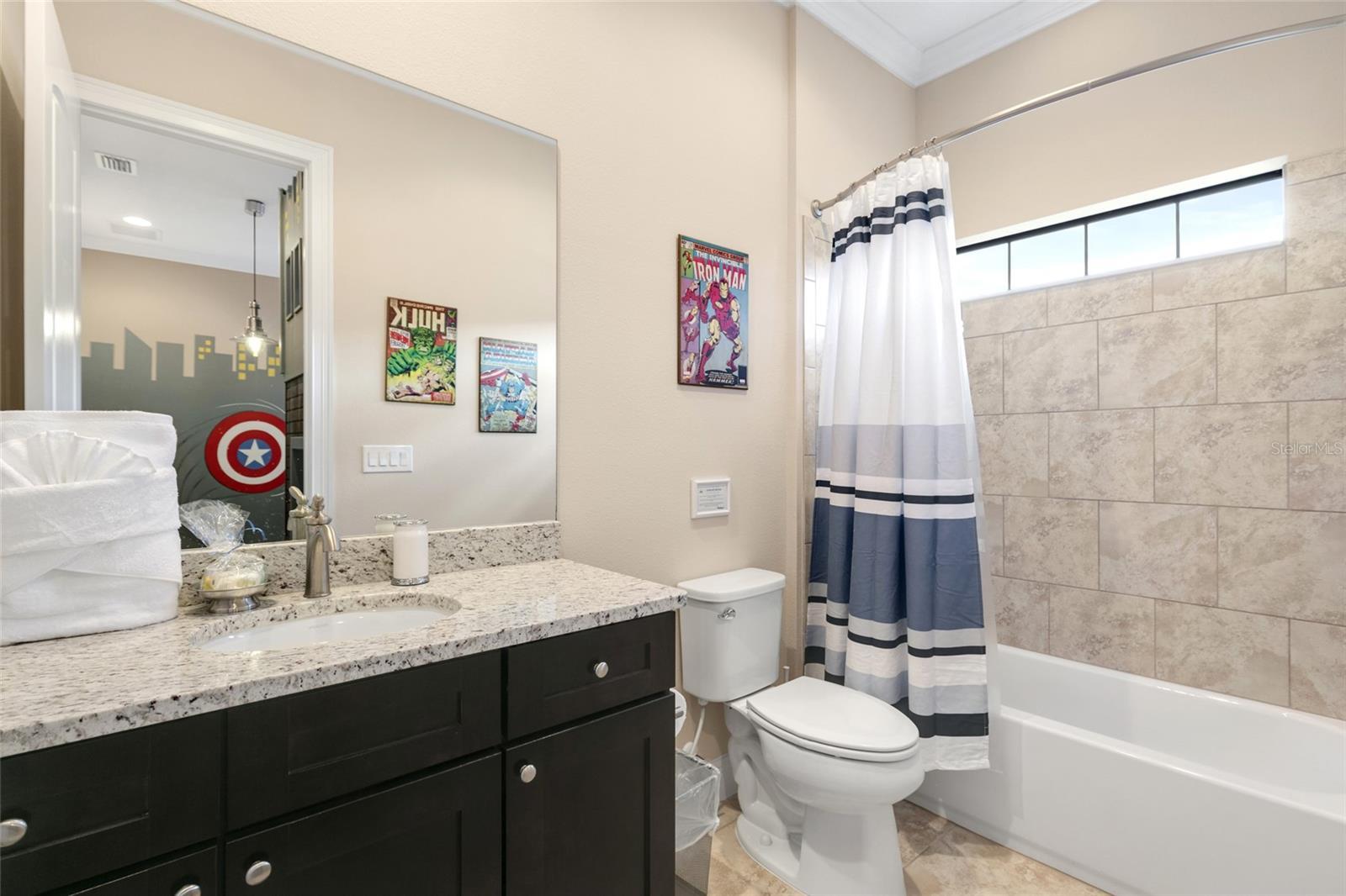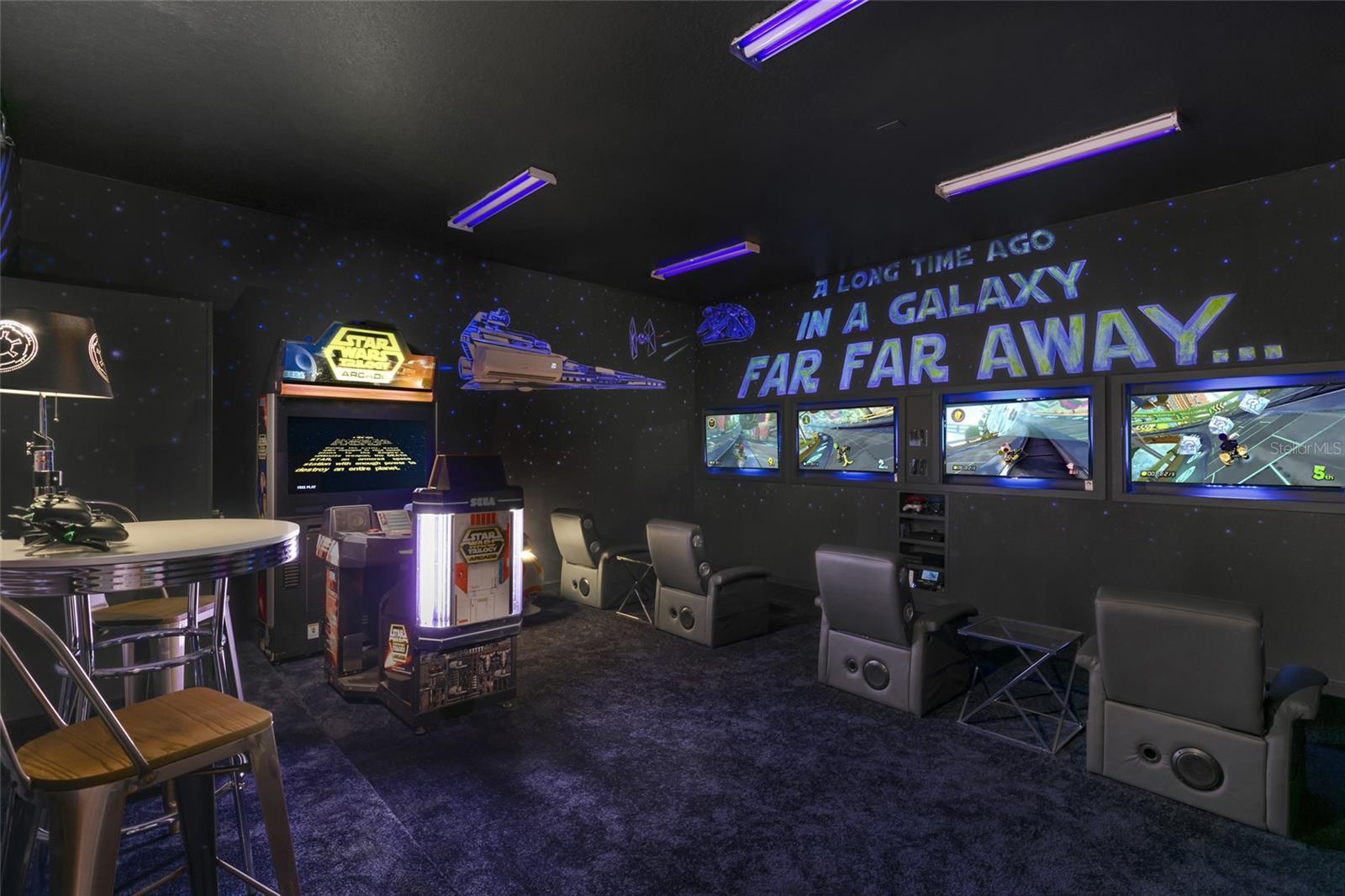 ***Active Reunion Club Membership*** Gated community, resort style home currently managed, maintained and marketed for vacation rentals as “The Perfect Getaway”. This home was designed and custom decorated with golfers, Disney enthusiasts and family fun in mind! Boasting 5 bedrooms each with full, en suite private bathrooms offers privacy and room for many guests and family members. The open concept, eat-in kitchen includes top of the line, stainless steel appliances and granite counter tops along with room for 5 barstool patrons and full dining area adjacent. The spacious kitchen, living and dining all have full view of the opulent outdoor area which includes a heated pool and spa, extended paver deck, covered patio and outdoor grill. This fully fenced, outdoor oasis backs up to a wooded, tree-lined conservation area that offers additional privacy. One primary suite downstairs and 2 additional king suites up, each with spacious walk-in closets and custom closet systems. In addition, two youth rooms upstairs designed with play in mind. A Princess room that includes a custom made carriage bunkbed and Disney princess murals. The second, a Superhero room, is also outfitted with a custom-made bunkbed, which includes an underground fort play area. The fully converted, air-conditioned garage is equipped with 4 gaming recliners, 4 large gaming TV’s and various gaming systems complete with Star Wars themed decor and UV lighting! An additional loft upstairs includes additional gaming experiences for the gaming enthusiasts. A rear facing, upper-level master opens to a private covered patio with French doors and full view of the heated pool and tree lined back yard with an additional grassy area for play or pets. Come see this tastefully and thoughtfully maintained and furnished home, fully turn-key ready for its next owner!