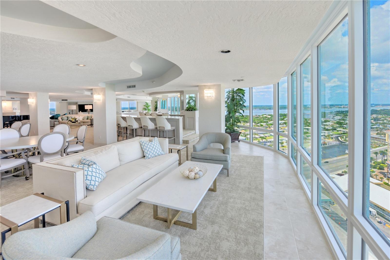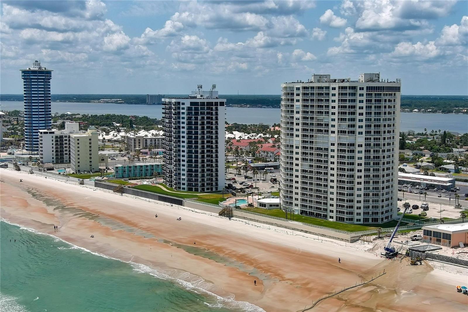 Under contract-accepting backup offers. The entire building has been recently renovated with all structural integrity reports completed and a healthy budget!! THIS DIRECT OCEANFRONT AND RIVERFRONT double unit encompasses the entire East/South/West corner. Three bedrooms all with their own private bath. Two underground parking spaces. Indoor swimming pool. Penthouse clubroom. Located on the ''Golden Strand'' of Daytona Beach Shores just 2.9 miles North of Dunlawton Bridge. Enjoy breathtaking ocean and intra-coastal views from every room, with the primary suite offering full views and balconies on both sides. The condos wraparound windows and balconies give you unparalleled vistas and natural light. Newly installed hurricane impact windows and sliding glass doors ensure safety and ease of maintenance, with access to every window for convenient cleaning. At this attractive price, there's ample room to update and personalize the unit to your taste. Additional features include: expansive outdoor pool, grills, fitness center, billiards, ping pong, library, and card room. The drive-on beach, as vast as a football field at low tide, is perfect for driving, biking, and jogging. This pet-friendly condominium welcomes two pets up to 20 lbs. With all assessments paid and a robust budget, the building's restoration is a testament to its enduring appeal. Situated close to shopping, dining, the Historical Ponce Inlet Lighthouse, the Hardrock Hotel, St. Augustine, and Orlando, you'll be at the heart of Florida's most sought-after attractions.
