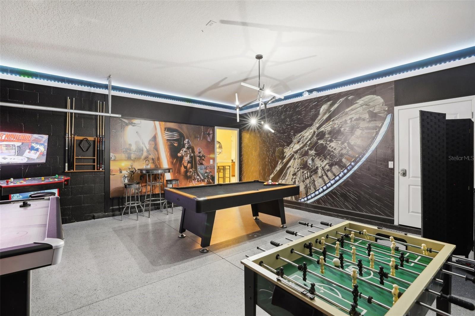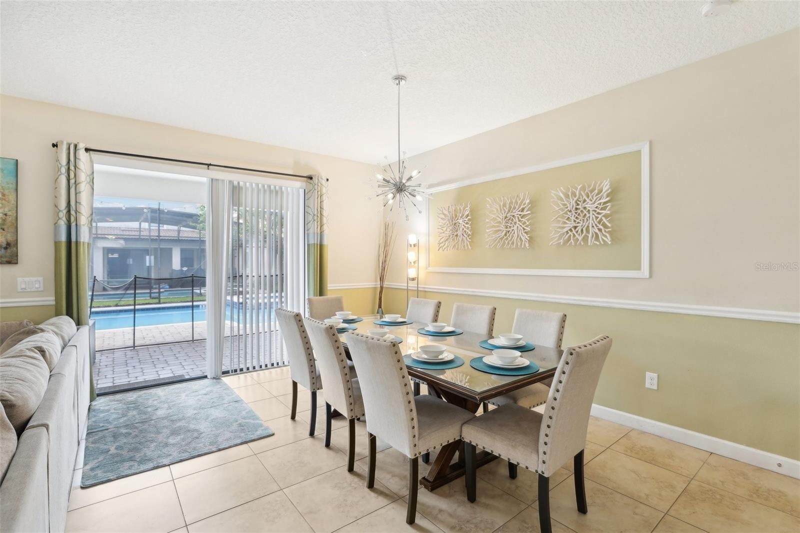 Prime Investment Opportunity with Established Short-Term Rental Income: Welcome to your next investment in the gated Champions Gate community, a renowned Disney-area golf and country club. This stunning property is currently part of a short-term rental program. The property has consistent bookings. The current bookings can be transferred to the new buyer at closing, ensuring immediate income from day one. The property has been marketed on major vacation rental websites such as Airbnb, TripAdvisor, VRBO, and more. The new owner will be able to inherit these listings, eliminating the need to build the listing's reputation from scratch. Luxurious Living Space: This beautiful home, built in 2014, features 8 bedrooms, 5 baths, and 3,339 square feet of living space. It comes fully furnished with tasteful décor, making it perfect for entertaining and family gatherings. The open floor plan on the first floor combines the kitchen, dining room, and family room into a spacious great room. The large kitchen boasts stone counters, stainless steel appliances, a breakfast bar, and a closet pantry. The first-floor owner's suite includes a spacious ensuite bath with granite counters, dual sinks, a soaking tub, a separate shower, and pool access. Upstairs, you'll find a roomy loft with a mounted flat-screen TV and a comfortable sectional sofa, a media room with theater-style seating, and uniquely themed bedrooms that inspire the young ones. The outdoor area features a full-width covered lanai, a screen-enclosed heated pool, and a spa, perfect for enjoying sunny days or cool evenings. Additional features include a Star Wars-themed garage game room, double-pane windows, an energy-saving hybrid water heater, a tile roof, and a brick paver driveway and pool deck. Exceptional Community Amenities: As part of the Champions Gate community, you have access to the Oasis Clubhouse, a 16,000 SF complex with multiple pools, a lazy river, a 2-story waterslide, a splash park, air-conditioned cabanas, a hot tub, sand volleyball courts, a fitness center, an arcade, a movie theater, a full restaurant, and two bars. HOA dues cover lawn care, landscaping, cable and internet service, and the privacy of multiple 24-hour guarded gatehouses. Perfect Location: Located just 15 minutes from Walt Disney World, this property offers exceptional location, amenities, and value. Whether you’re looking for a lucrative short-term rental investment or a private home-away-from-home, this villa is perfect for you. Don’t miss this outstanding opportunity. Schedule a showing today!