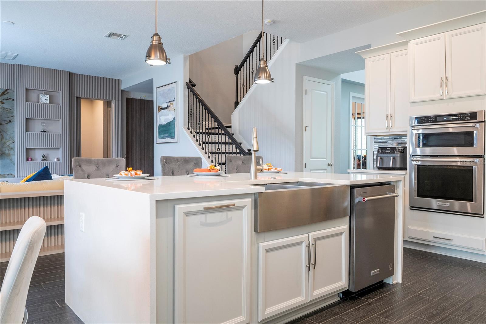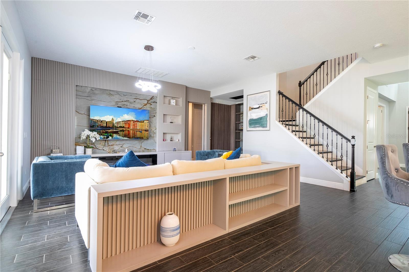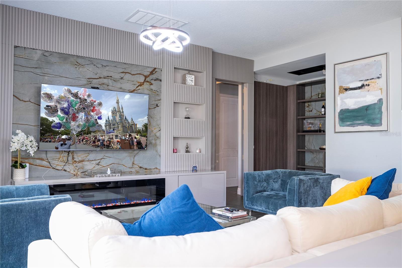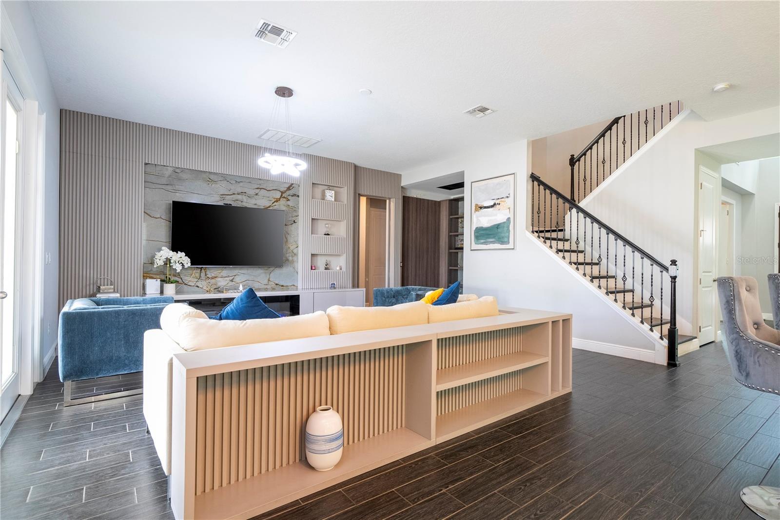 FIRST FLOOR: 1 Dining Room Upon entering the house we have on the left side an 8-seater dining table and 8 chairs that remained. 2 Office: In front of the dining room there is the complete office with the planned cabinets that are part of the house. The table, chair and TVs in this office are not part of the sale and are not included. 3 Closet under the stairs: This closet is for storing various products and also kitchen utensils or other purposes. 4 Kitchen + Storage Full kitchen with built-in cabinets, including microwave and combined oven, stove with extractor fan, integrated refrigerator-freezer, dishwasher, double sink. In front of the refrigerator there is a closet for storing food. 5 TV room: Living room with 1 sofa with built-in furniture with a built-in panel with a digital fireplace as decoration without functionality, including those that remained in the house. 6 Complete Bathroom on the 1st Floor Full bathroom with shower and shower to serve the 1st Floor 7 Room to Finish a Wine Cellar In this room, a wine cellar was started but not finished, and it needs to be closed and the built-in furniture and light fixtures installed. 8 1 Bedroom on the 1st Floor: After the bathroom, there is a bedroom with a separate closet with built-in furniture, including the bed base. All mattresses will be taken, but the built-in bed is part of the inventory. The TV is not part of the items that remain. 9 Gourmet Space: Outside the house there is a covered area that is the complete gourmet space with access to the garden, which is closed at the back and open on the sides, and can be used to build a swimming pool, jacuzzi, or pet area. We have a project designed for this purpose that we can provide for the expansion of the house. The refrigerator in this space is not part of the items that remain in the house. 2 ND FLOOR: 10 2 Bedroom in front of the stairs: The custom cabinets remain in place, but this room has a full bed that is not part of the inventory, as well as the TVs, table, and chairs. 11 2 Bathroom next to the Cinema Room Complete bathroom with shower enclosure 12 Cinema Room Cinema Room with a project, sound system with acoustic insulation, built-in screen, and extra space . Totally isolated and acoustically designed for better sound and image for entertainment. 13 TV & Living Room Large TV room, where the sofa and TV are not part of the inventory that will remain in the house. 14 Mini Office Next to the IT equipment room is a space used as an office for the 2nd Floor, not including the table and chairs, only the usable space. 15 Laundry Complete laundry room with 2 semi-new Samsung machines including 2 sinks for bathing pets separately with hot and cold water. Built-in cabinets. Everything is part of the house inventory. 16 Closet in the Hallway of the 3rd and 4th Bedrooms In front of the TV room there is a closet for various uses 17 3rd Bedroom on the Left Side Including closet. The mattress is not included, nor are the TVs. All light fixtures are included. 18 3rd Bathroom Bathroom to serve the 3rd and 4th Bedrooms complete with shower 19 4th Bedroom on the Right Side All furniture that is planned is not part of the inventory, including the TVs and the closet drawer, which were also not included. 20 5 Bedroom – Master Suite Fully planned bedroom with panels and also a decorative digital fireplace included.
