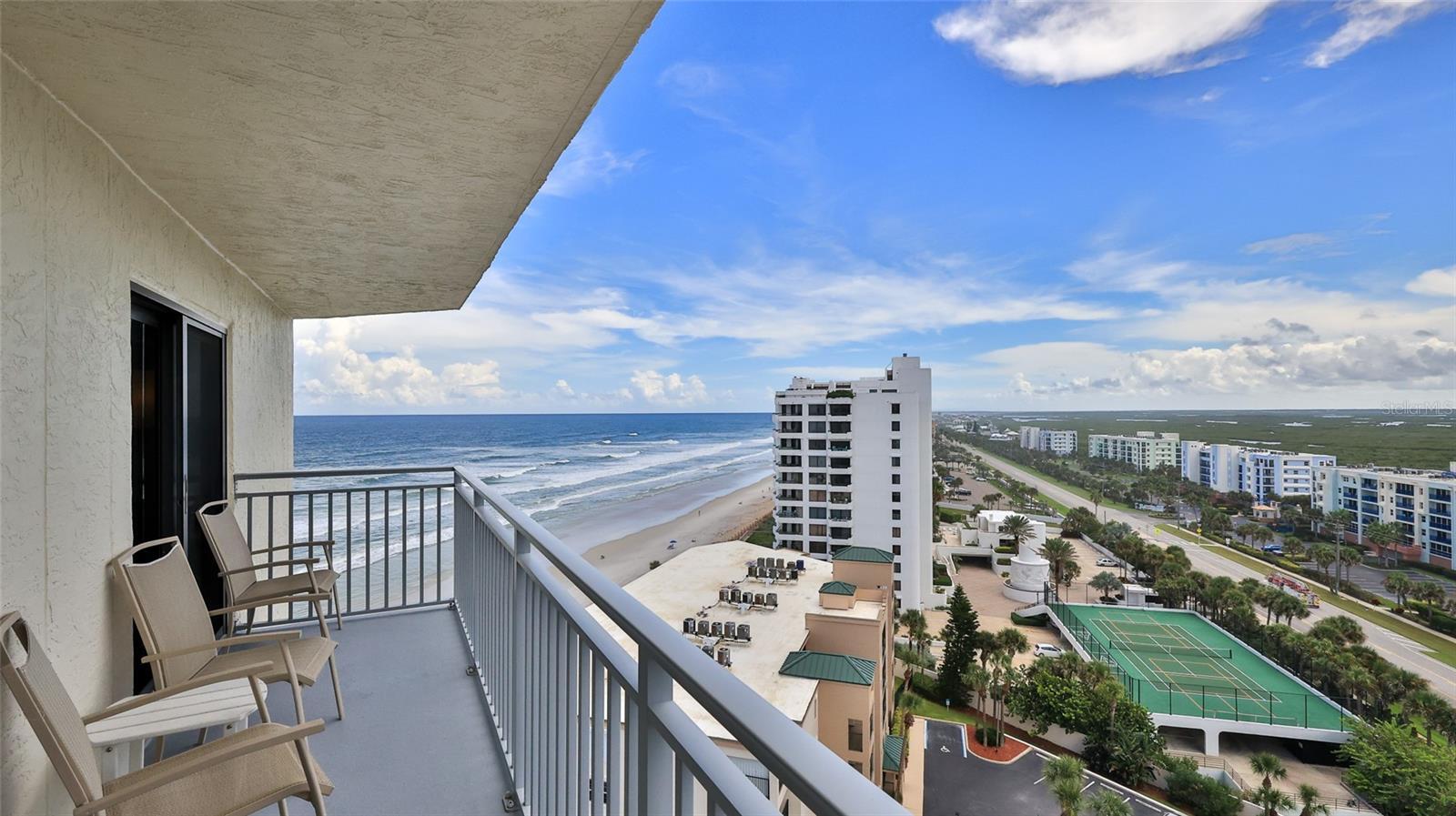 Strong rental income with repeat bookings each year. End Unit with amazing views. Recently remodeled, the 12th floor end unit has east and south facing views with lots of light and oceanfront ONE-OF-A KIND VIEWS of the Atlantic Ocean and the Intercoastal Waterway and is located on the non-driving beach. Six sliding glass doors lead to 3 balconies uniquely positioned to provide STUNNING SUNRISE VIEWS and AMAZING SUNSET views. Direct views of NASA Rocket Launches. The spacious living area has ample seating, Ocean views can also be seen from the fully equipped kitchen with all stainless-steel appliances. All new impact windows throughout the unit. The owner's suite has balcony access, king size bed, walk-in closet, bathroom w/ walk-in shower, double vanity, and linen closet. The second bedroom has balcony access and a king size bed. There is a full-size washer and dryer conveniently located in the unit. Building amenities include secure entry, two elevators, UNDERGROUND PARKING, beautiful recently refurbished pool, hot tub, sauna, club room, grill area and shuffleboard court. Community has been updated with fiber optic cable. Easy access to the no drive beach. Rental income will help cover the cost of ownership. Future bookings can be transferred to the new owner. Seller has rental history for this unit and the community and has an on -site rental office and management. Milestone Inspection was completed. Step directly onto the non-driving beach for serene walks and sunbathing, without a car in sight. The community offers an abundance of amenities including a swimming pool, hot tub, and sauna, perfect for relaxation after a day in the sun. Investors will find significant value in the substantial rental income potential of this beachfront gem. This condo is more than a home; it’s a smart investment and a lifestyle upgrade. Ready to embrace the full spectrum of beachside living along with an opportunity for impressive rental returns? Your next profitable venture by the sea awaits.