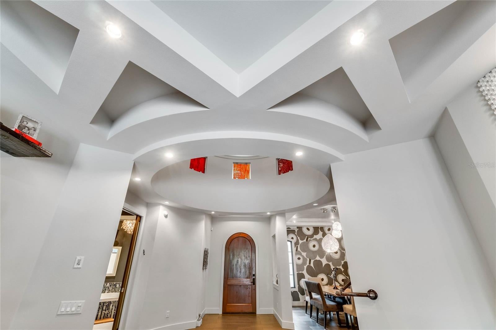 - Ceiling Fans(s), Coffered Ceiling(s), Crown Molding, Dry Bar, Eat-in Kitchen, High Ceilings, Open Floorplan, Primary Bedroom Main Floor, Solid Wood Cabinets, Thermostat, Walk-In Closet(s), Wet Bar