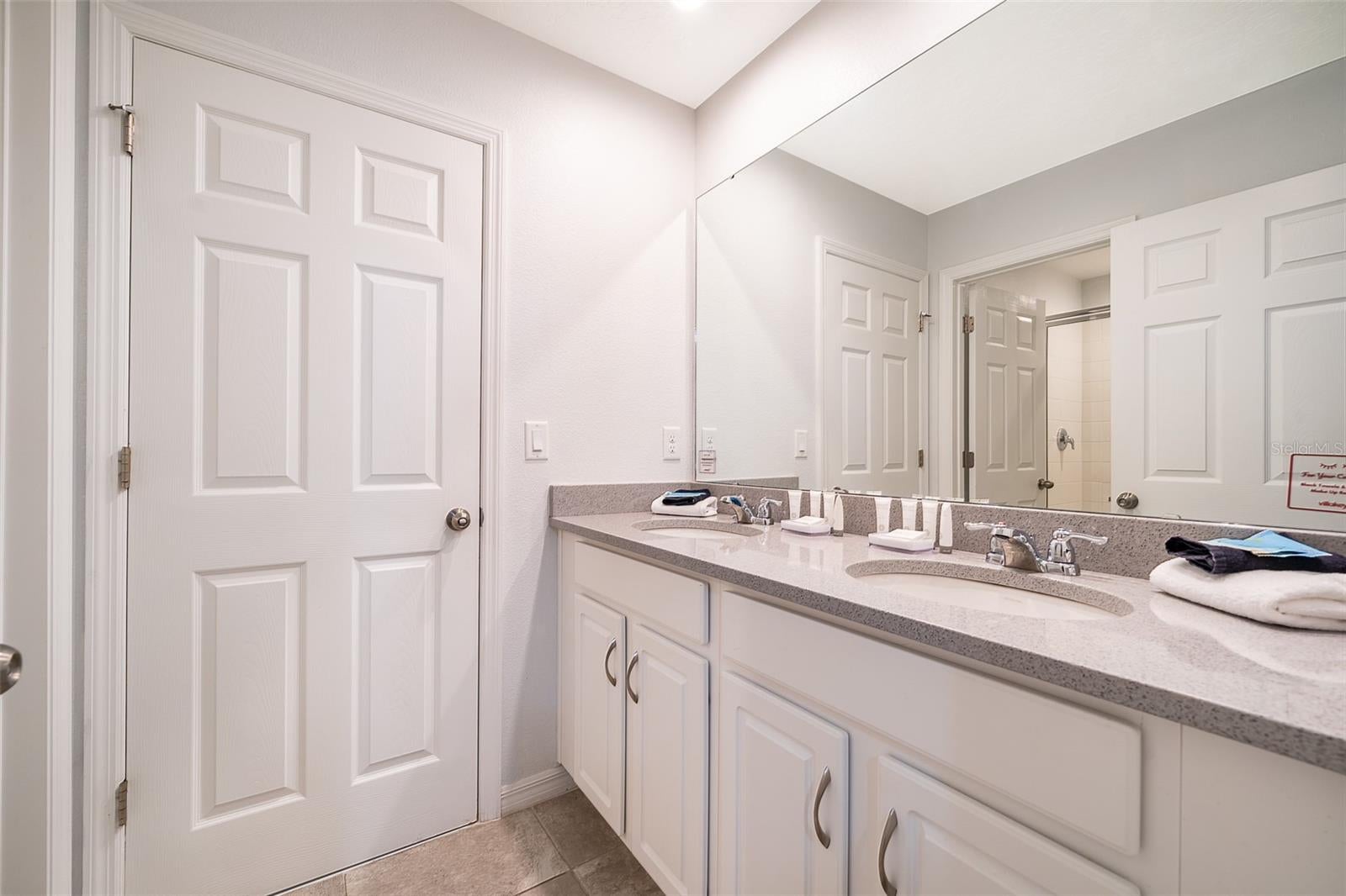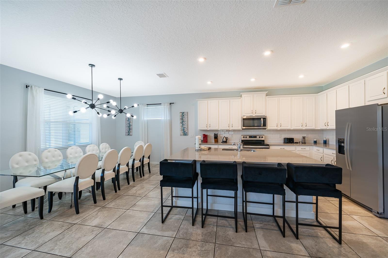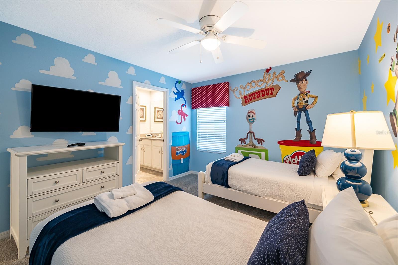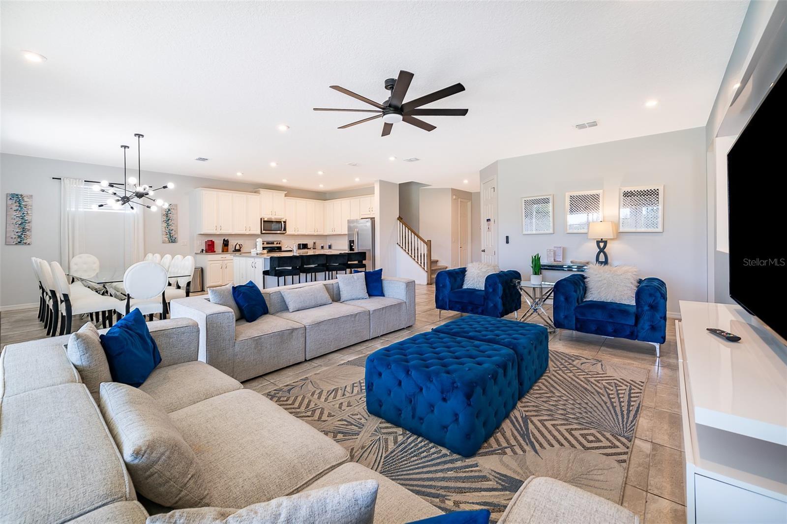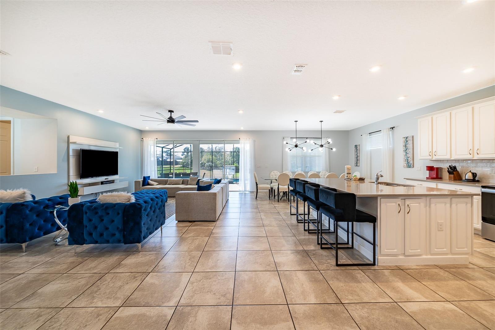 Under contract-accepting backup offers. *** MAJOR PRICE IMPROVEMENT *** Stunning Fully Furnished 8-Bedroom, 6-Bathroom Pool Home! Welcome to this spectacular two-story vacation home in the highly sought-after resort community of Solara. With 8 spacious bedrooms and 6 bathrooms, this fully furnished residence offers ample space and comfort for large families or groups. Located just minutes from Central Florida’s world-famous theme parks, shopping, and dining, this property promises the perfect vacation or investment home. Main Floor Features: The first floor boasts two inviting bedrooms, including a luxurious primary suite with an en-suite bath. A second bedroom features convenient access to a bathroom just across the hall and leads directly to the pool deck. The open-concept kitchen, living room, and dining area flow seamlessly together, creating an ideal space for entertaining. From here, enjoy stunning views of the screened-in pool area and spa, which overlooks a peaceful pond and conservation area—offering ultimate privacy with no rear neighbors. The covered lanai provides a perfect spot for alfresco dining or relaxing, whether soaking up the sun or staying cool during a passing rain shower. Upstairs, discover six additional bedrooms, each with its own en-suite bathroom. Three of the rooms are themed and tastefully decorated, including Mickey Mouse, Buzz Lightyear from Toy Story, and the lovable Minions, adding a fun and imaginative touch. The media room is the perfect spot to unwind with movies or games on the PlayStation, ensuring entertainment for all ages. Two bedrooms share a convenient Jack-and-Jill bathroom, while the Mickey Mouse room has its own hall bath. Save money on your power bill with Sunnova solar panels. With rising electric costs, this provides a peace of mind so you can focus on fun! Located in the coveted Solara Resort, known for its family-friendly amenities and guard-gated entry. Enjoy access to the stunning clubhouse, featuring a FlowRider surf simulator, a fully-equipped fitness center, a restaurant, a sundry store, and a beautiful resort-style pool with pool side cabanas and a full size soccer field. The community offers everything you need to relax and play, right at your doorstep. HOA dues include lawn care, daily valet trash pick up, and cable & internet. Perfect Location with easy access to world-class theme parks (only 8 miles to WDW), shopping centers, and dining, this home is in a prime location to enjoy all that Central Florida has to offer. Whether you're looking for a vacation home or an income-generating investment property, this home checks all the boxes. Don’t miss the opportunity to make this stunning, turnkey home your own - come and see all this home has to offer before it's gone!