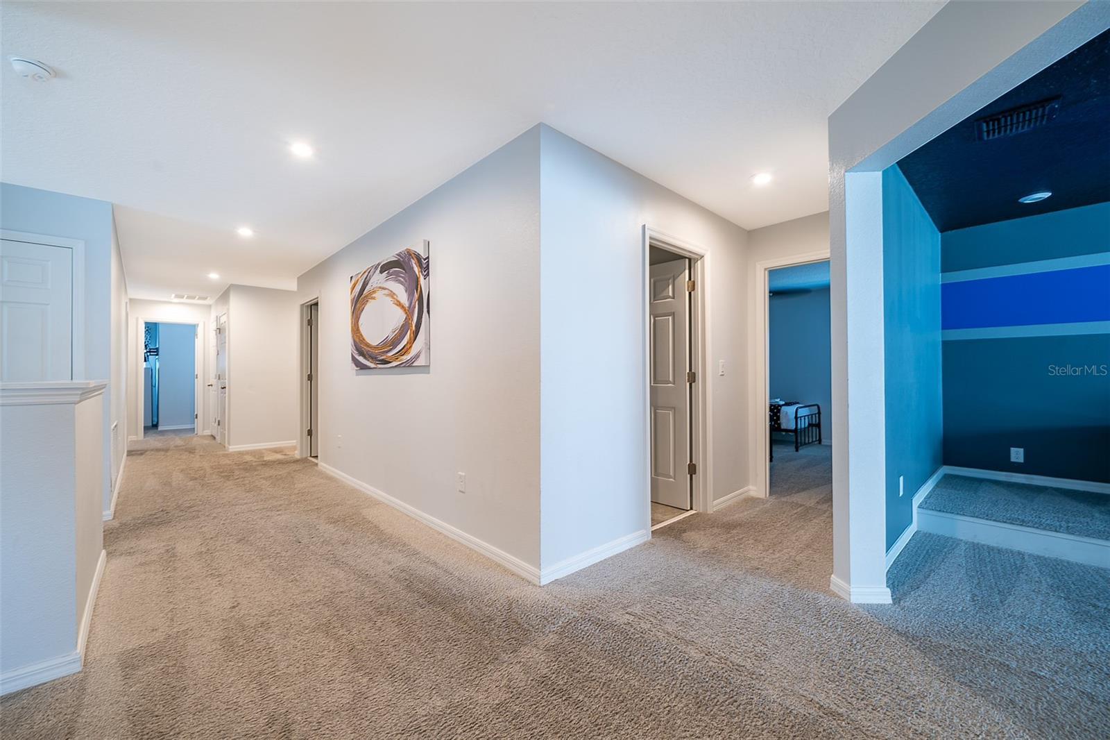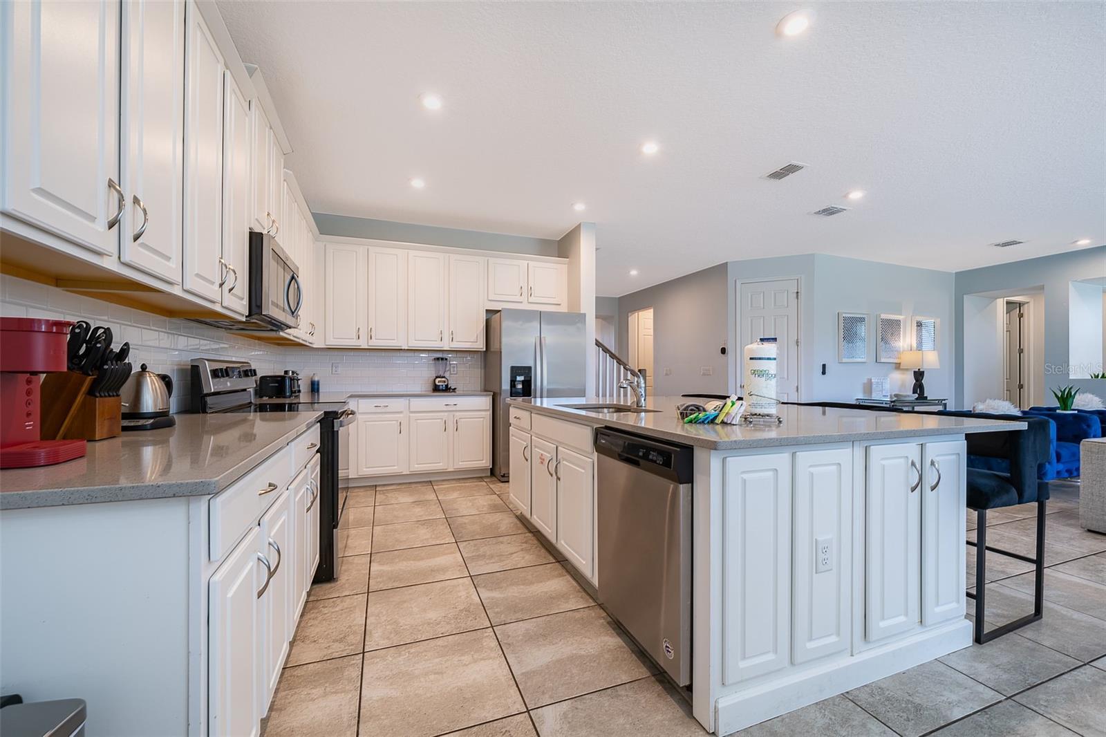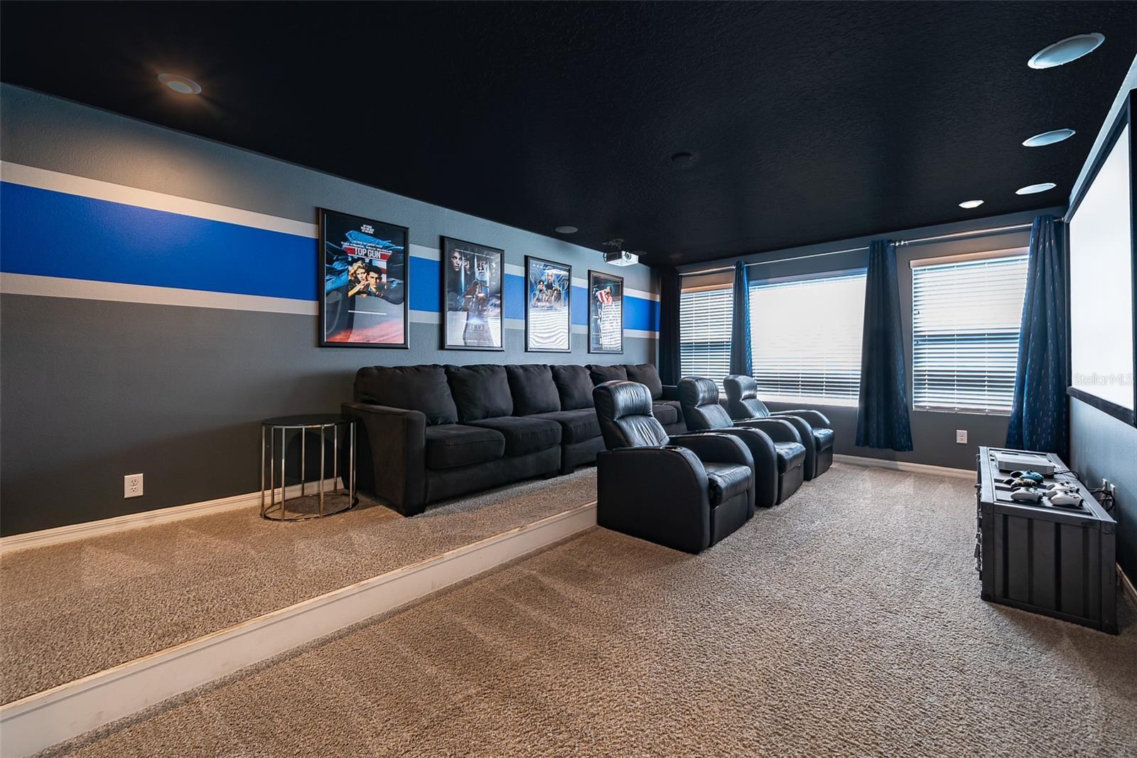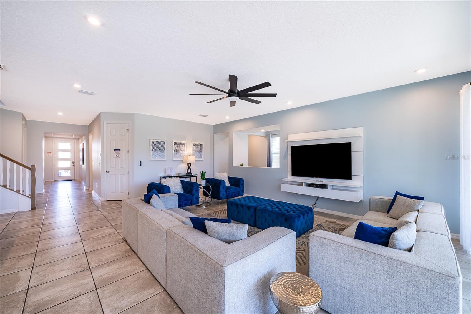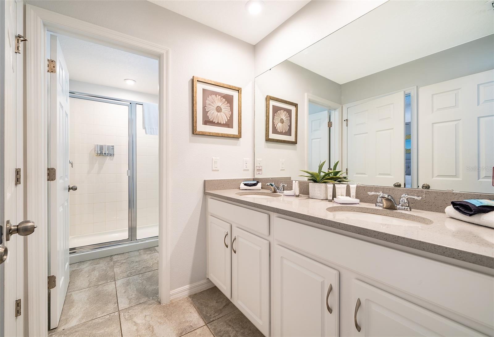 Under contract-accepting backup offers. *** MAJOR PRICE IMPROVEMENT *** Stunning Fully Furnished 8-Bedroom, 6-Bathroom Pool Home! Welcome to this spectacular two-story vacation home in the highly sought-after resort community of Solara. With 8 spacious bedrooms and 6 bathrooms, this fully furnished residence offers ample space and comfort for large families or groups. Located just minutes from Central Florida’s world-famous theme parks, shopping, and dining, this property promises the perfect vacation or investment home. Main Floor Features: The first floor boasts two inviting bedrooms, including a luxurious primary suite with an en-suite bath. A second bedroom features convenient access to a bathroom just across the hall and leads directly to the pool deck. The open-concept kitchen, living room, and dining area flow seamlessly together, creating an ideal space for entertaining. From here, enjoy stunning views of the screened-in pool area and spa, which overlooks a peaceful pond and conservation area—offering ultimate privacy with no rear neighbors. The covered lanai provides a perfect spot for alfresco dining or relaxing, whether soaking up the sun or staying cool during a passing rain shower. Upstairs, discover six additional bedrooms, each with its own en-suite bathroom. Three of the rooms are themed and tastefully decorated, including Mickey Mouse, Buzz Lightyear from Toy Story, and the lovable Minions, adding a fun and imaginative touch. The media room is the perfect spot to unwind with movies or games on the PlayStation, ensuring entertainment for all ages. Two bedrooms share a convenient Jack-and-Jill bathroom, while the Mickey Mouse room has its own hall bath. Save money on your power bill with Sunnova solar panels. With rising electric costs, this provides a peace of mind so you can focus on fun! Located in the coveted Solara Resort, known for its family-friendly amenities and guard-gated entry. Enjoy access to the stunning clubhouse, featuring a FlowRider surf simulator, a fully-equipped fitness center, a restaurant, a sundry store, and a beautiful resort-style pool with pool side cabanas and a full size soccer field. The community offers everything you need to relax and play, right at your doorstep. HOA dues include lawn care, daily valet trash pick up, and cable & internet. Perfect Location with easy access to world-class theme parks (only 8 miles to WDW), shopping centers, and dining, this home is in a prime location to enjoy all that Central Florida has to offer. Whether you're looking for a vacation home or an income-generating investment property, this home checks all the boxes. Don’t miss the opportunity to make this stunning, turnkey home your own - come and see all this home has to offer before it's gone!