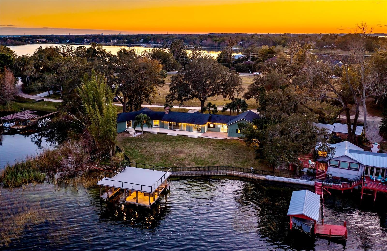 Under contract-accepting backup offers. One or more photo(s) has been virtually staged. Back on market — buyer’s home sale contingency did not clear. Inspection and appraisal were completed satisfactorily, no fault of the seller or property. Welcome to an extraordinary lakefront retreat on the prestigious Butler Chain of Lakes in Windermere. On a rare 1.43-acre double lot with over 200 feet of prime shoreline on Lake Down, this exquisite residence offers a lifestyle defined by luxury, privacy and breathtaking natural beauty. Surrounded by century-old oak trees and lush tropical landscaping, this elevated single-story home combines timeless Florida architecture with sophisticated modern renovations, creating a unique offering in today’s Windermere real estate market. Spanning 2,681 square feet of impeccably designed living space, the home features an open concept floor plan enhanced by floor-to-ceiling windows that frame panoramic water views from nearly every room. The newly remodeled chef’s kitchen is a masterpiece, outfitted with custom cabinetry, stone quartz countertops, high-end stainless appliances and a generous walk-in pantry. Luxury vinyl plank flooring, designer fixtures, and a stunning wood-burning stone fireplace add warmth and character to the spacious living and dining areas. The luxurious primary suite is a private lakeside sanctuary, offering two oversized walk-in closets, floor-to-ceiling windows, and a spa-inspired contemporary bath with dual vanities and a glass-enclosed walk-in shower. Two additional bedrooms, a flexible home office, and expansive living spaces ensure comfort for family and guests. Every inch of this home is designed to celebrate Florida’s indoor-outdoor lifestyle, with sliding glass doors leading to a newly constructed oversized deck ideal for entertaining, dining and sunset watching. A standout feature of this property is the rare, grandfathered two-story boathouse complete with a private dock and boat lift, ideal for launching your watercraft onto the interconnected lakes of the famed Butler Chain. Enjoy world-class boating, fishing and watersports right from your backyard. No HOA restrictions provide the ultimate freedom to personalize your estate. Just minutes from downtown Windermere’s charming boutiques, cafes, farmers market and parks, and a short drive to Orlando’s luxury shopping, fine dining, championship golf courses and internationally renowned theme parks, this exceptional property delivers an unmatched blend of serenity and accessibility. Zoned for top-rated Orange County schools, including Windermere Elementary, Gotha Middle and Olympia High School, and positioned in proximity to Orlando International Airport and major highways. This once-in-a-lifetime offering is ideal for those seeking the ultimate Florida lakefront home, a rare Windermere double lot and access to the elite Butler Chain of Lakes lifestyle. Whether you are seeking a full-time residence or an exclusive vacation retreat, this Windermere luxury estate offers an extraordinary opportunity to live surrounded by natural beauty and unparalleled convenience.