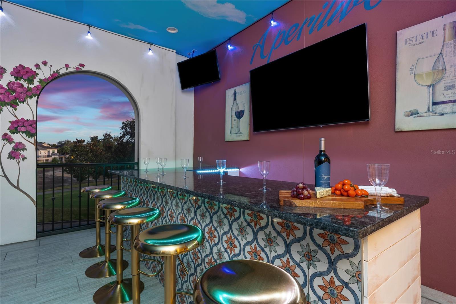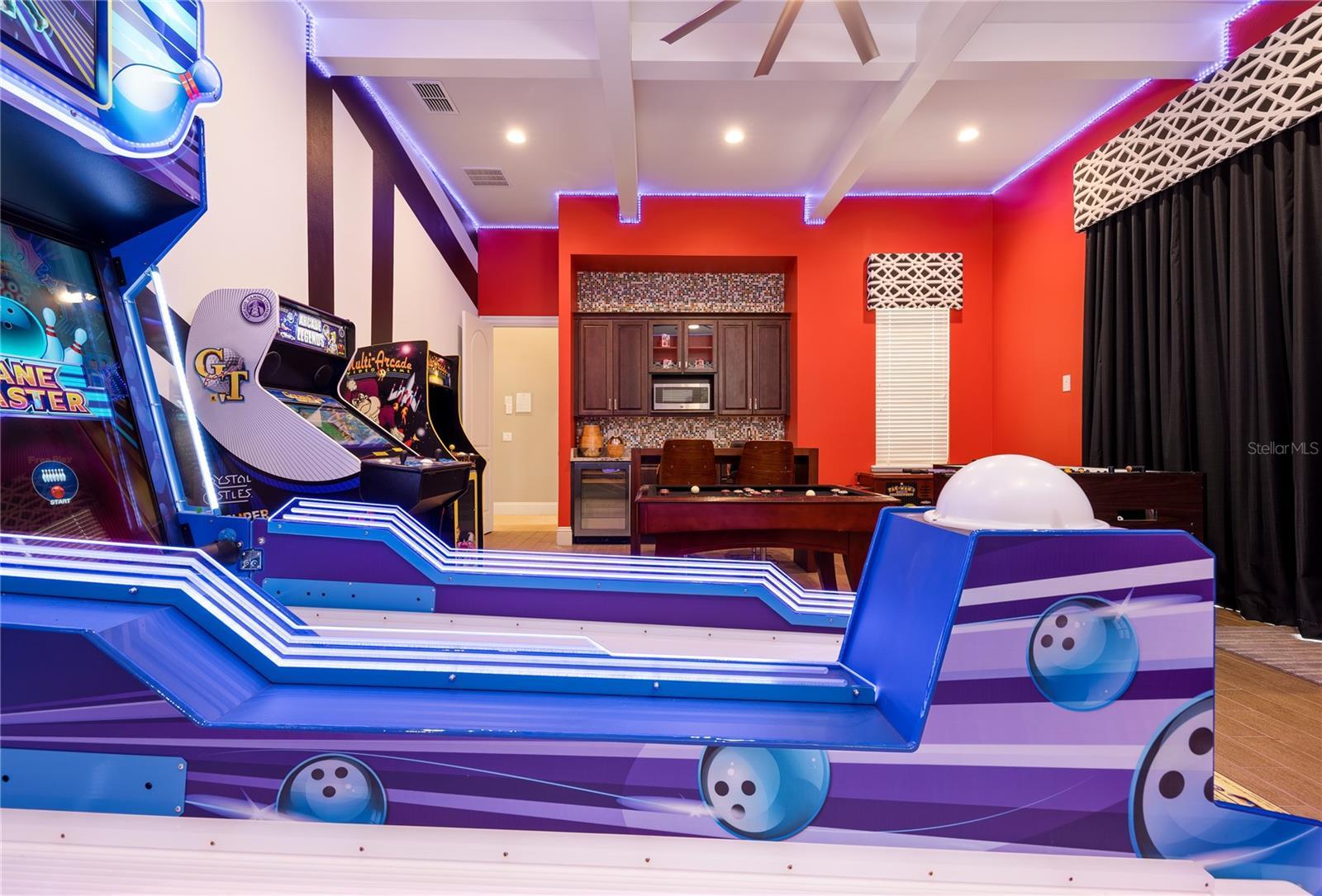 Big Price Improvement, Act Fast. One of the largest homes in Reunion Resort on a rare double lot overlooking the 8th hole of the Tom Watson golf course. This custom luxury home is well established in a rental program with repeat guests and future bookings in place. Designed for large multi-generation family reunions, prepare home-cooked meals in the fully equipped gourmet kitchen, or a barbecue in the summer kitchen. Swim in the pool, watch a movie in the home theater, nap in a themed bedroom, or play hours of arcade machines and games. A stunning double staircase welcomes you to this incredible one-of-a-kind home. With a large open plan living room, summer kitchen, and covered lanai, there are plenty of spaces to relax and socialize. Experience luxury with a large private pool with spillover spa, sun shelf, and oversized patio. The home also features two additional gathering areas upstairs, a home theater and game room, and two themed bedrooms. The large balcony overlooking the golf course features 6 TVs to enjoy sports games, a pool table, ceiling fans, and plenty of seating. This one-of-a-kind home also attracts corporate retreat bookings, as it's the perfect setting for company gatherings, executive meetings, training & team building. Guest can utilize the secondary catering kitchen and enjoy meals & snacks in the dining/conference room, covered lanai, or summer kitchen. The dining/conference room has a large table with seating for 32, the ideal setting for meetings. The theater room with a projector screen can be utilized to conduct a presentation or training session. Hold business meetings in the day, then entertain in the evenings. The rear pool deck is over 120 ft wide, it features a huge 35 x 16 ft pool, of which the depth ranges from 3ft to 5ft. On either side of the pool, there is a large 10.5 x 6.5 ft spillover spa and 10 x 8 ft shallow splash area that is 6 inches deep to enjoy. Located just 6 miles from Walt Disney World and other theme parks. The home has an active resort membership offering access to Reunion Resort's world-class amenities, including three championship golf courses designed by Palmer, Watson, and Nicklaus. There is also tennis courts, fitness gym, mini golf, multiple pools and a 5 acre waterpark with lazy river, along with great dining options.