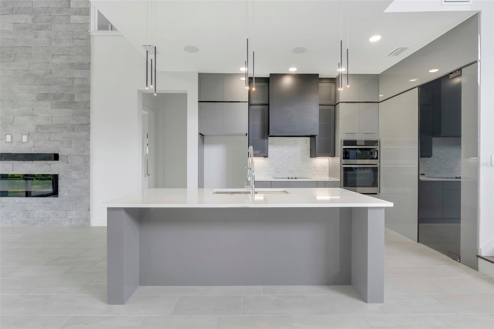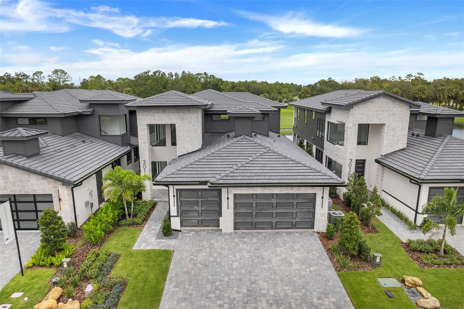 Move-in Ready! This incredible Aspen II inventory home by ABD has been priced to sell! It would cost you $250k more to build this new - so hurry! This is a fantastic deal. This home is LOADED. Contemporary luxury finishes throughout including gourmet kitchen, tile throughout first floor, wood stairs and wood floors upstairs, glass railing overlooking first floor great room, electric fireplace with gorgeous soaring stone wall, huge rear lanai with hidden roll down screens, AND a 3 car garage. This is a contemporary masterpiece - all located directly on the pond at the par 3 17th hole at Hampton Green at Providence Golf Club. Come live your dream for WAY less than building off-plan. Call us today.