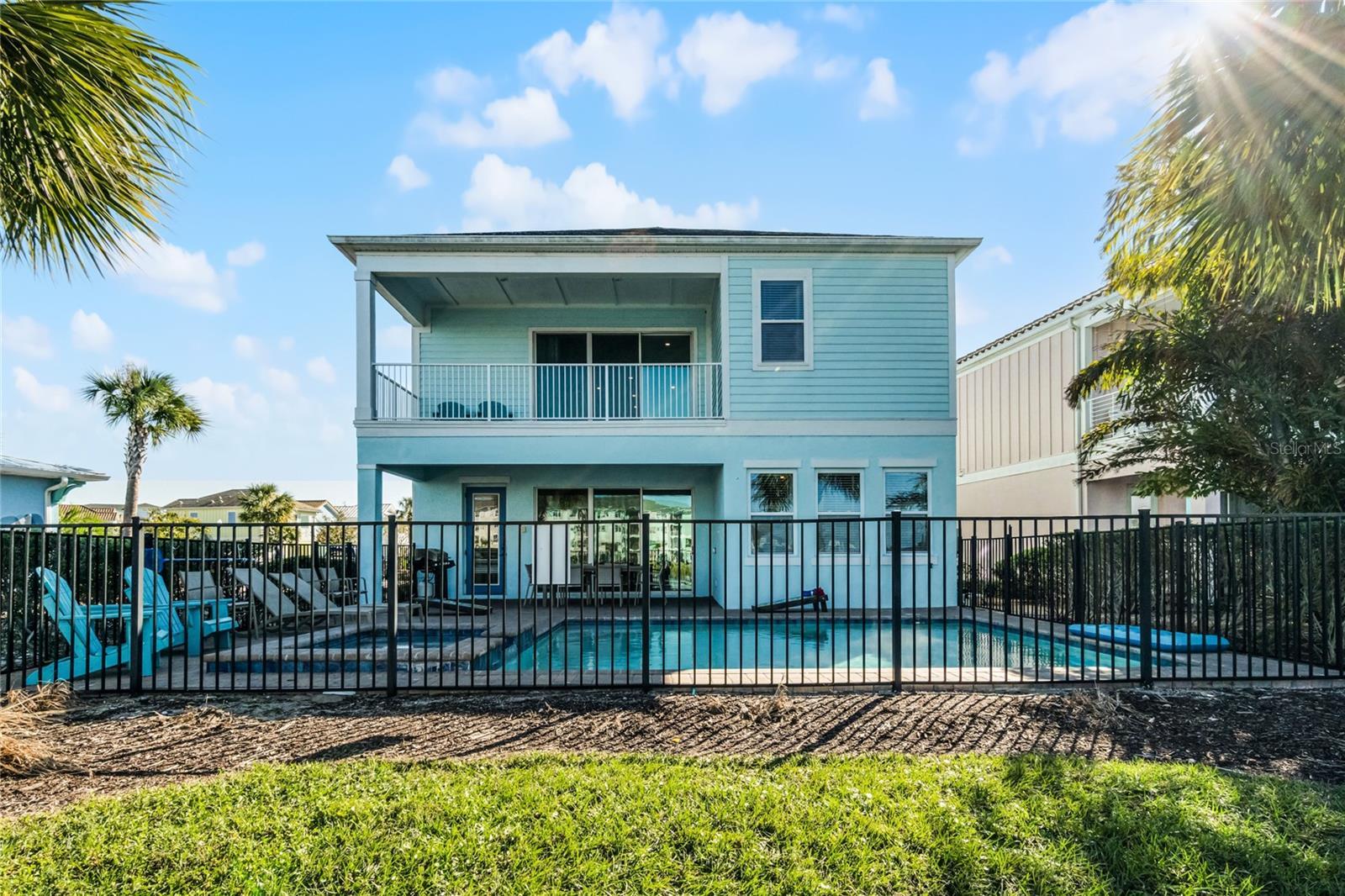 Incredible 6 Bedroom fully furnished WATER FRONT cottage with private pool and spa located in the heart of Margaritaville Resort just 5 minutes from Disney! This immaculately kept, highly sought after floorplan, sits on a large, premium lot with spectacular sunset views. This spacious open floorplan has sweeping views of the lagoon from every inch of the downstairs main living area, 6 large bedrooms, with master bedrooms both down and upstairs. This cottage comes fully equip with a double height entry way, high end wood look tile, quartz countertops, wooden stairs, oversized private owners closet, high ceilings, a bonus room upstairs that doubles as a second living room or can be a potential game room, a large second story balcony overlooking the lagoon, and so much more! The spacious, fenced, outdoor patio features a large private pool and spa, and ample eating and entertaining space. This property can be used as a full time residence, second home, or short term rental property. This resort style community features two large swimming pools, multiple restaurants and bars, fitness center, full service spa, lush and tranquil walking trails to all ends of the community, as well as a moments walk to all of the restaurants, bars, shops and entertainment that Sunset Walk has to offer! Low maintenance resort living includes fully maintained grounds, weekly pool maintenance, lawn care, and 24/7 roaming and manned gated security entrance.