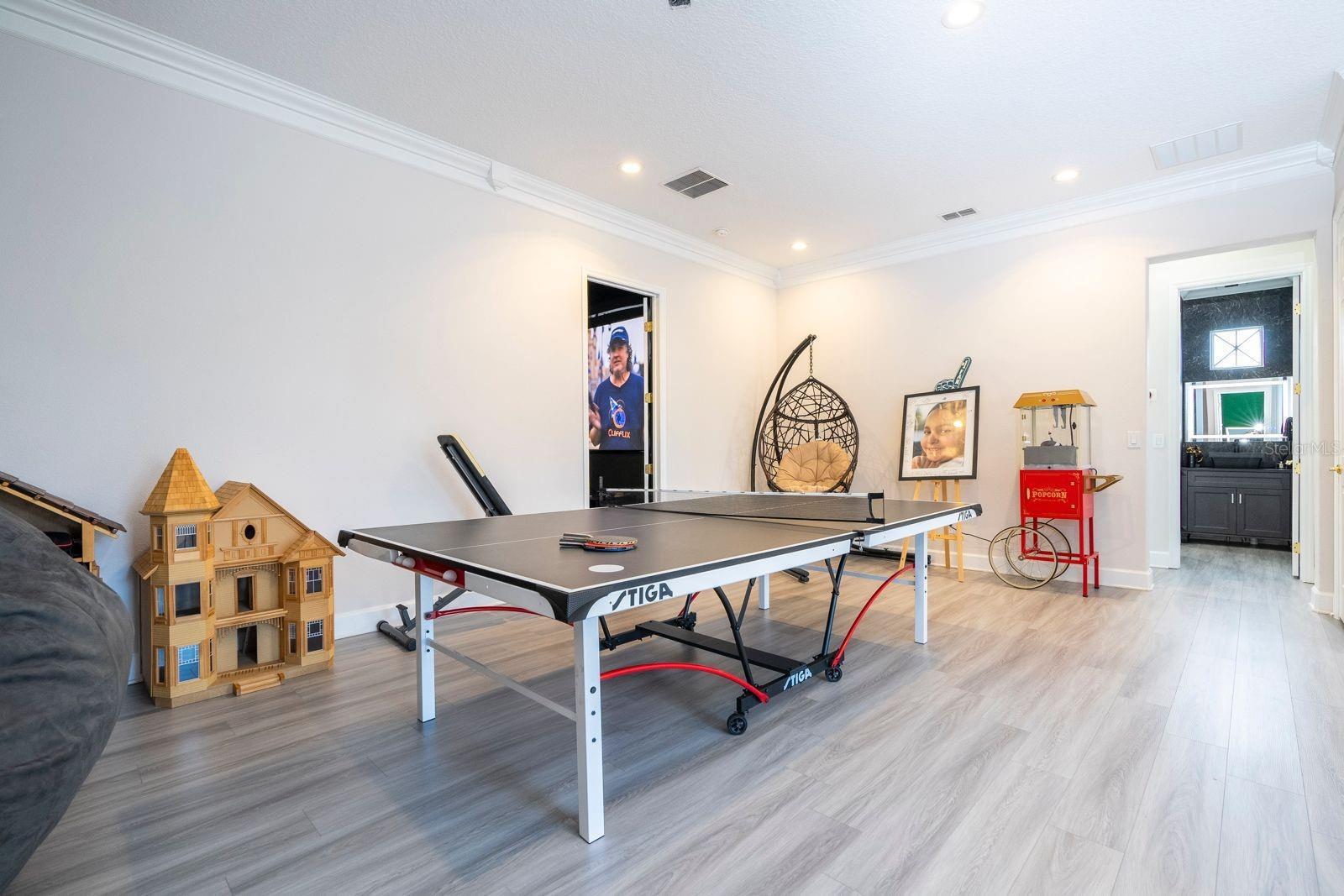Fully Renovated 4BR Luxury Home | Bay Isle Gated | Private Cinema | Grand Primary Suite | Corner Lot Fully renovated 4-bedroom, 3.5-bath plus additional upstairs half bath, home located in the desirable Bay Isle gated community in Winter Garden. Residents enjoy access to a private lake, park, sidewalks, and gated security. HOA covers landscaping, private roads, amenities, and security. This premium corner-lot property features an oversized paved courtyard with ample space for a future pool and custom outdoor living area, ample parking, irrigation system, rain gutters, and a whole-house water filtration system (owned, no lease). Spacious layout includes open kitchen/family room, living/dining room combo, extended loft, private cinema room with reclining theater seating, 120” screen, short-throw projector, and surround sound system, and enclosed lanai ideal for entertaining. Interior features include porcelain tile flooring in main living areas and kitchen, high ceilings, crown molding, solid wood cabinetry, solid surface countertops, walk-in closets, and showers in all full bathrooms. The grand primary suite on the main level features a spa-style bathroom with jetted soaking tub and dual shower, along with two walk-in closets and an exceptional bonus area with three separate rooms and independent entrance, currently used as additional closets, offering flexible potential for a home office, gym, studio, or private retreat. Recent updates include roof replaced in 2021 and three A/C units (one brand new) for enhanced efficiency and reliability. The floor plan offers: • Primary suite on the main level • Upstairs private suite with bathroom and walk-in closet • Two additional upstairs bedrooms with shared full bathroom • Additional upstairs half bath (powder room) Prime location near Winter Garden Village, new hospital, and just minutes from charming Downtown Winter Garden, with easy access to major highways, theme parks, and Orlando International Airport.