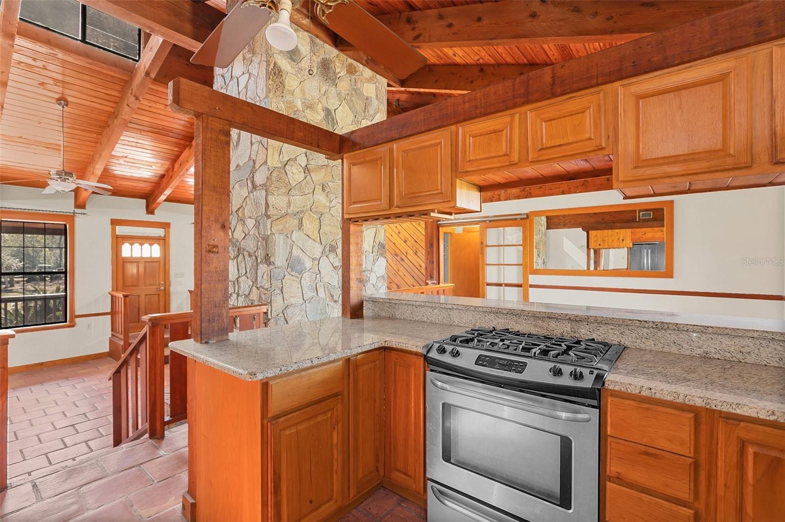 - Built-in Features, Cathedral Ceiling(s), Ceiling Fans(s), High Ceilings, Open Floorplan, Primary Bedroom Main Floor, Split Bedroom, Stone Counters, Vaulted Ceiling(s), Walk-In Closet(s)