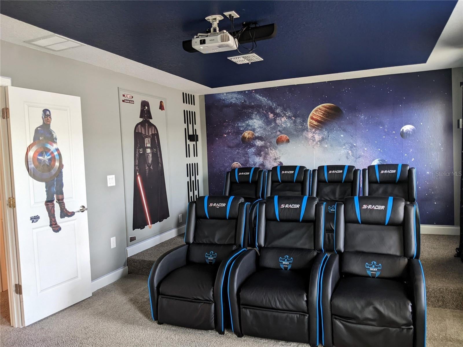 INVESTORS! PRICE REDUCED! This is the cash flow opportunity you've been waiting for. Beautiful corner lot, overlooking a conservation area. This stunning property is located in the beautiful community of "Cove at Storey Lake", one of the most popular vacation rental communities in Central Florida. This spacious single-family home is FULLY FURNISHED and custom designed. It is the Santiago model by Lennar Homes with 9 bedrooms, 5 bathrooms, a movie theater, and a game room. The modern kitchen features 42-inch cabinets, quartz countertops, and stainless steel appliances, with an open floor plan that blends into the family and dining areas. This home includes access to the community amenities, including a resort-style pool, lazy river, water slides, a splash pad and a Tiki Bar serving food and drinks. Additionally, you will have access to the indoor fitness center, mini-golf courses, a playground, and much more. This is a gated community that ensures the privacy and security of its guests. It is perfect for vacation rental investors as well as families looking to create lasting memories in the magical City of Orlando. MOTIVATED SELLER IS OFFERING $5,000 CREDIT TOWARDS BUYER'S CLOSING COSTS. Don't miss it and schedule your private tour today!