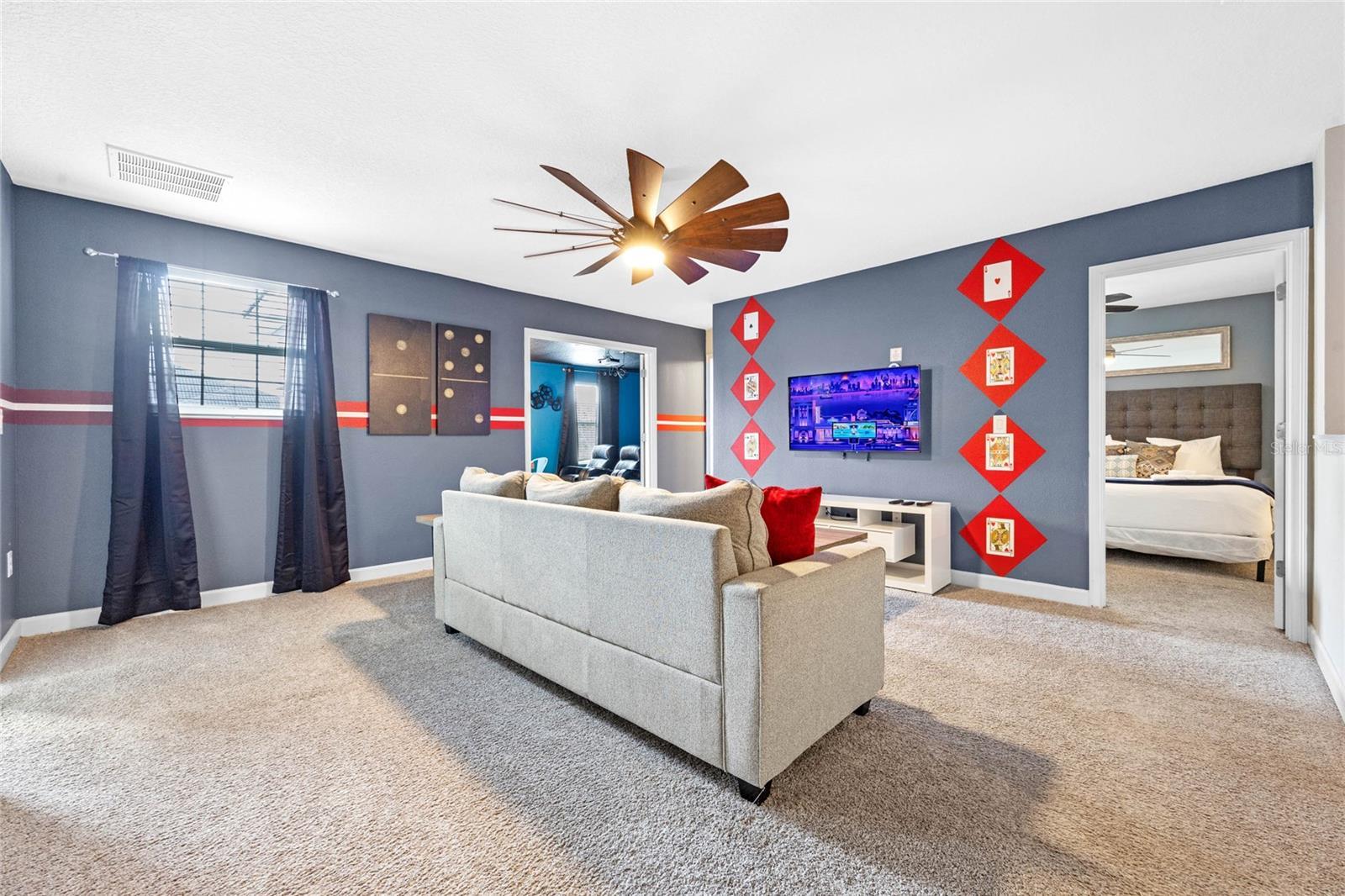 Turnkey Short-Term Rental Home with paid off Solar panels,in ChampionsGate Resort – Ready to Generate Income! Welcome to this FULLY FURNISHED, turnkey short-term rental pool home located in the prestigious ChampionsGate Resort, a top-rated vacation destination. This property is perfectly positioned to generate immediate rental income and is a rare find in a community with strong rental demand (Over $23,000 already booked in 2025). The home has been fully optimized for short-term rental success, featuring multiple themed bedrooms that appeal to families and guests, including Toy Story, Harry Potter, Beauty and the Beast, and a custom-designed MOVIE THEATER. These unique touches make it stand out in the competitive vacation rental market. In addition, established bookings can convey with the sale, allowing the new owner to step into a property already generating revenue. Energy efficiency is a key advantage, with smart thermostats and FULLY PAID OFF SOLAR PANELS that will save you thousands annually on electric bills, improving your return on investment. ChampionsGate Resort itself offers a state-of-the-art clubhouse, a LAZY RIVER over 1,000 feet long, indoor cabanas, an arcade, fitness center, GOLF COURSE, and a Tiki Bar by the pool. Guests can also enjoy beach volleyball courts, an onsite movie theater, and world-class amenities that ensure a memorable experience. Located only 15 minutes from DISNEY PARKS and offering easy access to Universal Studios, major highways, shopping, and dining, this home is perfectly situated to take advantage of Orlando’s thriving tourism market. With over 75 million visitors annually, the area provides a steady stream of potential renters. The opening of Universal’s EPIC UNIVERSE in 2025 will drive even more traffic to the region, securing long-term demand for vacation homes. This fully furnished home is truly turnkey and ready for immediate RENTAL INCOME. The association takes care of exterior maintenance, minimizing the hassle for owners. With a superhero-themed garage and bedrooms that captivate children and adults alike, this home offers something for everyone. Take advantage of this exceptional investment opportunity in one of the most sought-after vacation rental markets in the country. This property is ready to hit the ground running and will deliver high returns for the savvy investor. Don’t miss your chance—schedule a tour today!