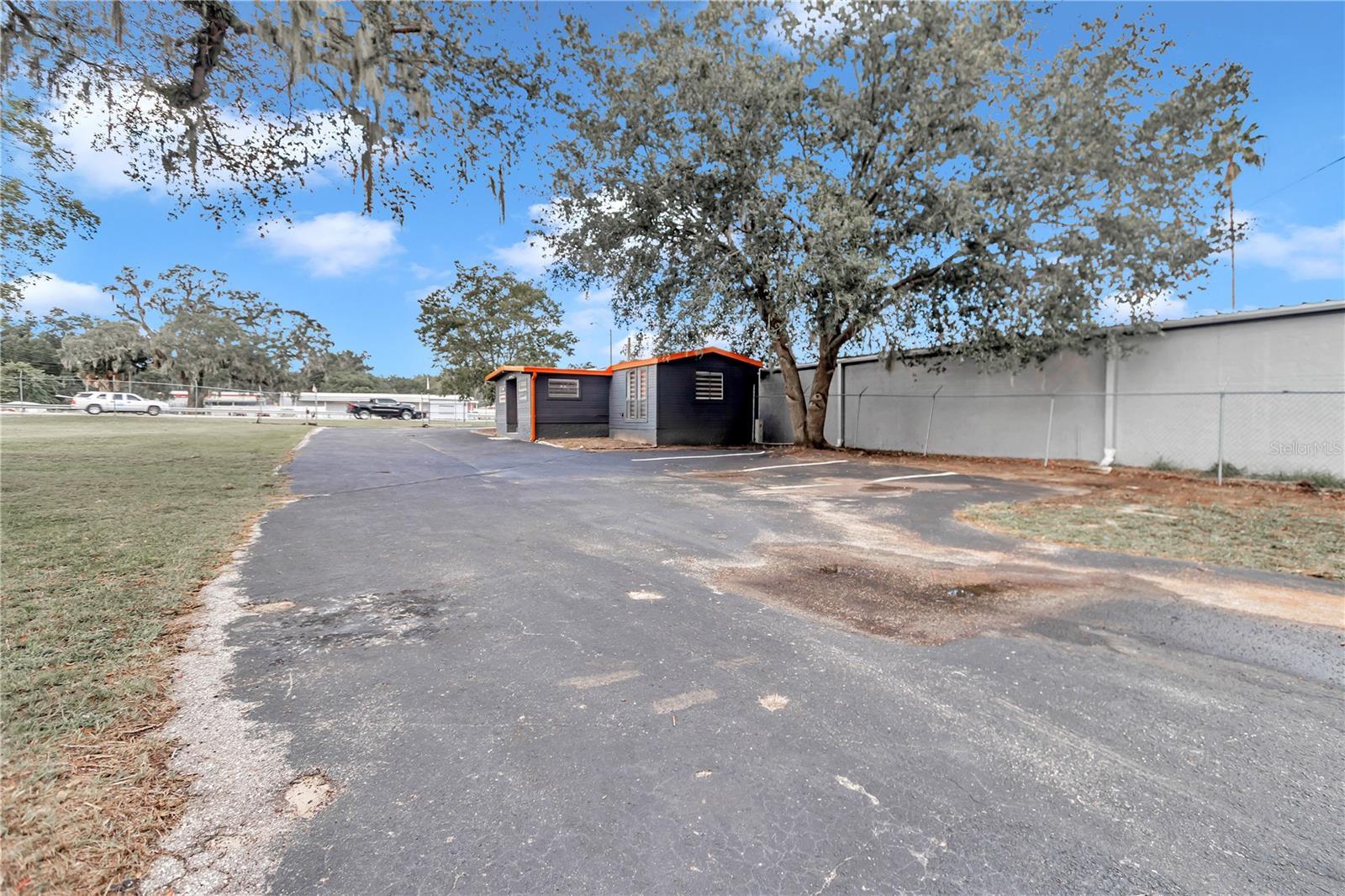 Located just minutes from downtown Ocala, this versatile commercial lot offers a range of possibilities for your business. The property is fully fenced ensuring security and privacy and features a paved parking lot for convenience. It includes a large carport and two oversized storage containers, providing ample space for storage and operations. The renovated mobile home/office on-site boasts modern updates, including a kitchen area, vinyl wood-like flooring, beam ceilings, and a half bath. Zoned B4, this property is perfectly suited for various business applications. There's a permit in process for an auto dealership, adding potential for specific business ventures. Don't miss out on this fantastic opportunity!