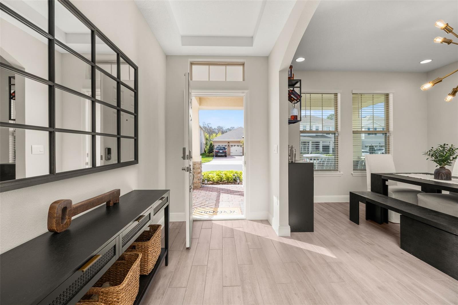 *Motivated Seller* This 2023 built home has only had One-owner, highly upgraded luxury 4-bedroom, 3-bathroom home with 2-car garage, fenced-in oversized yard, and overhead storage in the highly desirable Waterleigh community—just minutes from Walt Disney World in the Top-Rated School zone. No lawn mower needed - the HOA maintains all lawn care in this beautiful community! This home is constructed Block on Block - top and bottom unlike many other builders who build wood frame on the second floor. Don't wait for a newly constructed home and pay $100,000 more for a similar home... this one is ready now and you can put your savings into a pool or in the bank! This well-appointed home features a downstairs guest suite, upgraded wood-look tile (no carpet on the first floor), and a gourmet kitchen with 42” cabinets, quartz countertops, custom backsplash, large island, under-cabinet lighting, and premium LG stainless steel appliances, including a French door refrigerator with craft ice and Instaview. Additional features include an EV charging station, smart switches, custom lighting and fans throughout, and a covered lanai overlooking a spacious backyard. Upstairs offers a generous loft, two secondary bedrooms with walk-in closets, a full bathroom with dual sinks, a laundry room with LG washer and dryer on pedestals, and a luxurious primary suite with a tray ceiling, a spa-style bath, a frameless glass shower, a soaking tub, and an oversized walk-in closet. Oversized yard has plenty of space to build your own pool or you could enjoy the Waterleigh resort-style amenities with 3 pools, clubhouses, fitness centers, tennis courts, dog parks, playgrounds, putt-putt golf, fishing pier, walking trails, rock climbing, pickleball ball and a full calendar of social events. Just a couple of streets away, the 4th pool is under construction and will be completed shortly. Zoned for top-rated schools and offering convenient access to 429, 417, and 408. Many homeowners enjoy golf cart living in this community, where you can enjoy an abundance of amenities, social events, drop your little ones off at school, or do your grocery shopping; there's a daycare, elementary, and middle school, and a Publix located inside the community. This is a rare opportunity to own a move-in-ready, upgraded home in one of Winter Garden’s most popular neighborhoods—with closing cost assistance included for rate buy down or other.