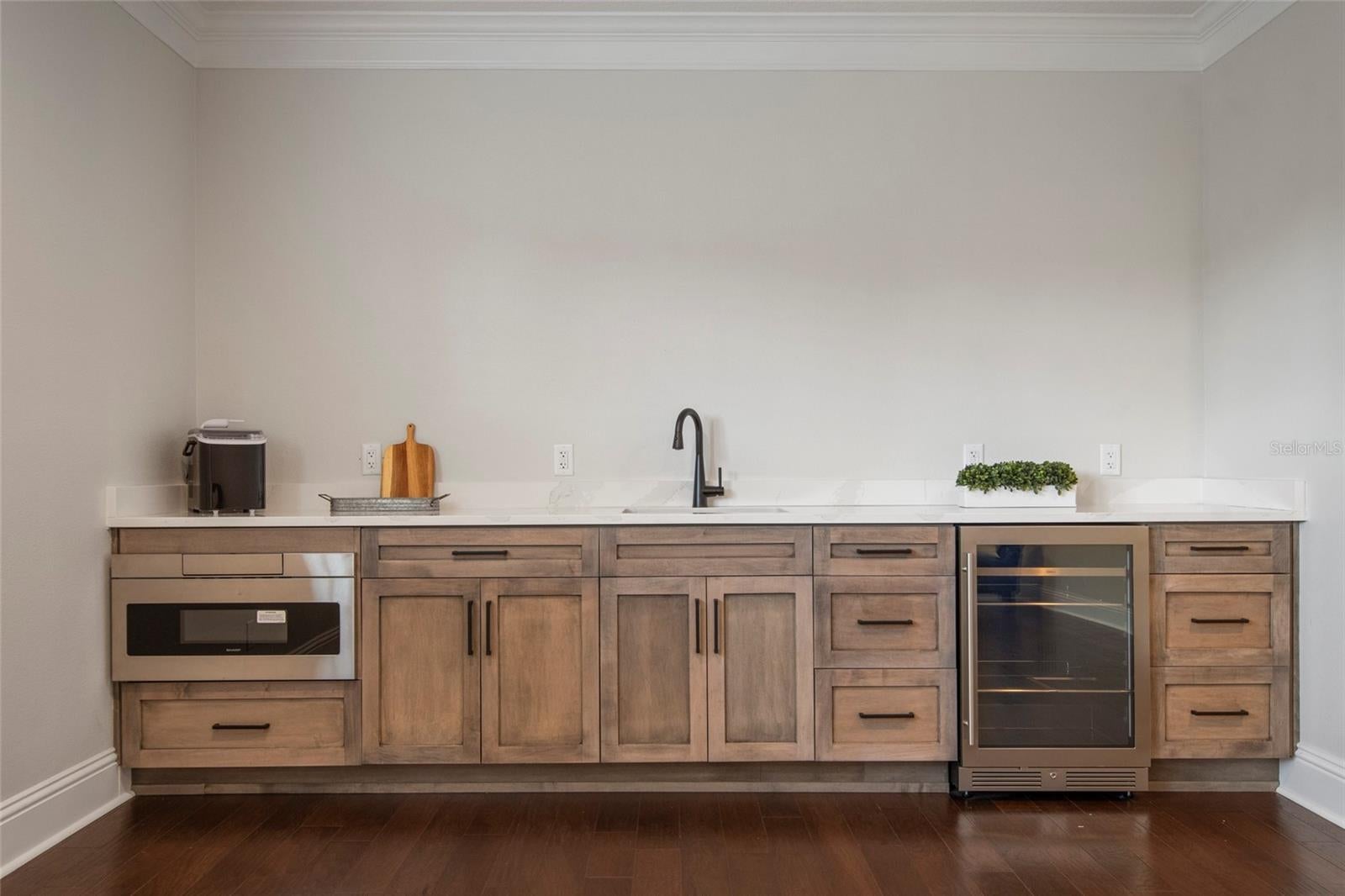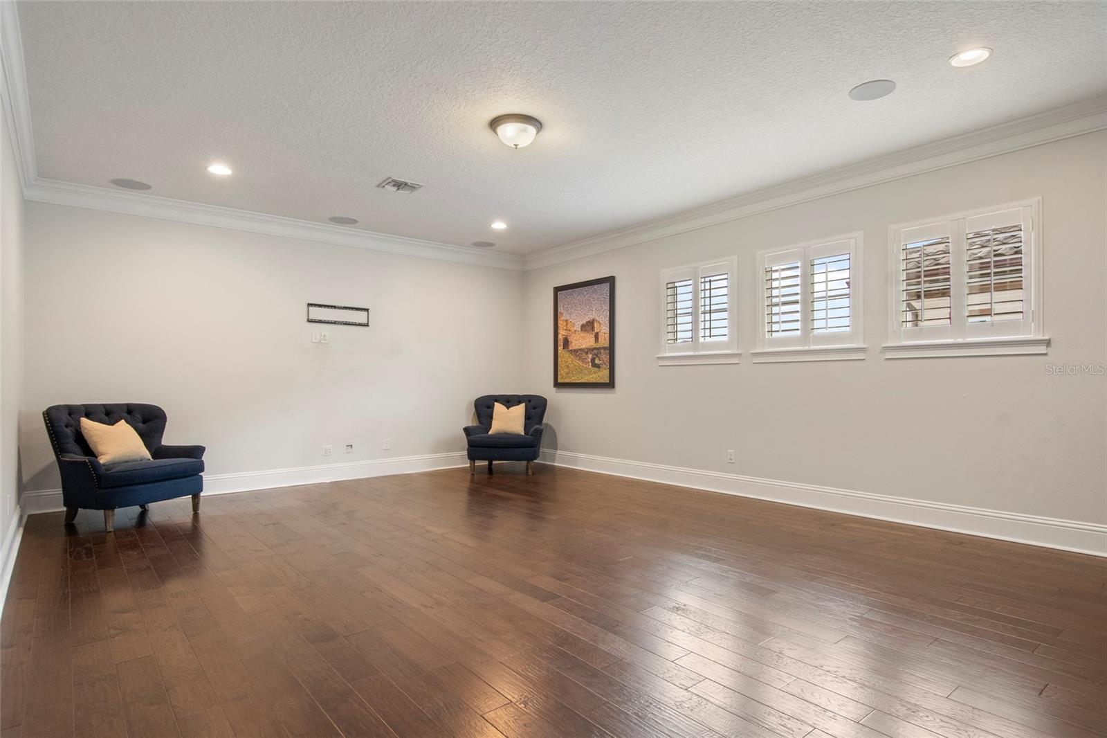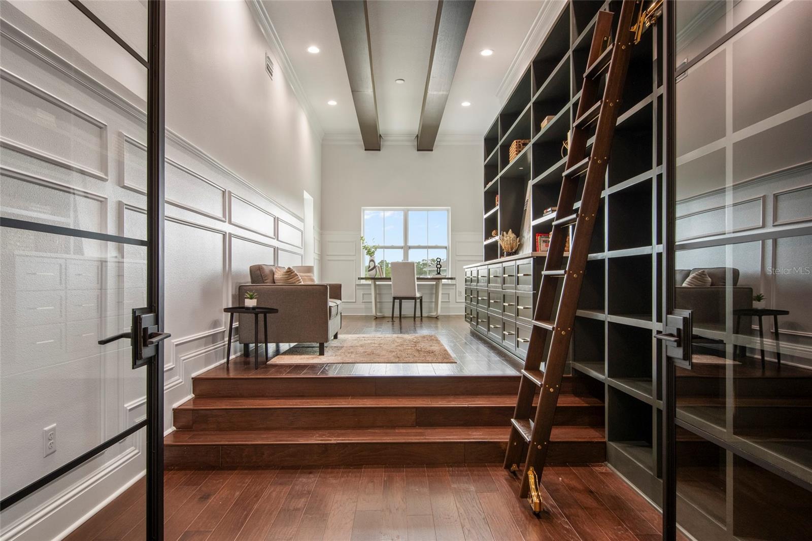 One or more photo(s) has been virtually staged. Welcome to this EXQUISITE Luxury Estate in Laureate Park, Lake Nona, where every detail has been thoughtfully DESIGNED and UPGRADED. This one-of-a-kind David Weekley Longboat has been expanded with over 1,000 additional square feet, offering an impressive 5,037 SqFt, 6 Bedrooms, 5.5 Baths, 4-Car Garage, 2 Office Spaces, Custom Wine Room, Theatre Room, and a Spectacular Pool and Outdoor Living area. Your New home welcomes you with a FRESHLY PAINTED EXTERIOR, BRAND NEW ROOF, CUSTOM landscape design, and an inviting front porch. Inside, enjoy elegant finishes like Engineered Hardwood flooring, Custom lighting, and Double Crown Molding throughout. Off the foyer, a private office with French doors, wainscoting, and Sonos speaker system offers a productive retreat. A first-floor guest suite includes soaring ceilings, plantation shutters, and a custom closet, adjacent to a full designer bath. Enjoy entertaining in your fully custom wine room with wet bar, quartz countertops, ice maker, 2 wine fridges, and cabinetry. Nearby, a versatile bonus room/library features custom built-ins and a stunning brick accent wall. The HEART of the HOME is the Chef’s Kitchen, equipped with a built-in Sub-Zero fridge, Double-Stacked Cabinets, Large Island with Ceramic Farmhouse Sink, Gas Range with Griddle and Pot Filler, Double Ovens, and Walk-in Pantry. The adjacent dining room was expanded to create a formal entertaining space with seamless access to the outdoor oasis. Your first-floor Primary Retreat offers privacy and elegance with wood beam ceilings, French doors, and large windows overlooking the pool. The spa-like ensuite boasts marble tile, double vanities, quartz counters, rain shower, and a large custom walk-in closet. A well-appointed laundry room, powder bath, and mudroom off the garage complete the main level. Upstairs, you’ll find a Spacious Loft, 4 Bedrooms with custom closets, and 3 full bathrooms. Your newest additions to this home include this Office Masterpiece complete with Stunning Wood Beams, Glass French Doors, and a Custom Built-In Library. Surrounded by Windows this space offers an abundance of Natural Light that Warms the Space Perfectly. The nanny/in-law suite includes a kitchenette, ensuite bath, washer/dryer hookup, and walk-in closet—ideal for guests or multigenerational living. Your Theatre Room features soft-close cabinetry, a stainless mini fridge, ice maker, microwave, and full surround sound—perfect for movie nights. Step outside to your resort-style backyard with a new pool, custom fireplace, covered lanai, built-in speakers, and lush landscaping for ultimate privacy. Additional Upgrades include: Brand NEW Roof, 3 NEWER A/C units, Water softener, NEW Sofrock garage flooring, oversized garage doors, custom cubbies, storage racks, and new paver pad with side entry. Located in the sought-after Laureate Park community, residents enjoy HOA Includes HIGH-SPEED INTERNET of up to 1GIG, LP Fitness Center, Resort-Style LP Aquatic Center with Beach Volleyball Court & a half Basketball Court. Laureate Park also offers Community Gardens, Dog Parks, Playgrounds, and Miles of Trails to enjoy Walking, Running, and Biking. Located in the heart of Lake Nona Medical City. A RATED SCHOOLS & Minutes to Orlando International Airport, Major Highways, Shopping, Dining, USTA & KPMG. This home is truly a masterpiece—schedule your private tour today and experience luxury living at its finest!