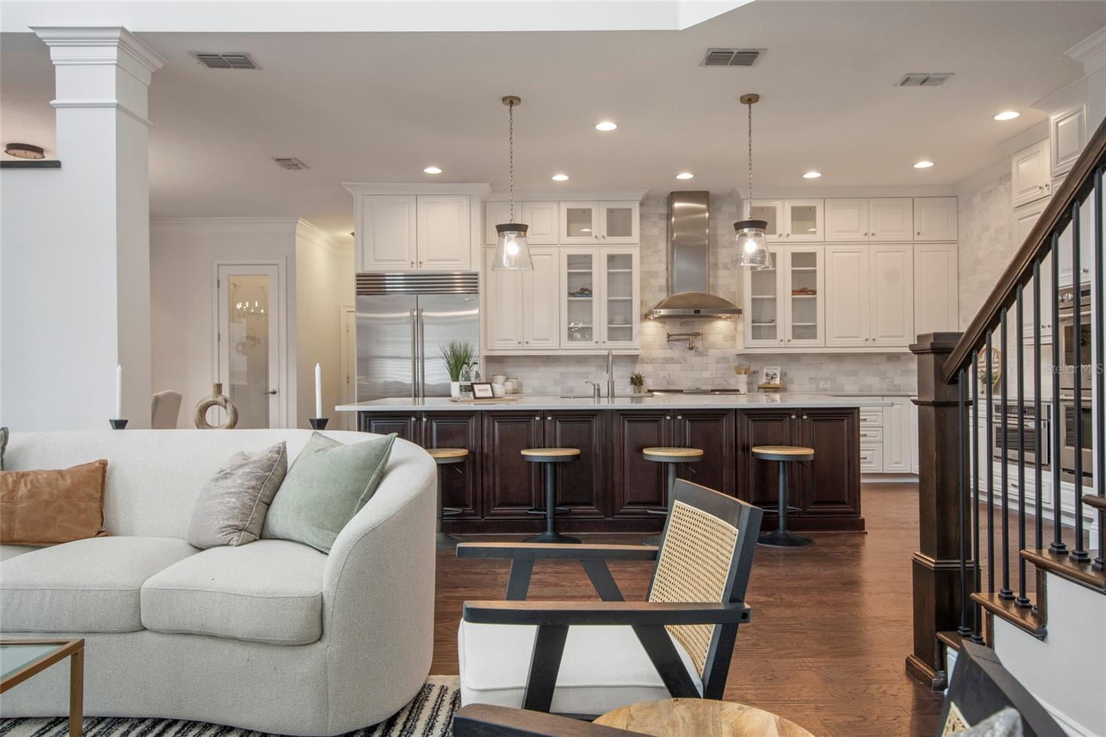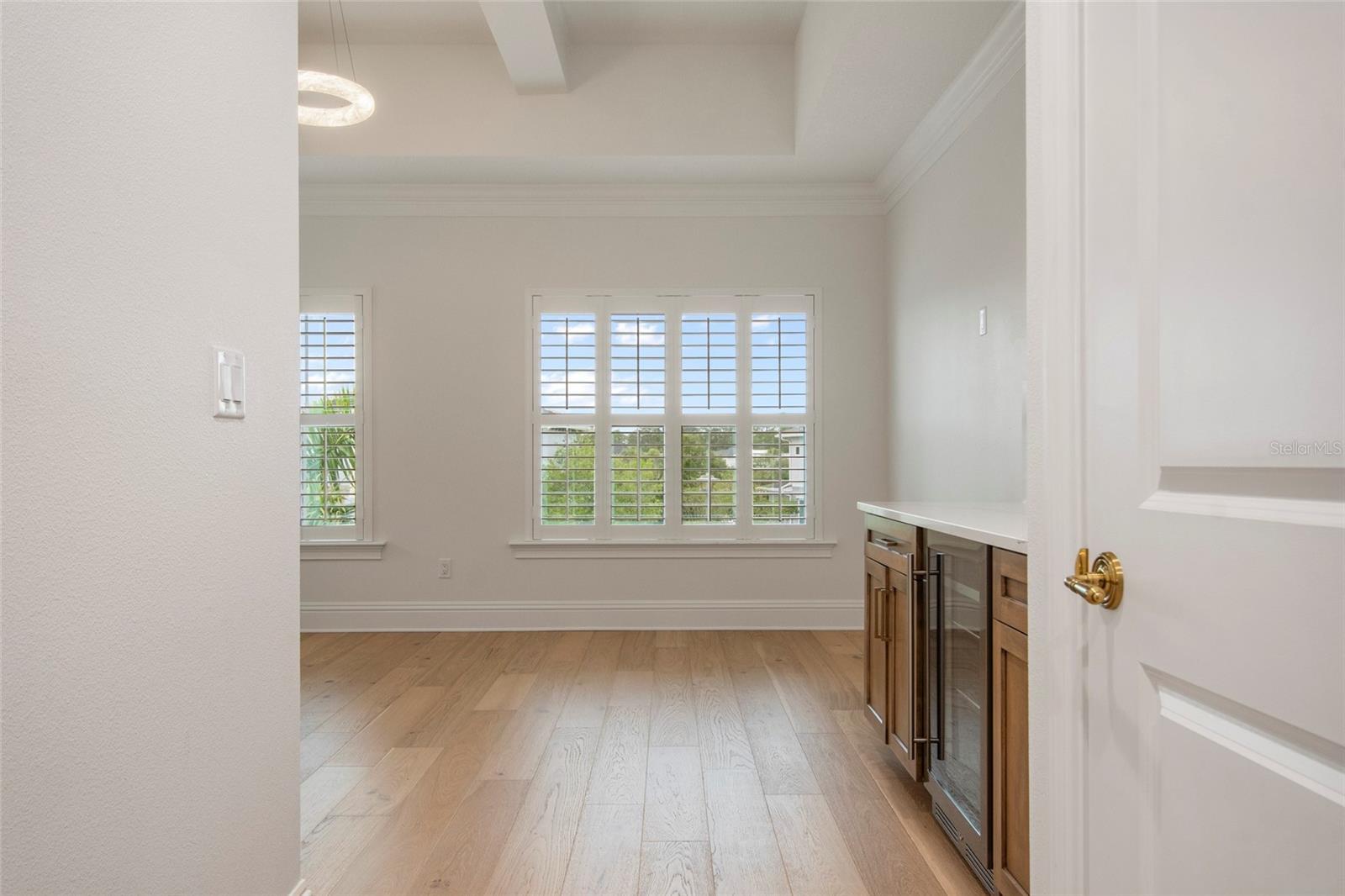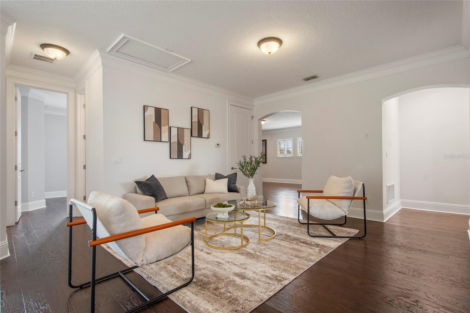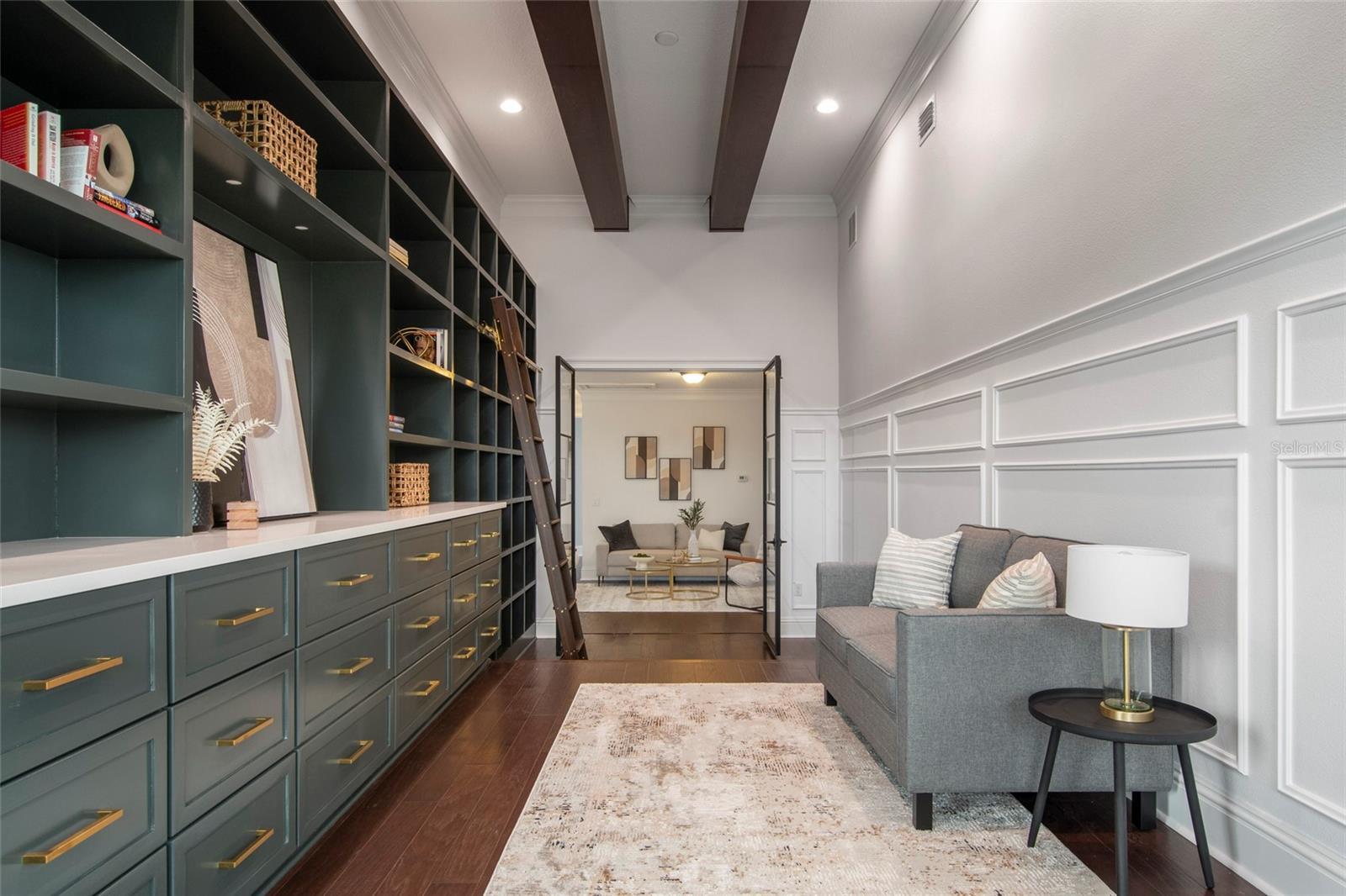 One or more photo(s) has been virtually staged. Welcome to this EXQUISITE Luxury Estate in Laureate Park, Lake Nona, where every detail has been thoughtfully DESIGNED and UPGRADED. This one-of-a-kind David Weekley Longboat has been expanded with over 1,000 additional square feet, offering an impressive 5,037 SqFt, 6 Bedrooms, 5.5 Baths, 4-Car Garage, 2 Office Spaces, Custom Wine Room, Theatre Room, and a Spectacular Pool and Outdoor Living area. Your New home welcomes you with a FRESHLY PAINTED EXTERIOR, BRAND NEW ROOF, CUSTOM landscape design, and an inviting front porch. Inside, enjoy elegant finishes like Engineered Hardwood flooring, Custom lighting, and Double Crown Molding throughout. Off the foyer, a private office with French doors, wainscoting, and Sonos speaker system offers a productive retreat. A first-floor guest suite includes soaring ceilings, plantation shutters, and a custom closet, adjacent to a full designer bath. Enjoy entertaining in your fully custom wine room with wet bar, quartz countertops, ice maker, 2 wine fridges, and cabinetry. Nearby, a versatile bonus room/library features custom built-ins and a stunning brick accent wall. The HEART of the HOME is the Chef’s Kitchen, equipped with a built-in Sub-Zero fridge, Double-Stacked Cabinets, Large Island with Ceramic Farmhouse Sink, Gas Range with Griddle and Pot Filler, Double Ovens, and Walk-in Pantry. The adjacent dining room was expanded to create a formal entertaining space with seamless access to the outdoor oasis. Your first-floor Primary Retreat offers privacy and elegance with wood beam ceilings, French doors, and large windows overlooking the pool. The spa-like ensuite boasts marble tile, double vanities, quartz counters, rain shower, and a large custom walk-in closet. A well-appointed laundry room, powder bath, and mudroom off the garage complete the main level. Upstairs, you’ll find a Spacious Loft, 4 Bedrooms with custom closets, and 3 full bathrooms. Your newest additions to this home include this Office Masterpiece complete with Stunning Wood Beams, Glass French Doors, and a Custom Built-In Library. Surrounded by Windows this space offers an abundance of Natural Light that Warms the Space Perfectly. The nanny/in-law suite includes a kitchenette, ensuite bath, washer/dryer hookup, and walk-in closet—ideal for guests or multigenerational living. Your Theatre Room features soft-close cabinetry, a stainless mini fridge, ice maker, microwave, and full surround sound—perfect for movie nights. Step outside to your resort-style backyard with a new pool, custom fireplace, covered lanai, built-in speakers, and lush landscaping for ultimate privacy. Additional Upgrades include: Brand NEW Roof, 3 NEWER A/C units, Water softener, NEW Sofrock garage flooring, oversized garage doors, custom cubbies, storage racks, and new paver pad with side entry. Located in the sought-after Laureate Park community, residents enjoy HOA Includes HIGH-SPEED INTERNET of up to 1GIG, LP Fitness Center, Resort-Style LP Aquatic Center with Beach Volleyball Court & a half Basketball Court. Laureate Park also offers Community Gardens, Dog Parks, Playgrounds, and Miles of Trails to enjoy Walking, Running, and Biking. Located in the heart of Lake Nona Medical City. A RATED SCHOOLS & Minutes to Orlando International Airport, Major Highways, Shopping, Dining, USTA & KPMG. This home is truly a masterpiece—schedule your private tour today and experience luxury living at its finest!
