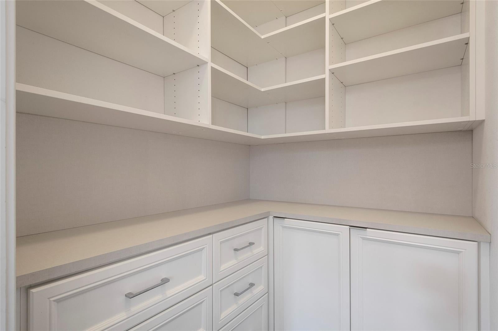 - Ceiling Fans(s), Crown Molding, Eat-in Kitchen, High Ceilings, Kitchen/Family Room Combo, L Dining, Open Floorplan, PrimaryBedroom Upstairs, Thermostat, Walk-In Closet(s), Window Treatments