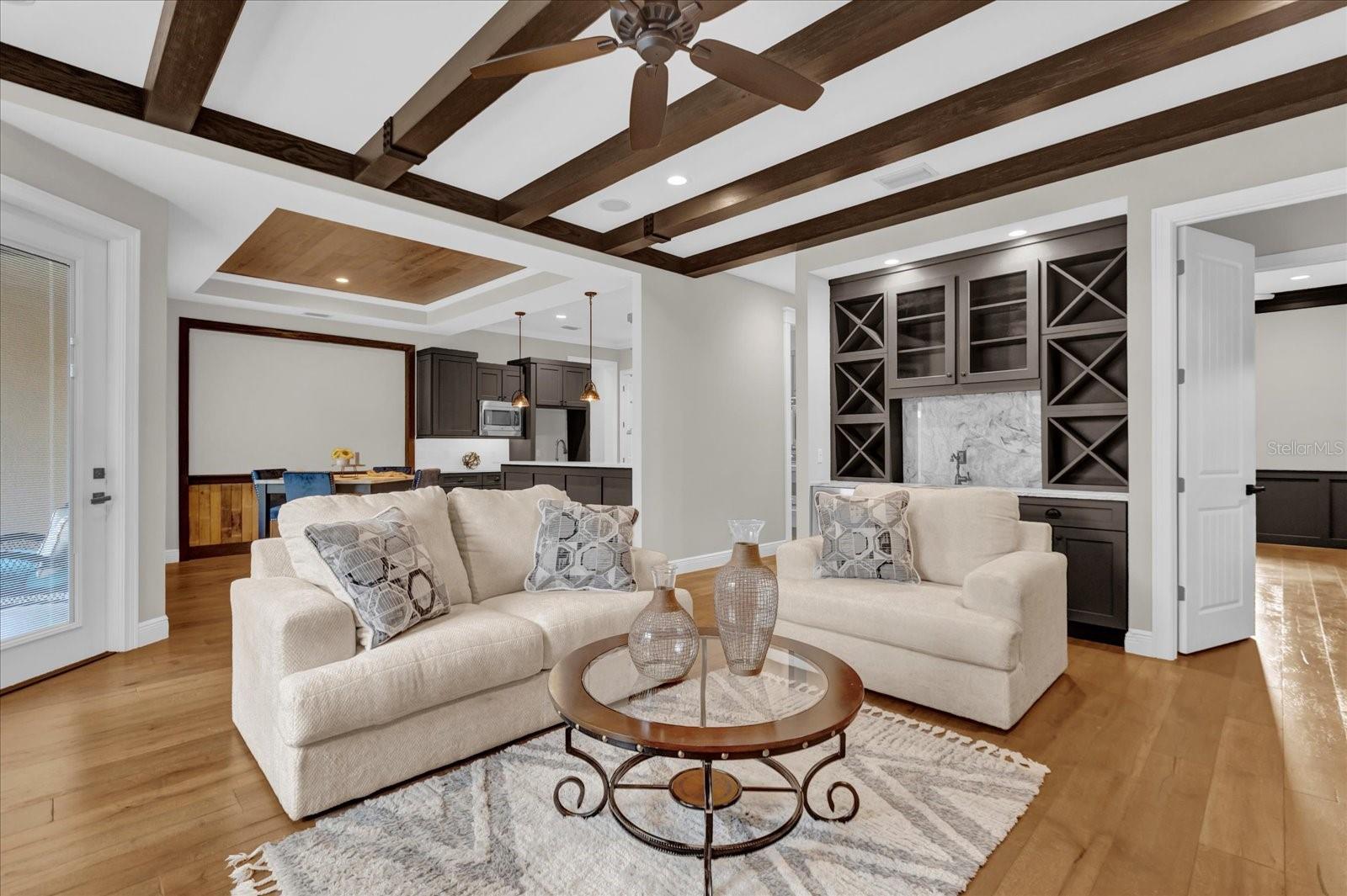 Under contract-accepting backup offers. 2025 PARADE OF HOMES GRAND AWARD WINNING BUILDER | 2017 PARADE OF HOMES WINNER |CUSTOM CRAFTSMAN BUILT HOME | HIGH QUALITY | PRIME LOCATION | PUTTING GREEN | SCREENED IN LANAI | POND VIEW | TANKLESS WATER HEATER Discover luxury and craftsmanship in this remarkable 2017 Parade of Homes Winner, built by the renowned Westmont Custom Homes. this 4-bedroom, 3.5-bathroom masterpiece spans 3,766 sqft. Custom-built by Westmont Custom Homes, with over 40 years of expertise, this residence showcases exceptional craftsmanship, including craftsman-style doors, wainscoting for an elegant home office ambiance, oversized bedrooms with ample closet space, engineered hardwood flooring, beamed ceilings in the family and bonus rooms, a game room with a balcony offering magical views of Disney fireworks, a wet bar with distressed glass and wine storage, and built-in jewelry storage in the primary closet and a cookbook/China closet in the hall close to the living room. The chef’s dream kitchen boasts a double French door oven with a warming tray, and a cooktop. The home also features a central vacuum system for added convenience and a laundry room with a fridge hookup. Designed for energy efficiency and modern convenience, the home features spray foam insulation in the attic, a durable tile roof, an updated AC system with a new downstairs handler (Dec 2024), a security system for peace of mind, and built-in shelves and roof racks in the garage. The home’s thoughtful details, modern touches, and luxurious finishes ensure broad appeal while maintaining timeless elegance. The backyard is a true retreat, featuring a screened-in lanai, a putting green, and a beach area, perfect for relaxation and outdoor enjoyment. This is your chance to own a truly award-winning home in a highly sought-after location. Located in a prime area near Windermere Prep and other top schools, world-famous attractions, and convenient travel routes, this home offers both convenience and luxury.