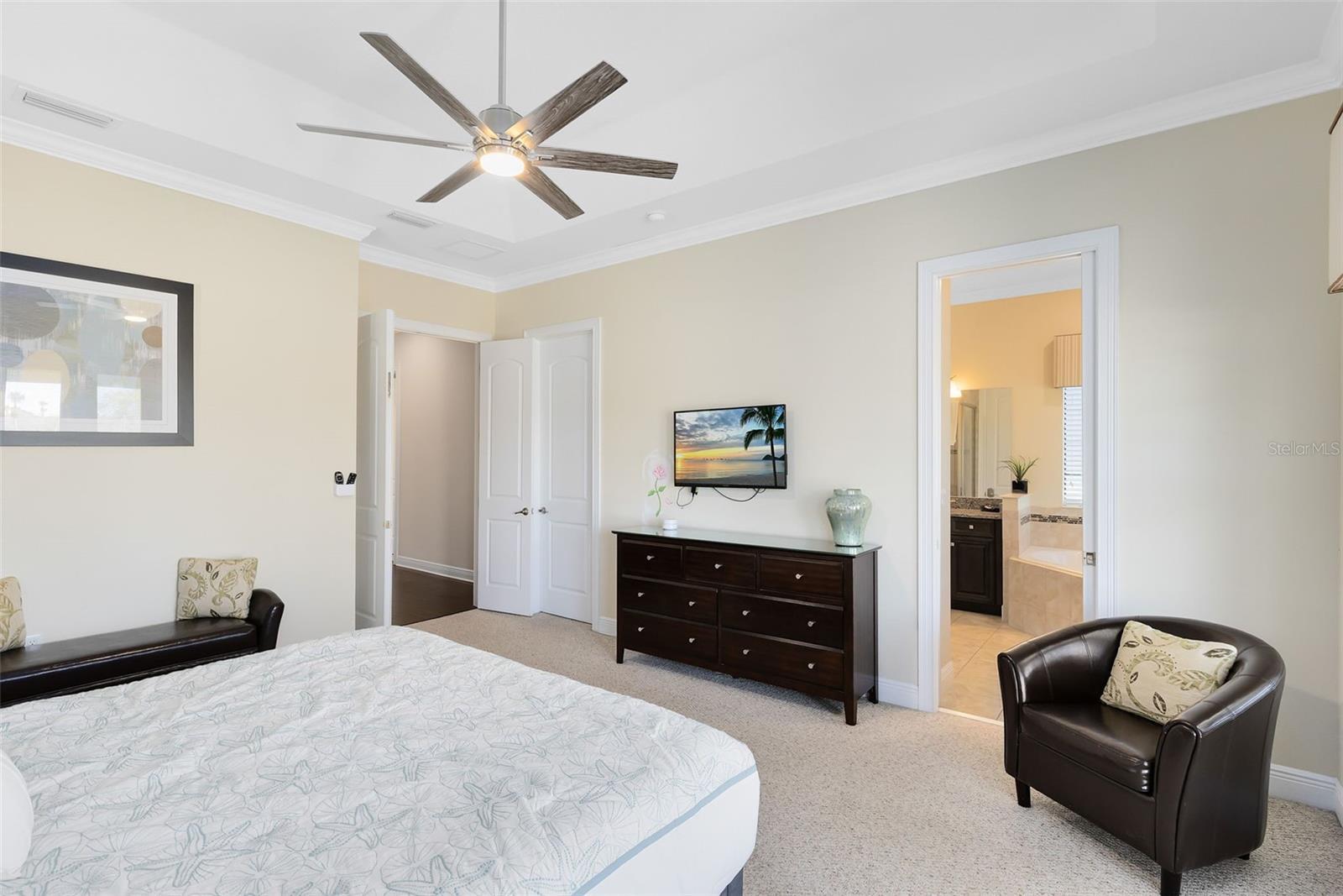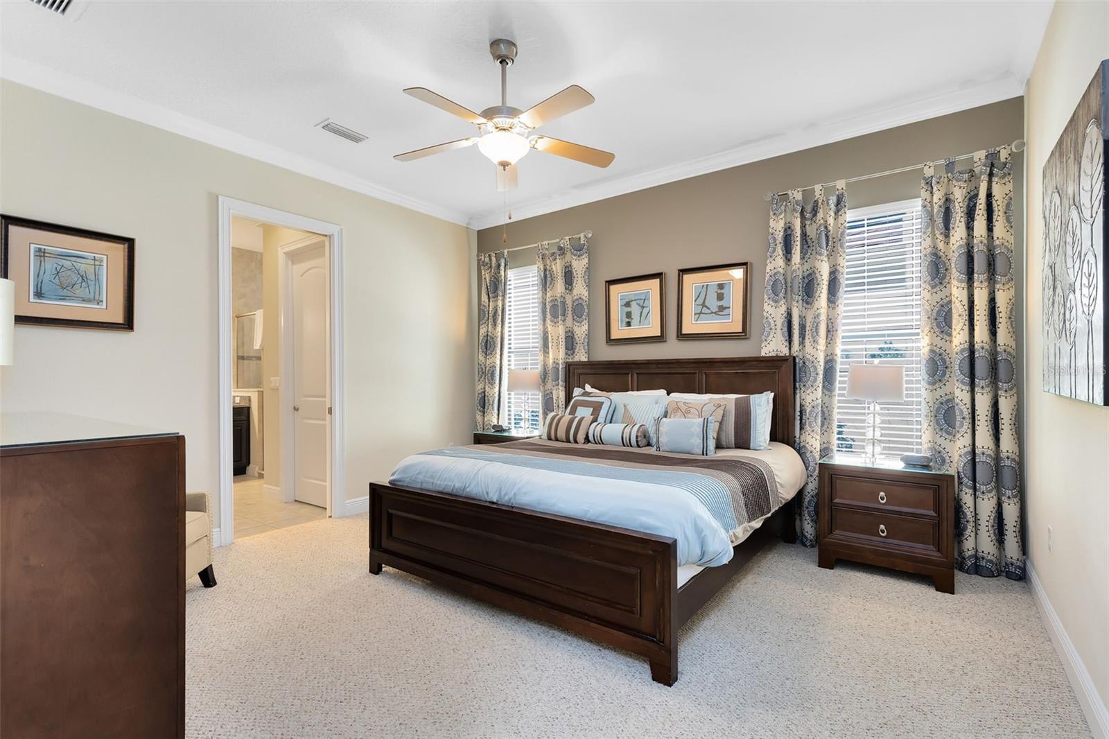 - Ceiling Fans(s), Eat-in Kitchen, Kitchen/Family Room Combo, Primary Bedroom Main Floor, PrimaryBedroom Upstairs, Solid Surface Counters, Solid Wood Cabinets, Thermostat, Walk-In Closet(s), Window Treatments
