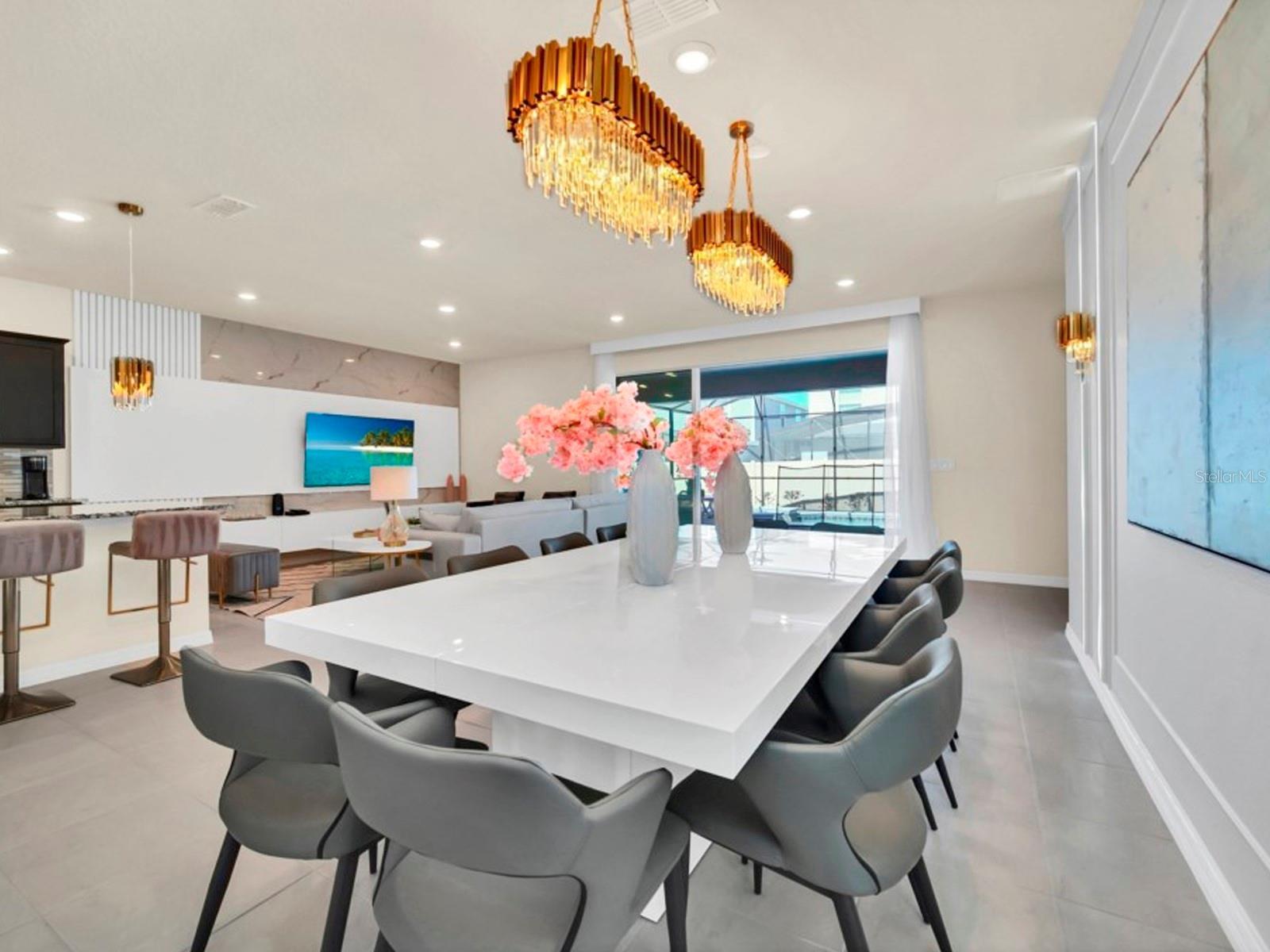 Rare investment gem in the coveted Windsor Island Resort! This turn-key property boasts an impressive higher occupancy rate compared to other homes, with bookings secured through 2025. Designed for ultimate luxury, this 10-bedroom, 8-bathroom short-term rental home is fully furnished with high-end pieces and a designer-level finish, making it a standout choice for discerning travelers. The expansive layout features an open-concept living space, a state-of-the-art gourmet kitchen, and an incredible outdoor area complete with a pool, spa, and spacious deck, ideal for relaxation and entertainment. Located within a world-class resort community, residents enjoy access to top-tier amenities, including a multi-million dollar clubhouse, fitness center, arcade, restaurant, and more. With its prime proximity to Disney World and other renowned Central Florida attractions, this property is a high-performing asset that delivers remarkable rental returns year-round. Don't miss out on this exceptional opportunity!