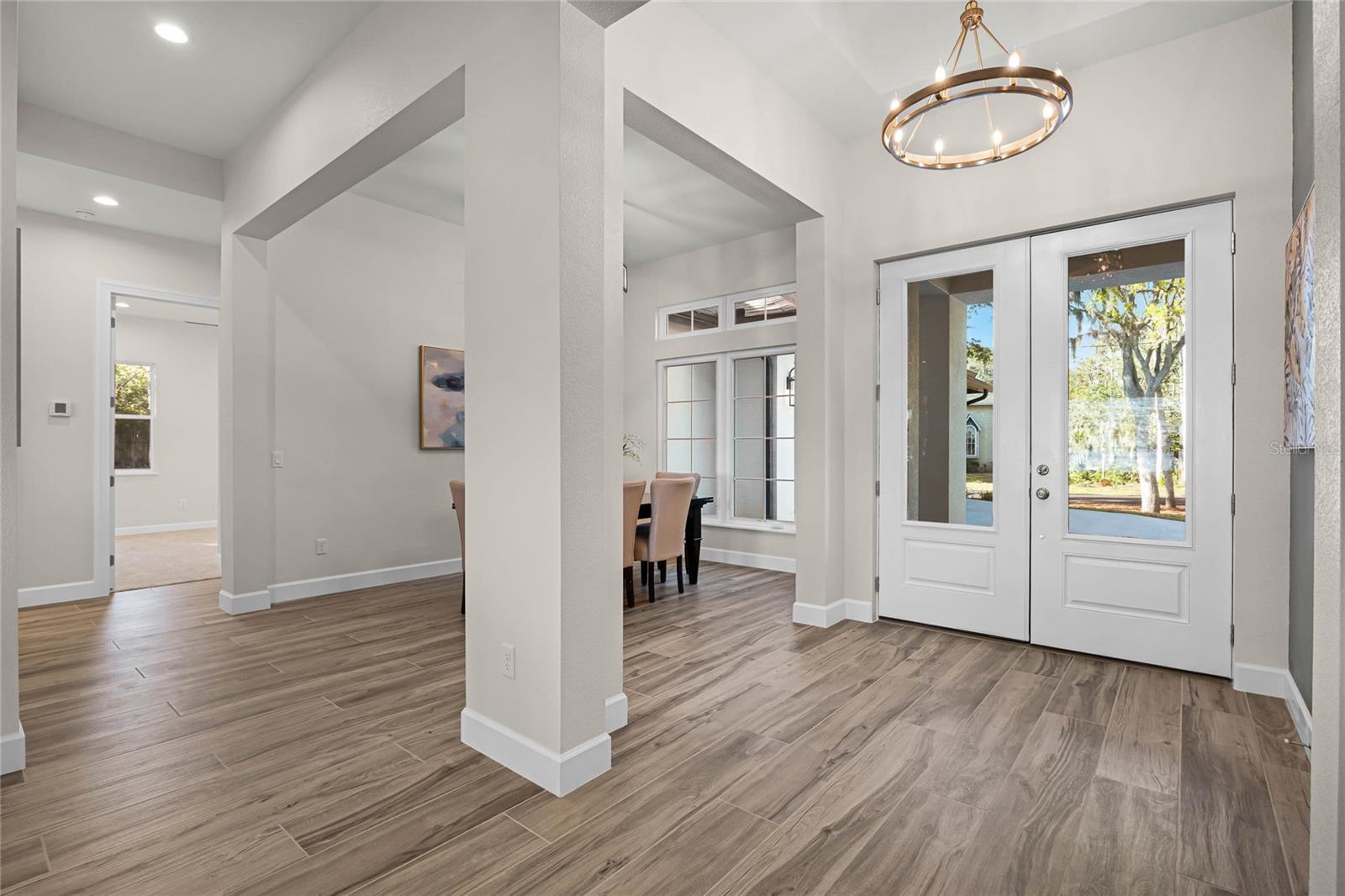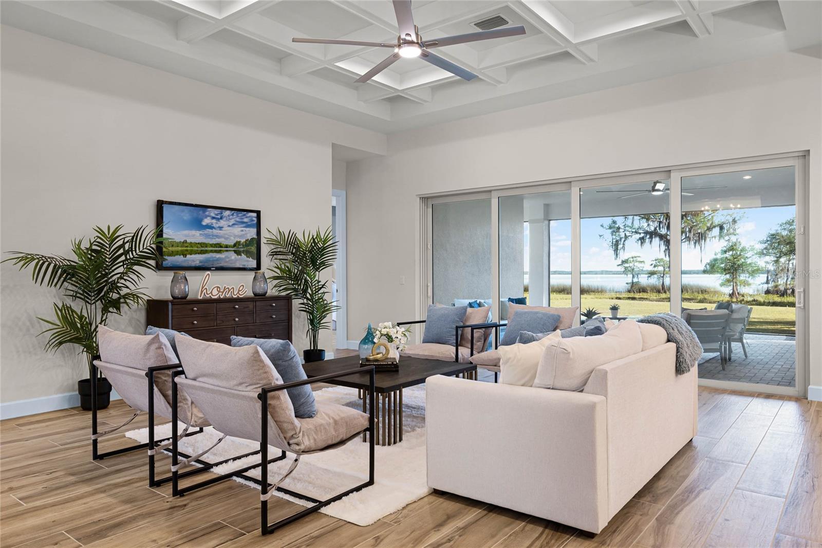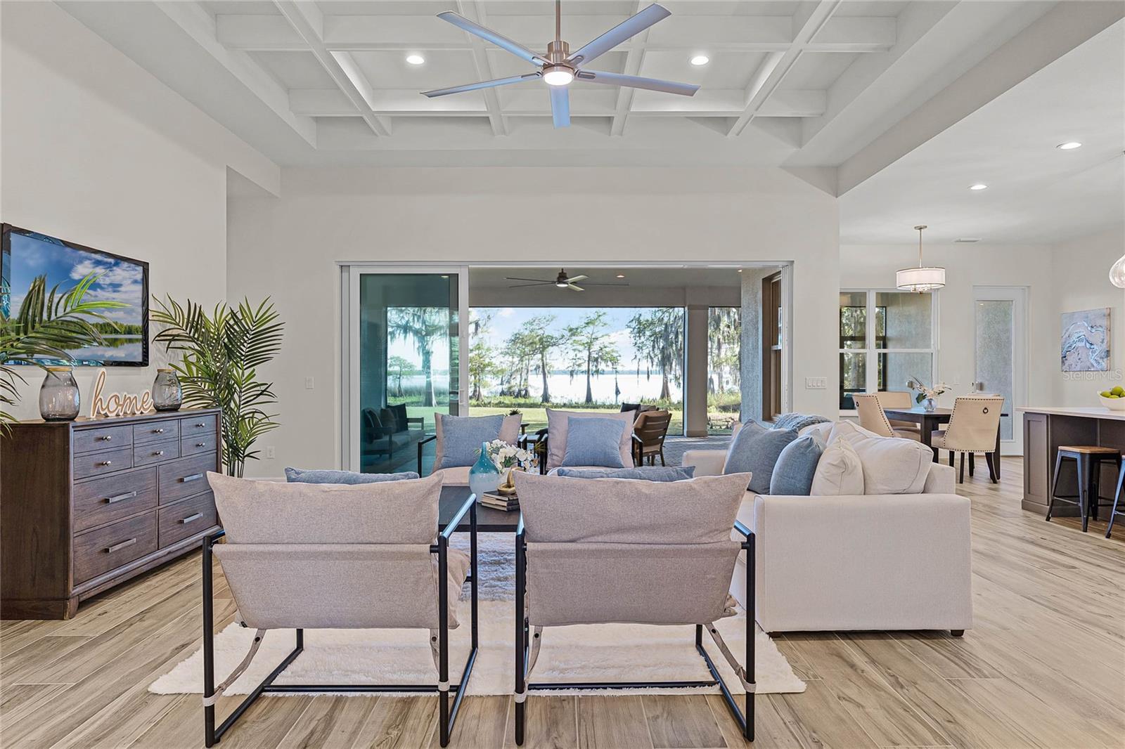 Experience the best of Florida living at 1475 Warrior Trail! Springs! ** BUYER PERK: LENDER CREDIT towards closing cost or rate buy-down available. Ask for details.** This stunning new home seamlessly combines luxury and comfort in the heart of Enterprise, Florida. Enjoy a breathtaking southern view of Lake Monroe, where you can watch the spectacular Sanford 4th of July fireworks and the thrilling Sanford Air Show. This beautiful 4-bedroom, 3-bathroom home includes a spacious fourth bedroom with a private full bathroom, offering privacy and convenience. One of the rare homes in the neighborhood with an uninterrupted southern view of Lake Monroe and Sanford, you’ll be treated to picturesque sunsets and serene lake views all year round. Step inside to an open and airy floor plan filled with modern elegance. The home features a formal dining room, a large great room with quadruple sliding glass doors, and a versatile office/flex space—perfect for any need. The tall ceilings and exquisite architectural details, like coffered ceilings in the office, great room, and primary bedroom, elevate the home's appeal. Nearly every room offers sweeping views of the outdoors, allowing the natural beauty to become part of your living space. The heart of this home is the gourmet kitchen, complete with stainless steel appliances, a striking tile backsplash, a large island perfect for entertaining, and abundant storage. The luxury primary bathroom is designed as a spa retreat, with elegant finishes and a spacious walk-in shower. Each of the four bedrooms has walk-in closets, ensuring plenty of storage space and comfort. Step outside to the expansive brick-paver lanai, perfect for hosting friends and family or enjoying peaceful moments alone. The backyard offers unobstructed views, ideal for summer BBQs or evening cocktails. The extended driveway and 3-car garage provide both convenience and curb appeal. Sitting on nearly 1 acre, this home offers the privacy and space you’ve sought. Stone Island Estates is a remarkable private community with unique amenities and exciting events, including a dog show, barn dance, Easter egg hunt, 4th of July parade, golf cart races, Halloween party, ladies' spring luncheon, and Santa in the park. Enjoy direct access to Lake Monroe through the community boat ramp for boating, fishing, and endless waterfront enjoyment. Additional amenities include a community horse stable, riding arena, pastures, tennis and pickleball courts, community pavilion, firepit, playground & more. With 120 feet of lakefront, this home offers unparalleled views of Lake Monroe and waterfront living. The home is also energy-efficient with dual AC units—a 16 SEER 3-ton unit for the main home and a 14.5 SEER 2-ton unit dedicated to the master suite and office. All this gorgeous home needs is you! Experience the pinnacle of Florida living at 1475 Warrior Trail.