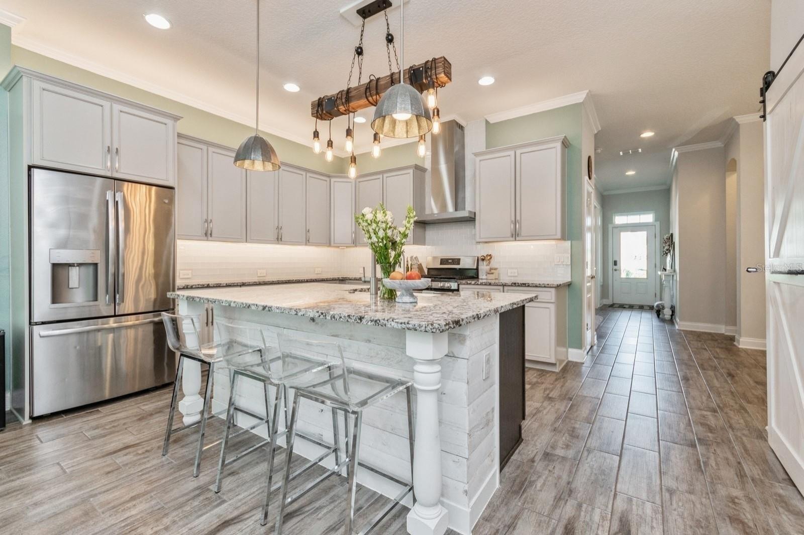 This stunning 5-bedroom, 4-bathroom single-family home is located in the highly desirable Oakland Park community, offering resort-style amenities such as a clubhouse, zero-entry pool, community firepit, and fireplace. Situated in the heart of Winter Garden, this home is part of the popular golf-cart area, making it easy to explore the surrounding neighborhood. It's just a short distance from downtown Winter Garden, where you can enjoy a vibrant farmers market, a variety of restaurants, and exciting community events, along with access to the historic West Orange Trail. With 3,084 sqft of living space, this home features an open layout with high ceilings and abundant natural light throughout the first floor. Upgraded finishes include granite countertops, stainless steel appliances, under cabinet lighting, lower level shelf lighting, and a gas stove. The luxurious primary bedroom suite offers dual sinks, a jetted tub, a walk-in shower, and a spacious walk-in closet. Upstairs, a massive open-air loft space is perfect for entertaining guests. Additional features include a full water filtration system, a tankless hot water heater, and thoughtful upgrades like a screened-in back lanai and added privacy doors for the front office. The Oakland Park community is one of the most sought-after in the area, making this an incredible opportunity to own a beautiful home in a prime location.
