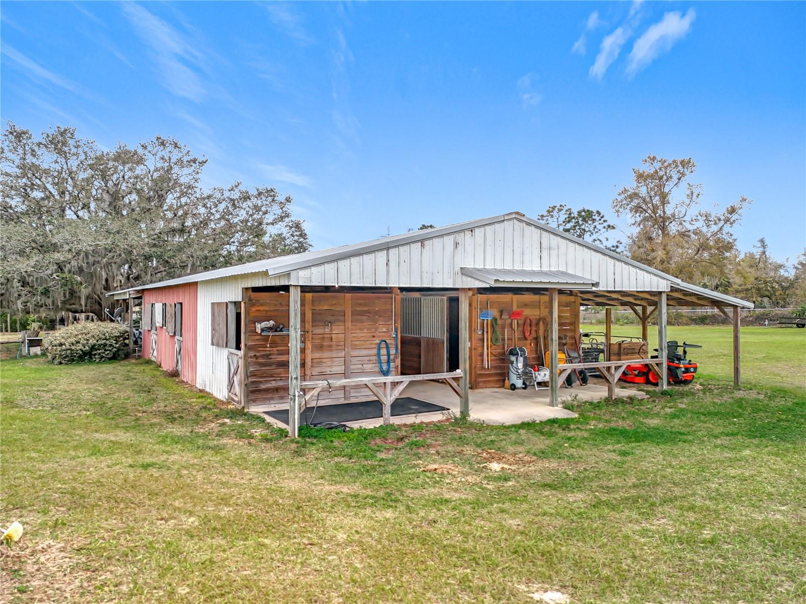PRICED TO SELL! This estate can be divided into four 5 ACRE LOTS for a family compound if needed. Nestled on 22.5 picturesque acres, 41204 Emeralda Island Rd is a dream property for horse enthusiasts, trainers, or investors. The property boasts lush pastures and two separate entrances, offering endless possibilities for private use, an equine business, or sub-leasing. At the heart of the facility is a thoughtfully designed center-aisle barn featuring 8 spacious matted stalls, each with its own electrical outlet for fans or lights and a 40 Amp RV electrical connection. Flexible removable dividers allow for larger stalls or foaling stalls as needed. The barn also includes two wash racks/tack-up centers, cross ties, an oversized tack room/feed room, and a welcoming sitting area — perfect for relaxing after a day with the horses. A separate, oversized, cleared and fenced pasture is located off of of the secondary entrance already equipped with a lean-to, run-in stall, perfect for easy sub-lease conversion OR quarantine stalling for new equine additions. While value is in the land, the manufactured home (30 year metal roof) on site provides established well, septic, electric, and associated impact fees paid. Located just one hour from the World Equestrian Center (WEC), this versatile property combines functionality, comfort, and prime location — ready to bring your equestrian vision to life.