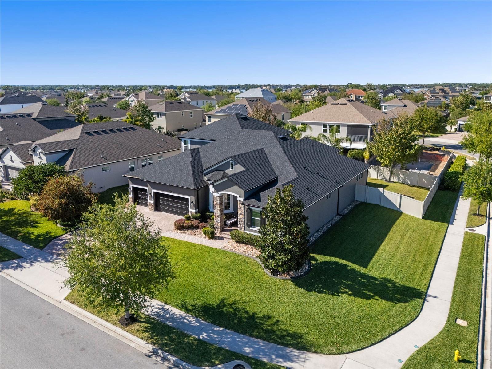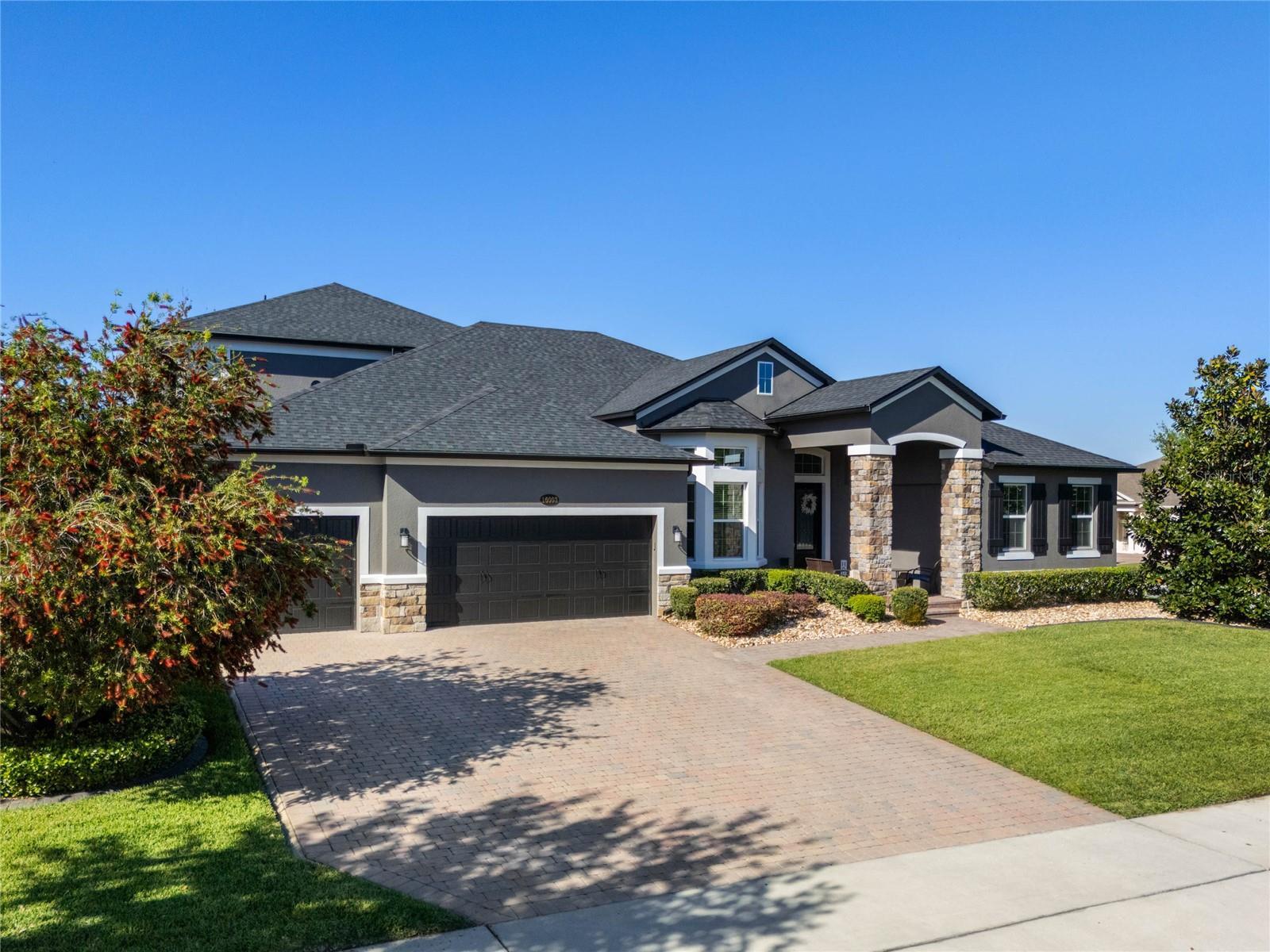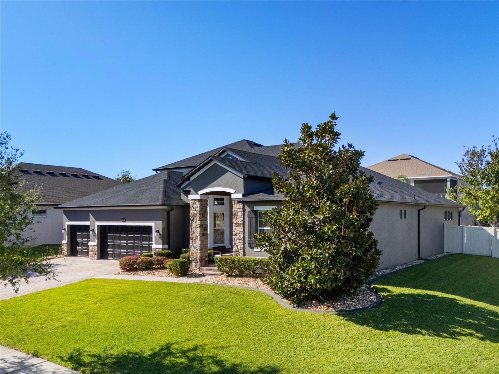 Under contract-accepting backup offers. *OPPORTUNITY: Seller will contribute $31,912.50 towards the Buyers closing costs plus $31,912.50 towards a Buy Down on the Interest Rate with Sellers prefered lender with an acceptable offer.* Your dream home awaits! This expansive five-bedroom, four-and-a-half-bathroom residence is situated on a spacious corner lot with over a quarter acre (0.31 acres), conveniently located just across the street from the amenity center and a short distance from a picturesque trail that leads to stunning views of Johns Lake. The home boasts impressive curb appeal, featuring a manicured lawn, paver driveway, stone accents, paver walkway and a covered patio that welcomes you to an etched glass front door. Upon entering, you will be greeted by soaring ceilings, elegant archways, and an abundance of natural light. The formal living room is enhanced by a captivating bay window. The formal dining area is highlighted by a modern light fixture. On the opposite side is a private bedroom with ensuite bathroom that could also make a great place for a home office or den. The modern eat-in kitchen is a chef’s delight, equipped with a stainless-steel built-in oven, a flat cooktop range, 42" cabinetry, sleek Silestone countertops, a decorative backsplash, deep farmhouse sink, pantry, and a breakfast bar adorned with striking pendant lighting. Unwind in the family room that is just off the kitchen, featuring an oversized sliding glass door that provides easy access to the outdoor space. The primary suite serves as a tranquil retreat, complete with a tray ceiling, a walk-in closet, and an ensuite bathroom offering dual sinks, a generously sized shower with a rain head, and a separate garden tub to soak away daily stress. The first floor also includes three additional well-sized bedrooms and a laundry room equipped with a utility sink. Ascend to the second floor to discover a large bonus room with a tray ceiling, presenting numerous possibilities for a game room or media area. A private fifth bedroom and a full bathroom are also located on this level. Step outside through the expansive sliding doors from the family room to the covered patio and screened-in paver patio, or bask in the sunshine in the backyard, enclosed by a vinyl privacy fence. For added convenience when entertaining, the patio features access to a cabana bathroom. Let’s not overlook the three-car garage, which provides ample space for your vehicles and additional storage. This residence is situated within the gated community of Hickory Hammock, which offers an array of amenities including a resort-style community pool, tennis courts, fitness center, clubhouse, playground, dog park, and walking trails leading to a community pier with a seating area. Conveniently located near the 429 expressway, the FL turnpike, and Highway 50, ensuring proximity to a variety of dining, shopping, entertainment options, and renowned Central Florida theme parks. Don’t put your dreams on hold, make this home your s today!