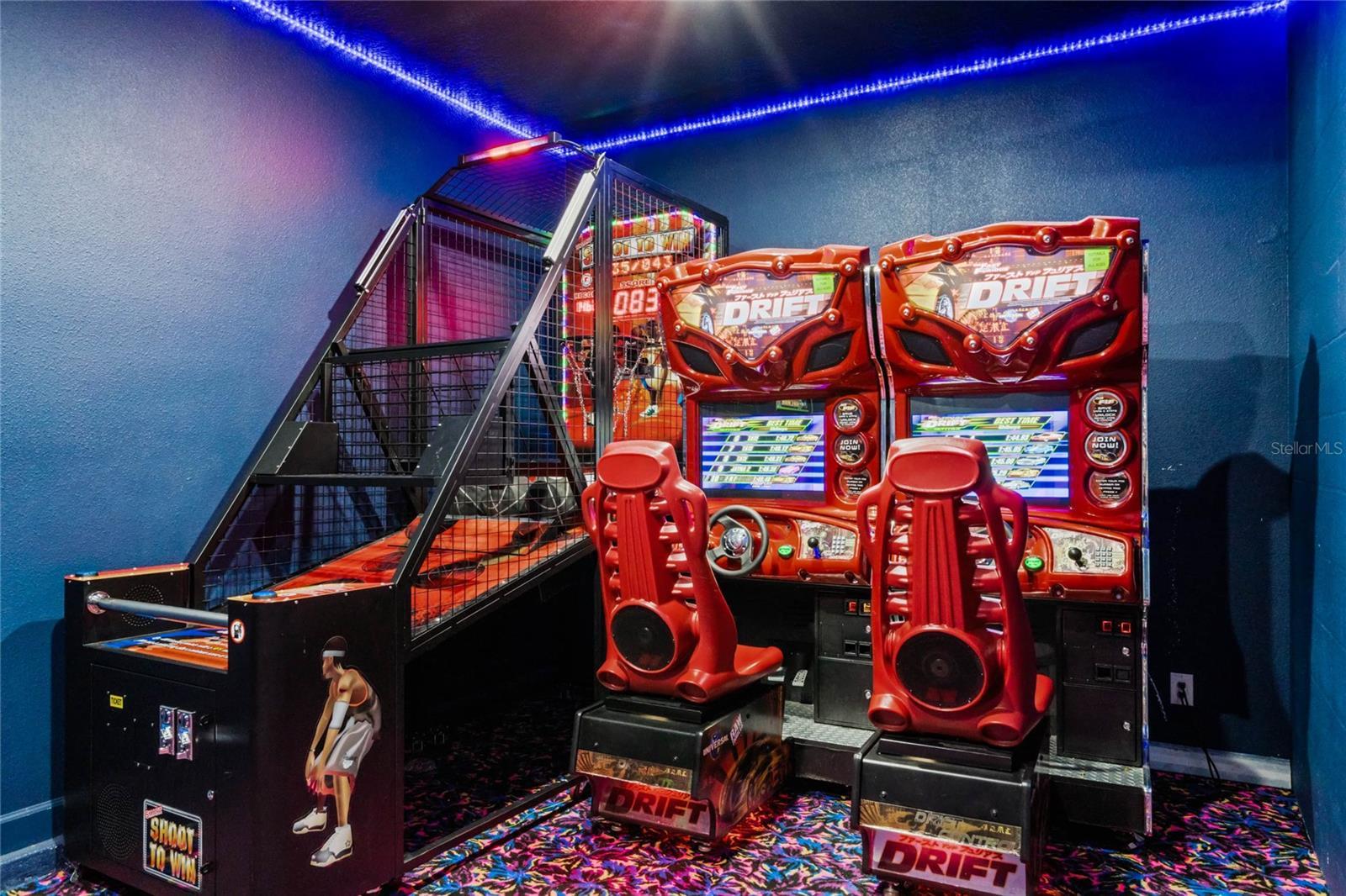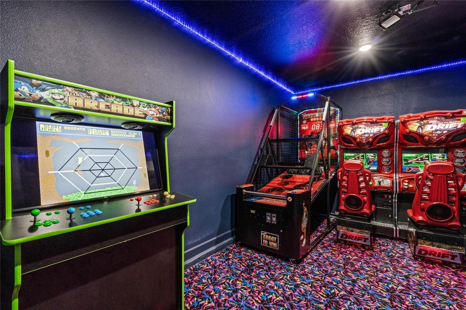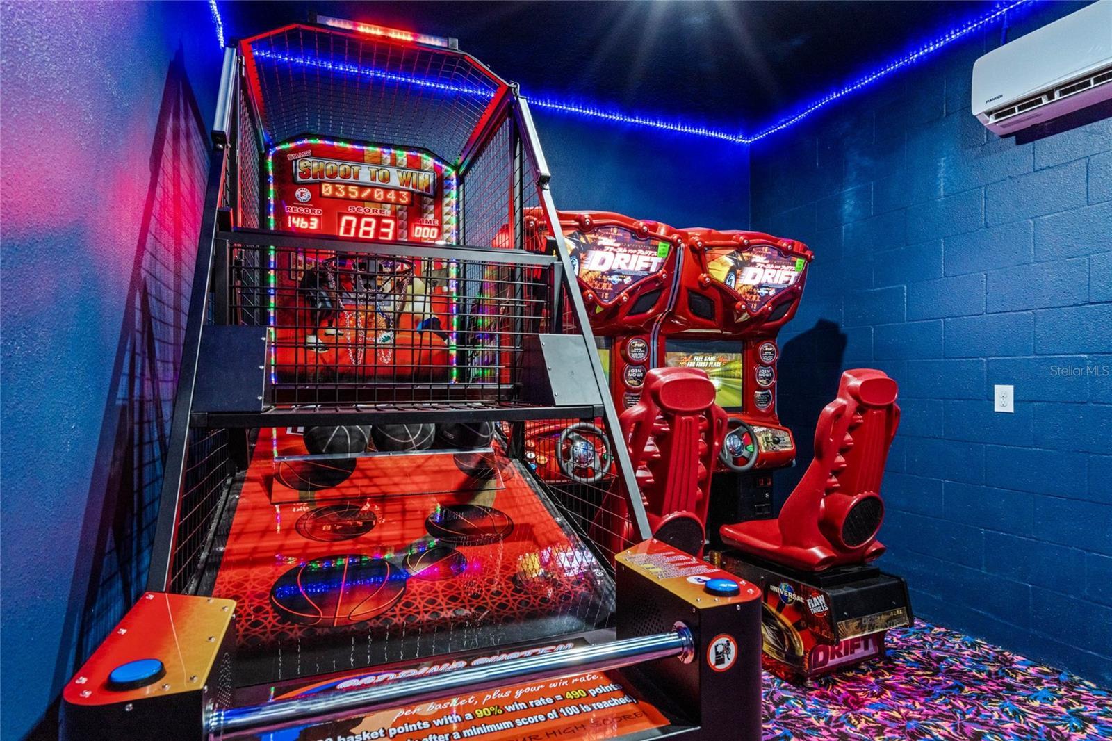 Turnkey Luxury Rental Near Disney – High-Income Producing Property! Welcome to a spectacular, fully optimized 6-bedroom, 5-bathroom luxury rental home in the sought-after Champions Gate Resort—just minutes from Disney! This income-generating property is meticulously maintained and expertly managed, making it a standout performer in the vacation rental market with exceptional gross bookings. Designed for both comfort and entertainment, this home boasts multiple themed rooms, including a high-end arcade-style garage conversion featuring: Two luxury racing games, Pop-a-shot basketball, Multi-racing machine, Blacklight-interactive arcade flooring, Mini-split HVAC unit for year-round comfort. Adding to its unique charm, a custom-built Willy Wonka-themed bunk room delights guests with a built-in slide, making it a favorite among families. Luxury upgrades abound throughout the home, including: High-end tile flooring in main areas, Gourmet kitchen with quartz countertops & stainless steel appliances, Professionally designed, fully furnished interiors. Champions Gate Resort offers unparalleled amenities, including: Multimillion-dollar clubhouse & resort-style pool Lazy river & air-conditioned indoor cabanas, Arcade & onsite movie theater, Champions Gate Country Club golf course, Poolside tiki bar & full-service restaurant, Fitness center, beach volleyball courts, & more. Located just 15 minutes from Disney Parks, this prime property is also close to top-rated restaurants, world-class theme parks, major highways, and premier shopping. Turnkey and hassle-free, the association handles exterior maintenance, ensuring effortless ownership. Whether you’re looking for a primary residence, vacation retreat, or high-performing investment, this rare, themed-out home is ready to generate revenue from day one—future bookings included! Don’t miss this extraordinary opportunity—schedule your private showing today!
