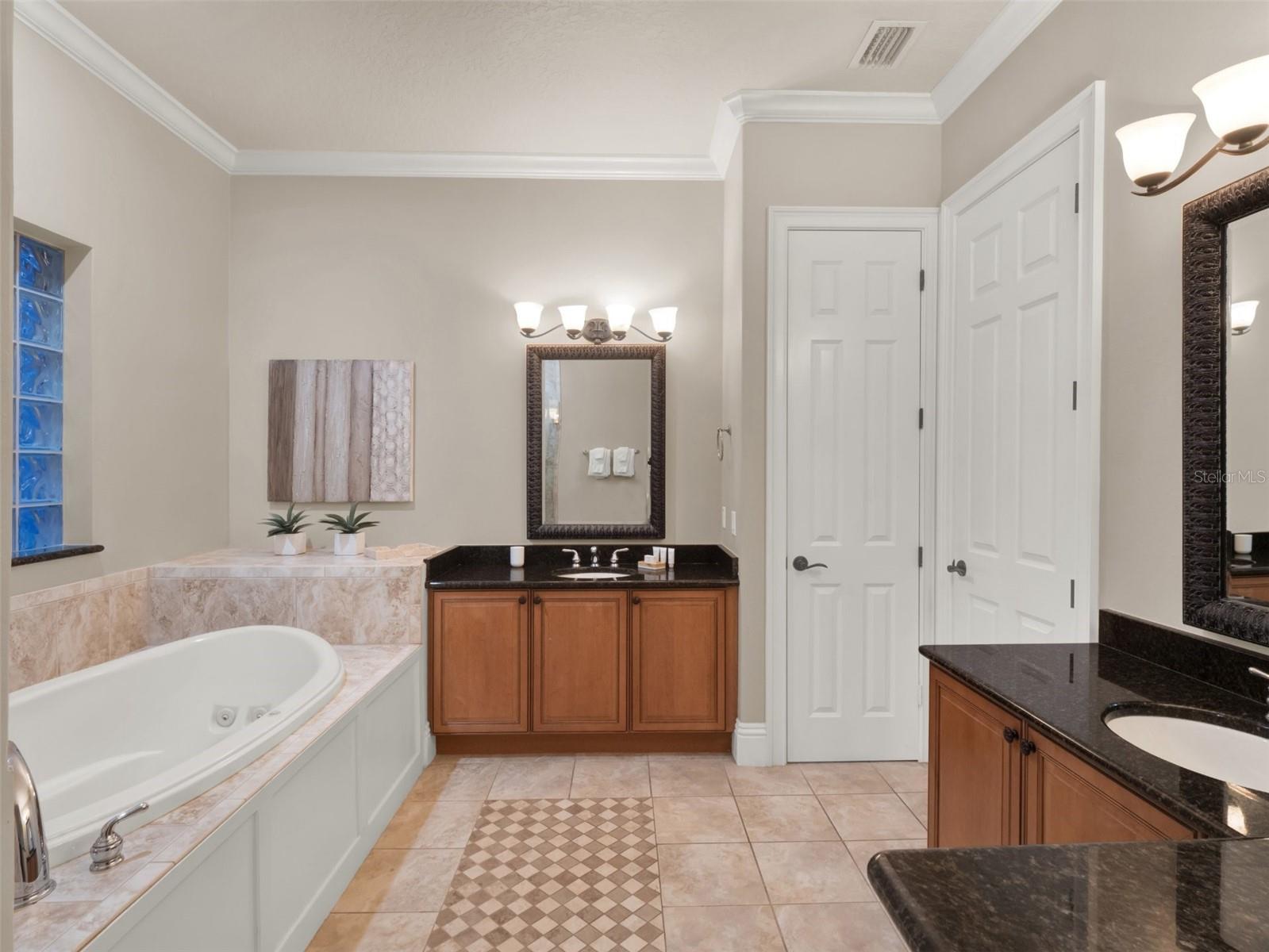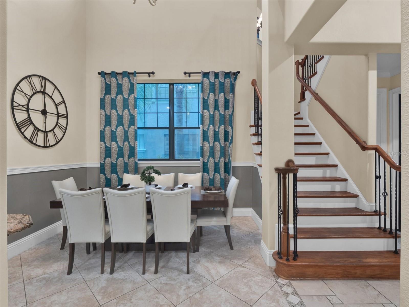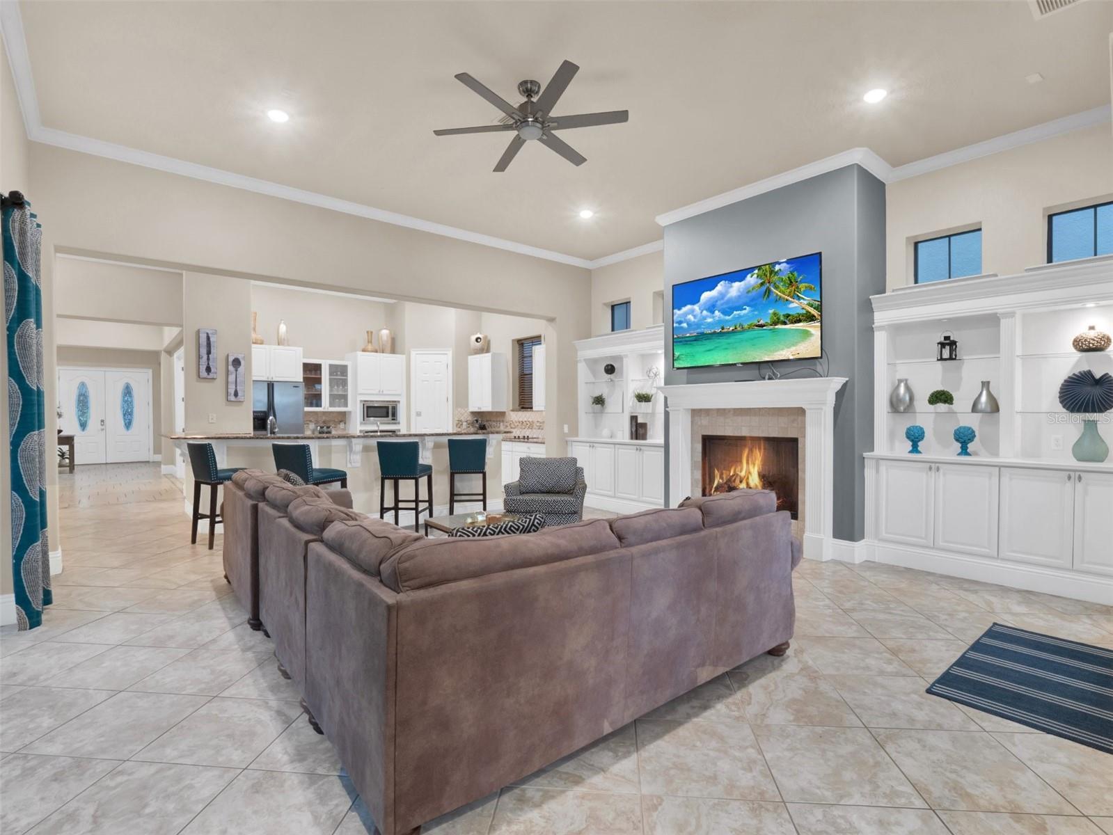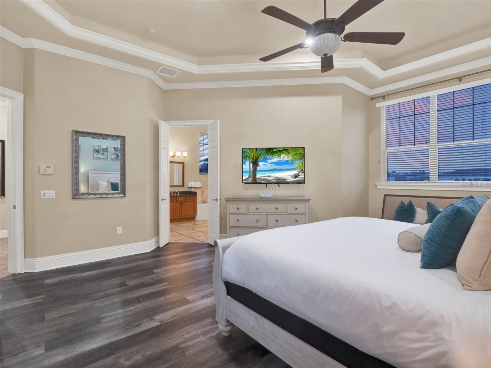 - Crown Molding, Eat-in Kitchen, High Ceilings, Kitchen/Family Room Combo, Open Floorplan, Primary Bedroom Main Floor, PrimaryBedroom Upstairs, Solid Wood Cabinets, Stone Counters, Walk-In Closet(s), Window Treatments