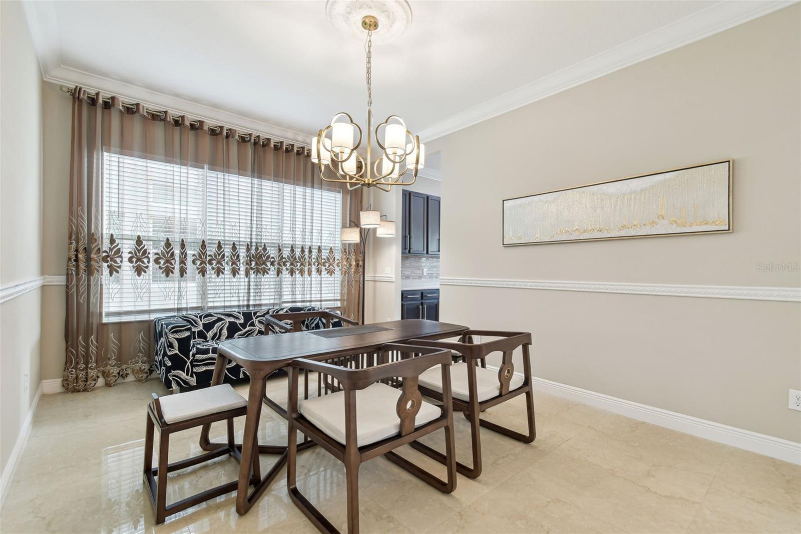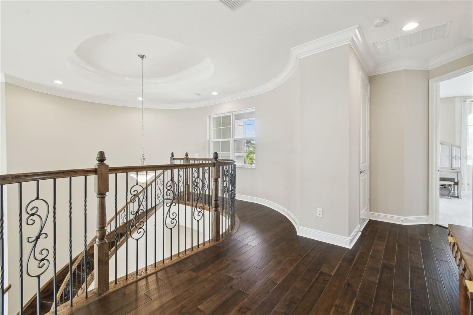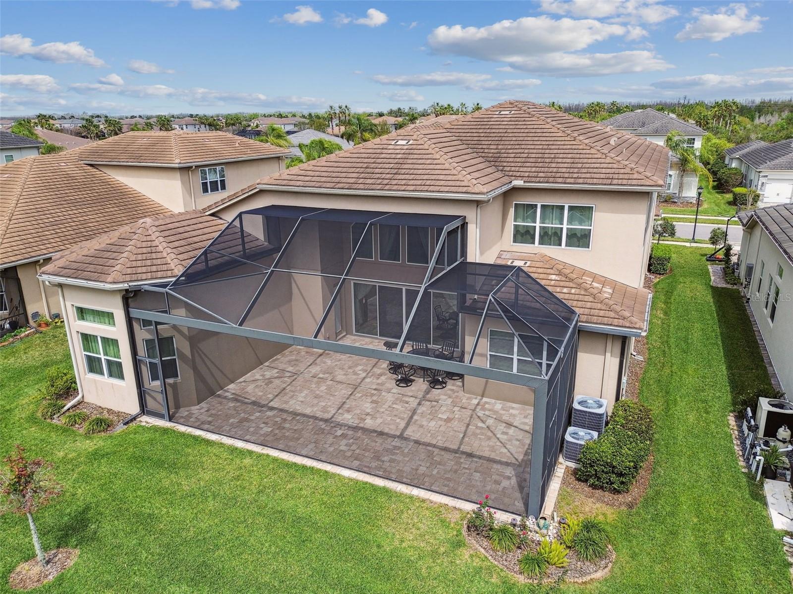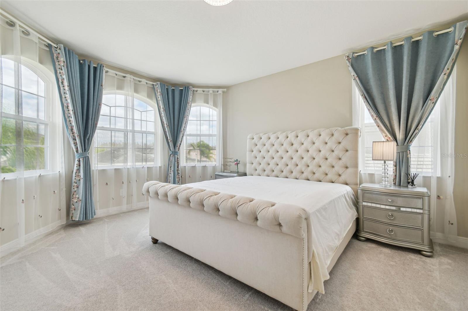 All furniture is included only with listing price. Nestled within the Estates at Wesley Chapel, a gated enclave just moments from the charm of downtown Wesley Chapel, this breathtaking home offers an unparalleled blend of luxury, privacy, and modern convenience. The property provides a serene retreat, perfect for both grand entertaining and everyday living. This 4,500 square feet of Luxurious Home boasts 5 bedrooms, 5.5 bathrooms, an office, a 3-car split garage, with a picturesque conservation view, all set on just over a quarter-acre lot. Upon arrival, the property immediately captivates with its refined curb appeal, highlighted by a distinguished tile roof and a welcoming circular paver way leading to the grand double front doors. Step inside to a breathtaking two-story foyer, setting a tone of grandeur with its soaring ceilings and an elegant winding wrought iron staircase. The open floor plan seamlessly flows into an expansive Great Room, showcasing stunning Spanish porcelain tile flooring, 22-foot ceilings, and an abundance of natural light streaming through expansive glass sliding doors and windows that connect to the outdoor oasis. The gourmet eat-in island kitchen, complemented by a formal dining room with a convenient pass-through, and a well-appointed wet bar situated between the great room and dining area, creates an ideal setting for hosting and entertaining. The main level also features a luxurious master suite, complete with large windows, a tray ceiling, and two custom-designed walk-in closets. The opulent master bath offers a tub with a separate shower and dual vanities. Ascending to the second level, you will discover three additional generously sized bedrooms, one of which boasts its own private en-suite bathroom and walk-in closet. Notably, one of the expansive upstairs bedrooms presents a versatile opportunity and can be easily utilized as a dedicated game room or additional recreational space, catering to various lifestyle needs. Upgrades including exquisite Spanish porcelain flooring, custom-built closets throughout , lighting fixtures, elegant crown molding, a screened backyard lanai with paver flooring, a water softener system, two kitchen osmosis systems, gutters, elegant window curtains, a Tesla charger, and much more. The Ridge offers luxury resort-style amenities, including: Beautiful Clubhouse, Catering Kitchen, Indoor Sports Complex, Game Room, Fitness Center, Resort-Style Pool with Beach Entry and Water Slide, Firepit, Tennis and Basketball Courts, Beach Volleyball. the HOA fee covering lawn mowing, irrigation, landscape maintenance, fertilization, yearly mulch. Shopping, restaurants, premium outlets, parks and several new medical centers are minutes away. Easy commute to downtown Tampa and Tampa International airport and Universities.