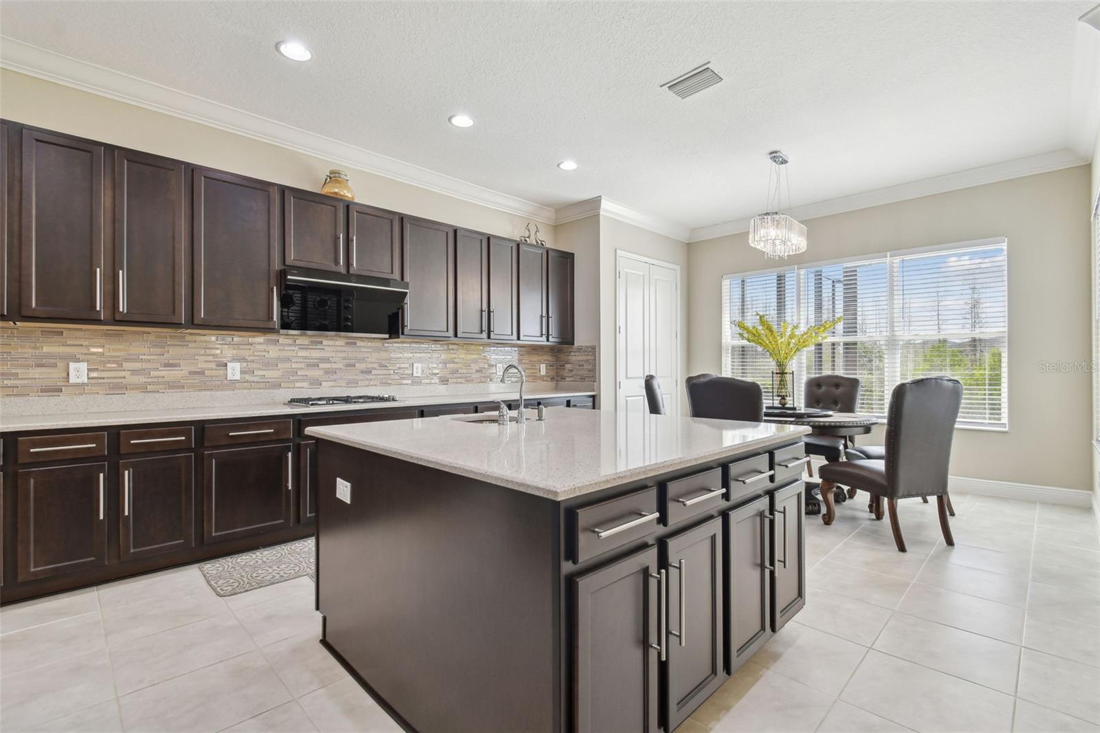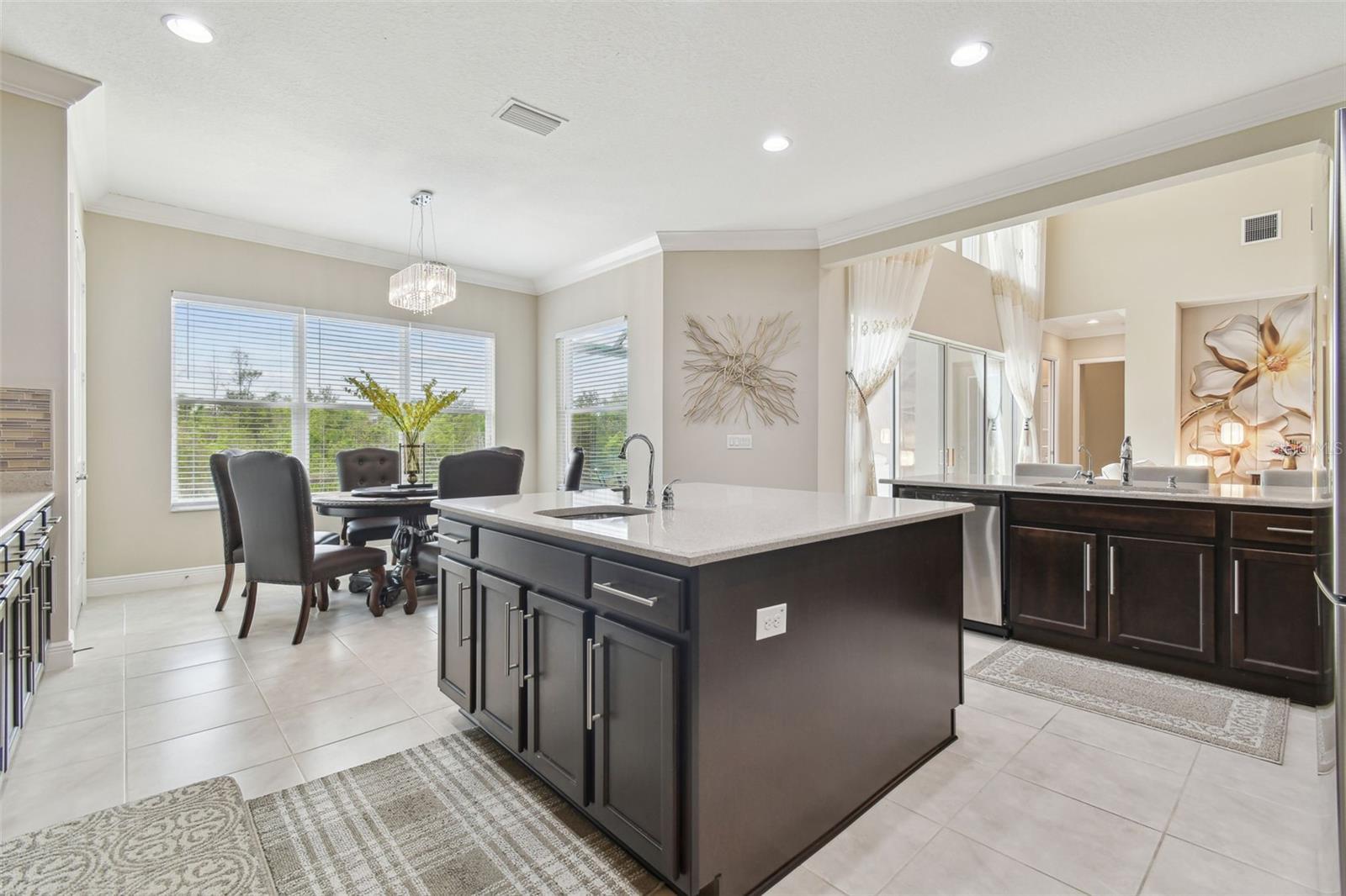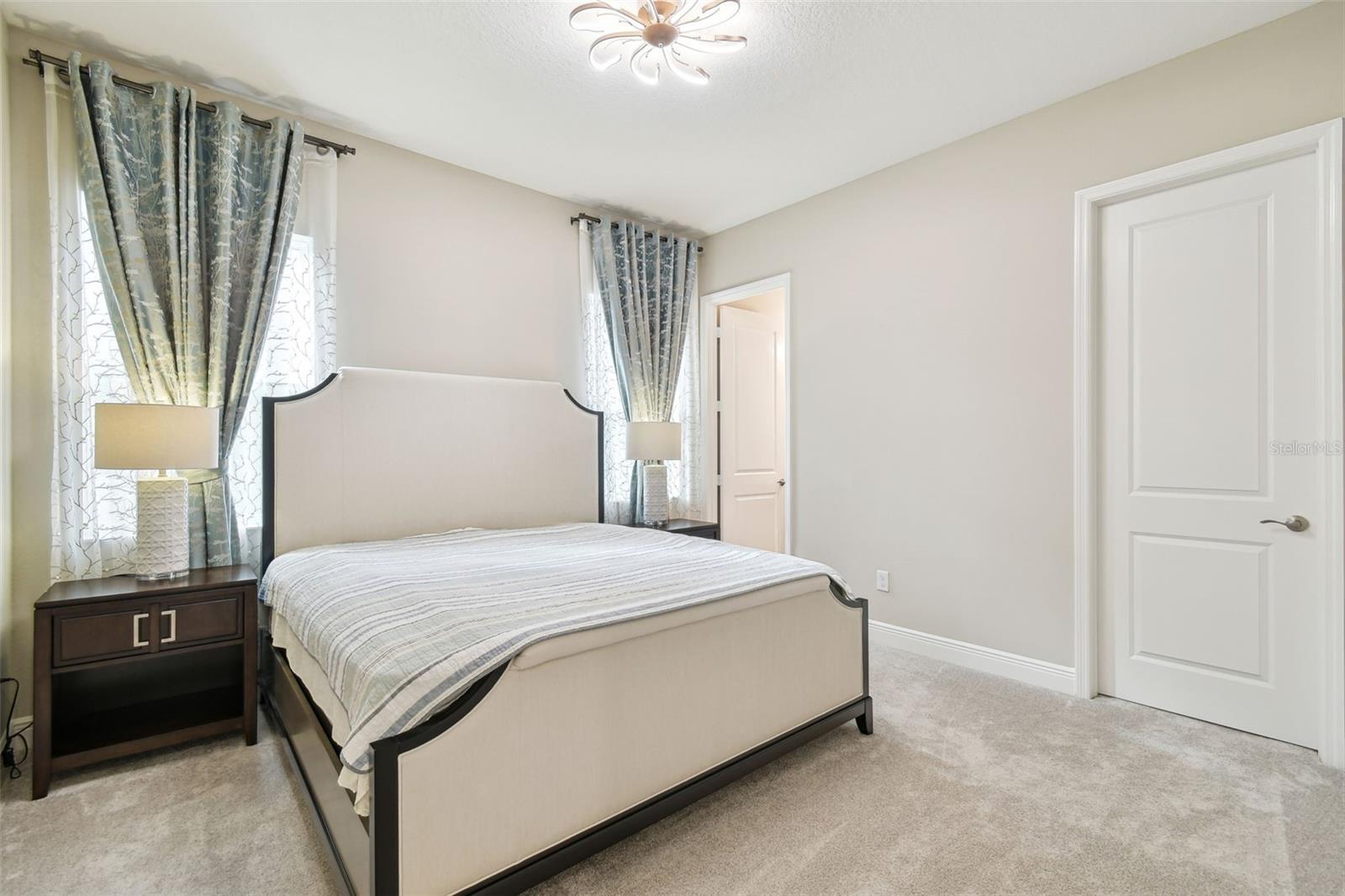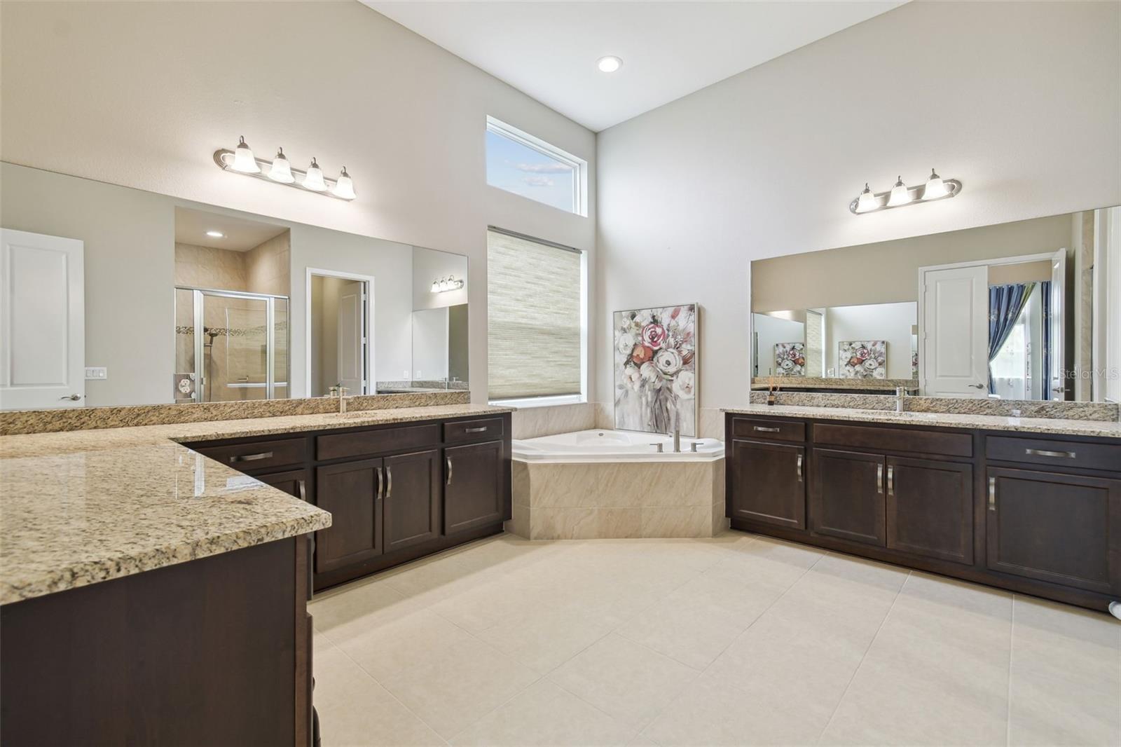 All furniture is included only with listing price. Nestled within the Estates at Wesley Chapel, a gated enclave just moments from the charm of downtown Wesley Chapel, this breathtaking home offers an unparalleled blend of luxury, privacy, and modern convenience. The property provides a serene retreat, perfect for both grand entertaining and everyday living. This 4,500 square feet of Luxurious Home boasts 5 bedrooms, 5.5 bathrooms, an office, a 3-car split garage, with a picturesque conservation view, all set on just over a quarter-acre lot. Upon arrival, the property immediately captivates with its refined curb appeal, highlighted by a distinguished tile roof and a welcoming circular paver way leading to the grand double front doors. Step inside to a breathtaking two-story foyer, setting a tone of grandeur with its soaring ceilings and an elegant winding wrought iron staircase. The open floor plan seamlessly flows into an expansive Great Room, showcasing stunning Spanish porcelain tile flooring, 22-foot ceilings, and an abundance of natural light streaming through expansive glass sliding doors and windows that connect to the outdoor oasis. The gourmet eat-in island kitchen, complemented by a formal dining room with a convenient pass-through, and a well-appointed wet bar situated between the great room and dining area, creates an ideal setting for hosting and entertaining. The main level also features a luxurious master suite, complete with large windows, a tray ceiling, and two custom-designed walk-in closets. The opulent master bath offers a tub with a separate shower and dual vanities. Ascending to the second level, you will discover three additional generously sized bedrooms, one of which boasts its own private en-suite bathroom and walk-in closet. Notably, one of the expansive upstairs bedrooms presents a versatile opportunity and can be easily utilized as a dedicated game room or additional recreational space, catering to various lifestyle needs. Upgrades including exquisite Spanish porcelain flooring, custom-built closets throughout , lighting fixtures, elegant crown molding, a screened backyard lanai with paver flooring, a water softener system, two kitchen osmosis systems, gutters, elegant window curtains, a Tesla charger, and much more. The Ridge offers luxury resort-style amenities, including: Beautiful Clubhouse, Catering Kitchen, Indoor Sports Complex, Game Room, Fitness Center, Resort-Style Pool with Beach Entry and Water Slide, Firepit, Tennis and Basketball Courts, Beach Volleyball. the HOA fee covering lawn mowing, irrigation, landscape maintenance, fertilization, yearly mulch. Shopping, restaurants, premium outlets, parks and several new medical centers are minutes away. Easy commute to downtown Tampa and Tampa International airport and Universities.