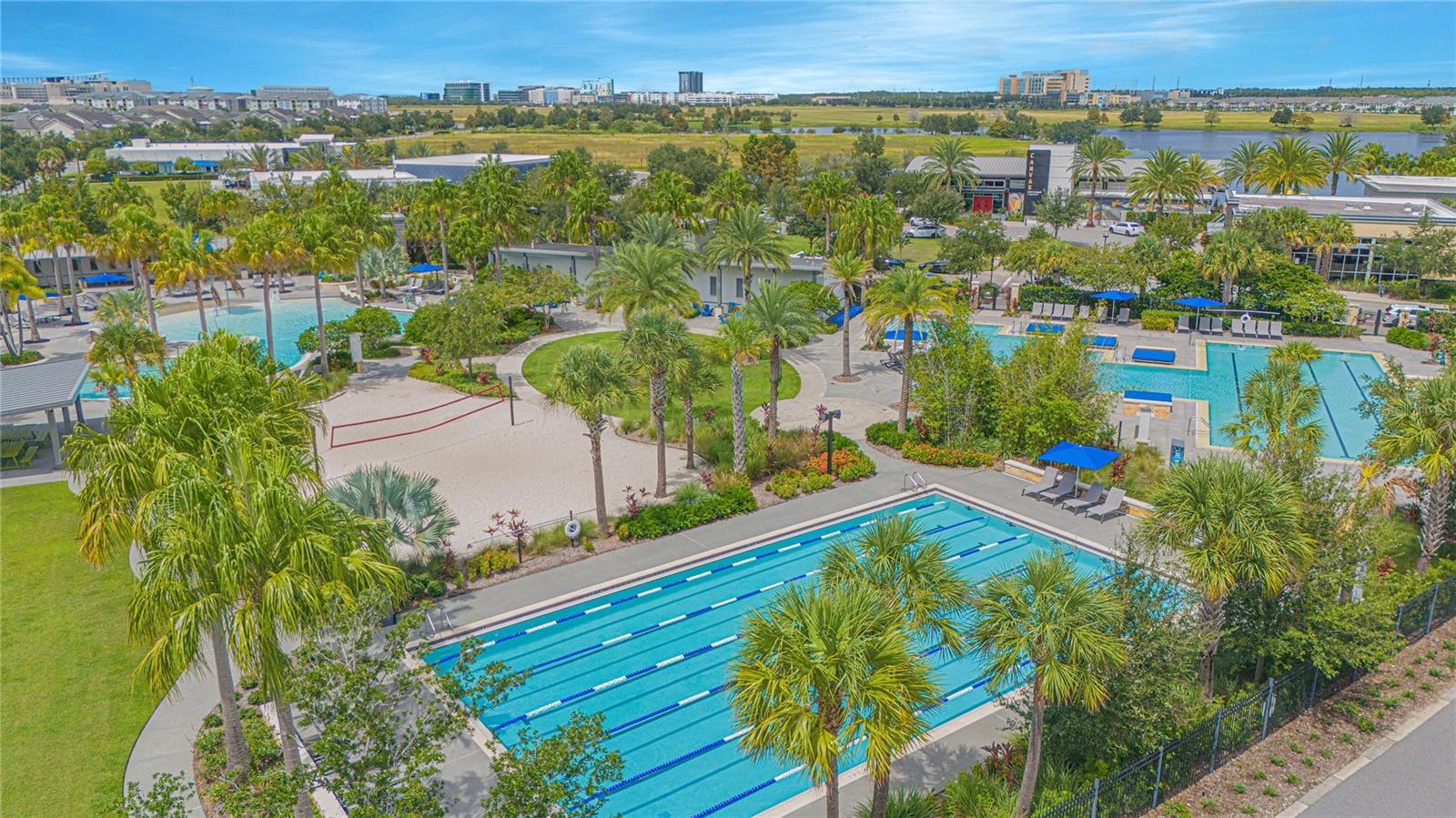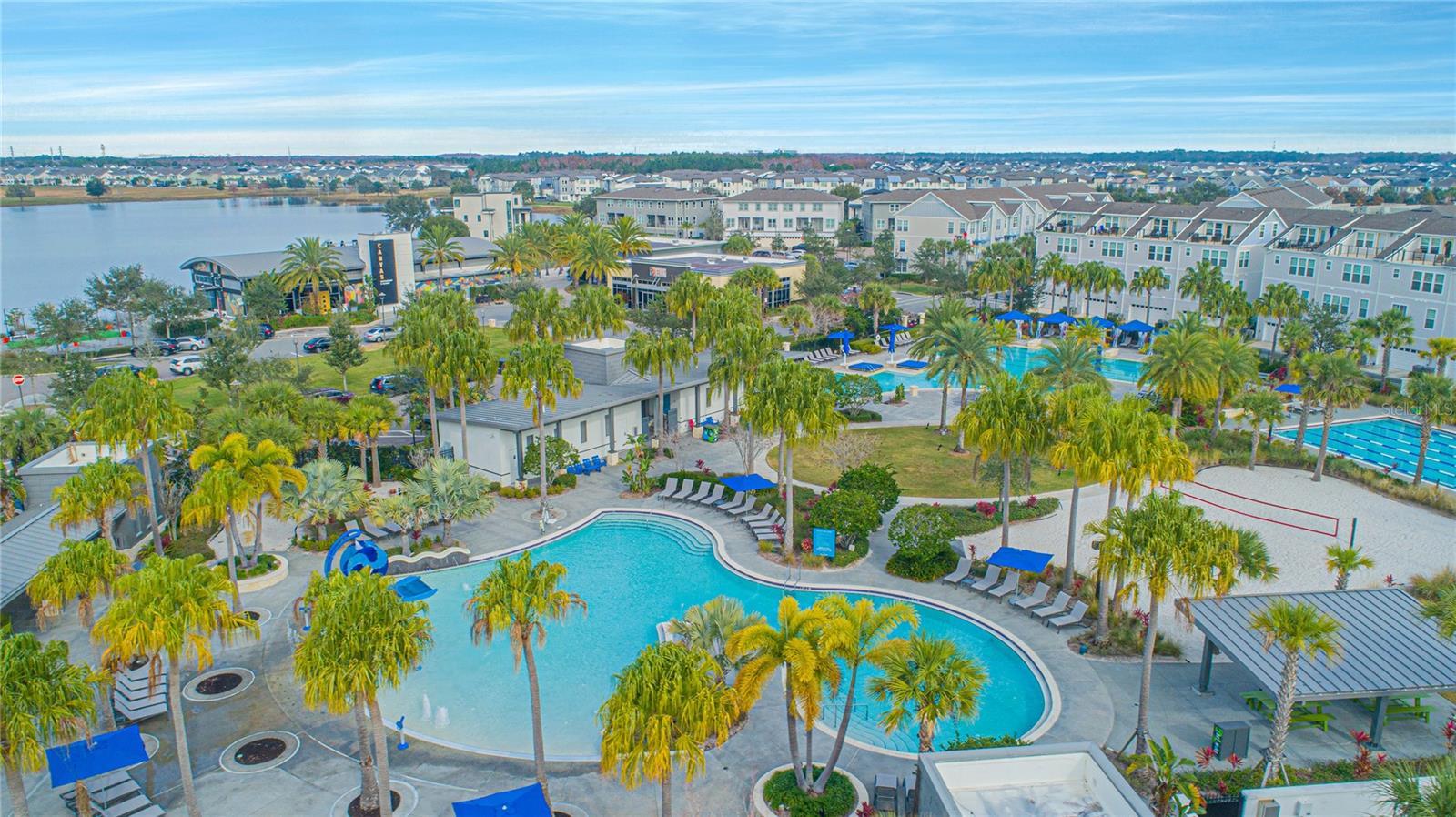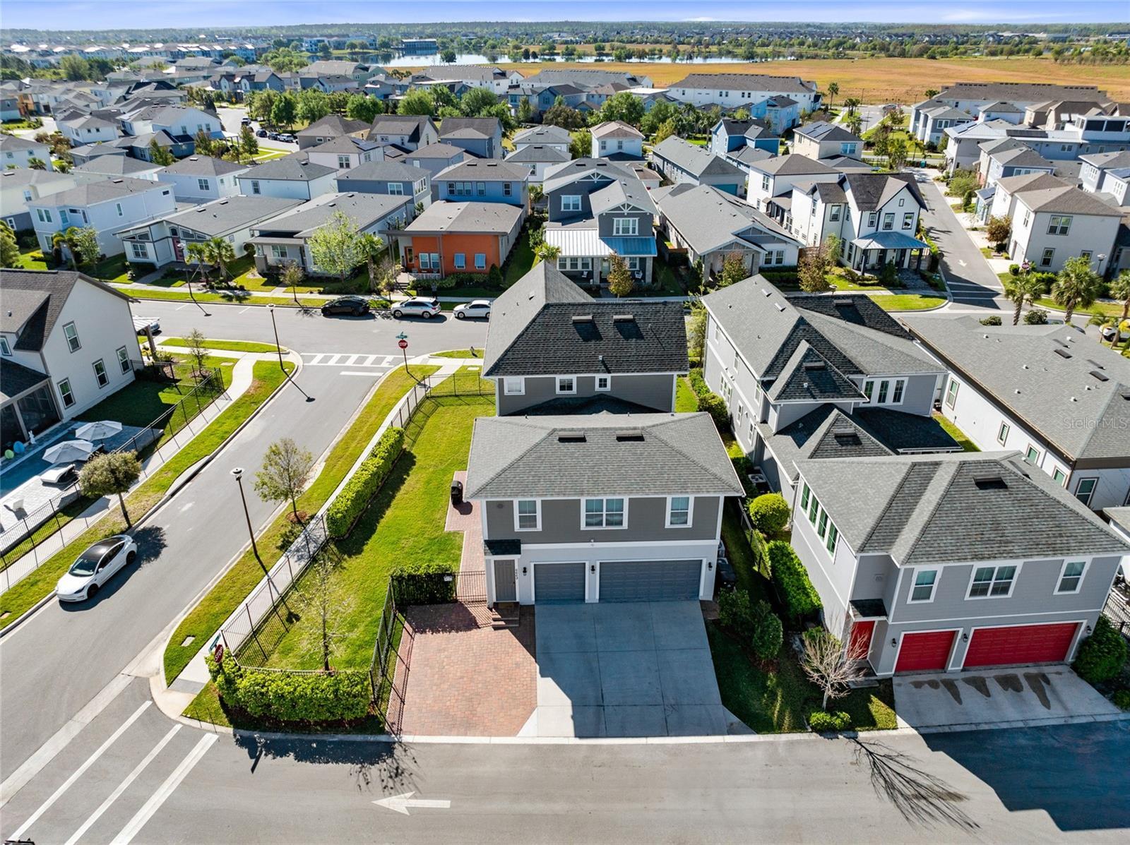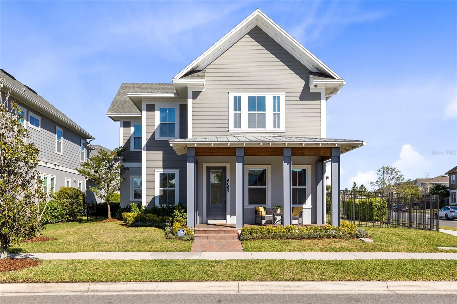 Experience modern elegance and unmatched flexibility in the heart of Laureate Park, Lake Nona. This standout property includes a private, detached garage apartment—complete with its own entrance, full kitchen, bathroom, and living space. Whether used as a rental, guest suite, or multigenerational setup, this bonus space adds major value and versatility. Situated on one of the largest corner lots in the community, the main home offers nearly 3,500 sq ft of designer living. A charming front porch with modern metal columns and wood beams welcomes you inside, where custom finishes shine—from the herringbone-tiled office to the open-concept kitchen, dining, and living areas. The gourmet kitchen features sleek cabinetry, premium appliances, and a quartz island built for gathering. The first-floor primary suite offers backyard views, a spa-style ensuite with an oversized shower, and a custom walk-in closet. Upstairs, three additional bedrooms, two full baths, and a private studio with a kitchenette and full bath offer even more flexible living options. Additional perks include an extended driveway for five vehicles, a custom drop zone, and a three-car garage. Laureate Park isn’t just a neighborhood—it’s a vibrant lifestyle. Enjoy the Aquatic Center, resort-style pools, LP Fit gym, and 44+ miles of trails. Minutes from Medical City, dining, shopping, major highways, MCO Airport, and the USTA National Campus. This home delivers luxury, location, and the rare bonus of income-generating potential. Schedule your private tour today!
