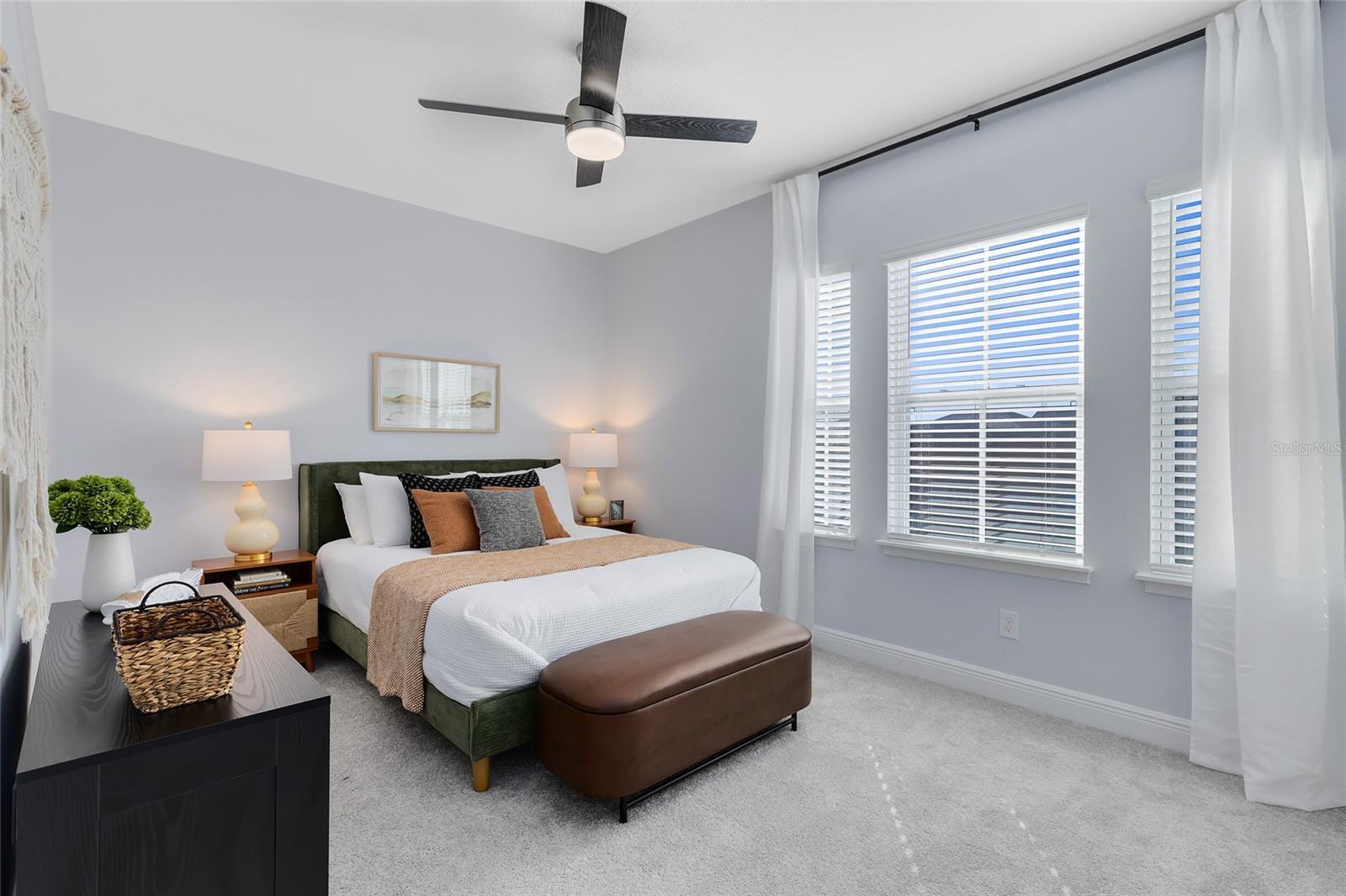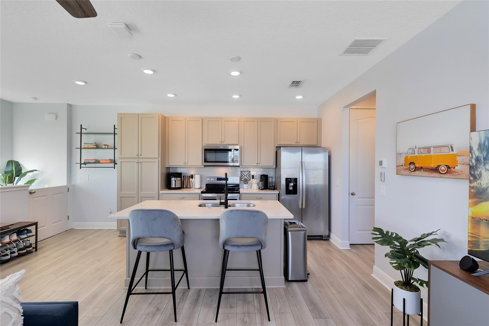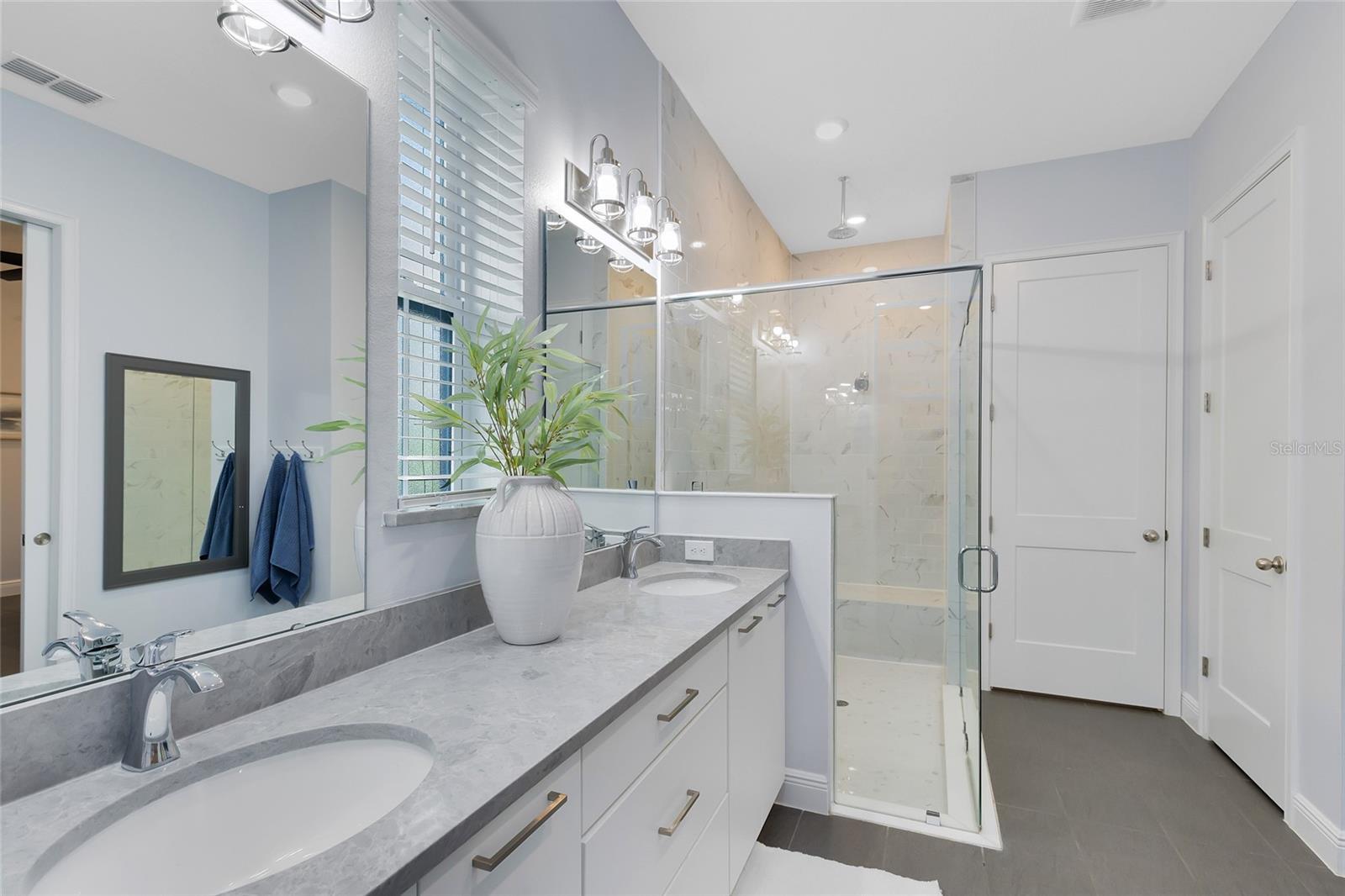 Experience modern elegance and unmatched flexibility in the heart of Laureate Park, Lake Nona. This standout property includes a private, detached garage apartment—complete with its own entrance, full kitchen, bathroom, and living space. Whether used as a rental, guest suite, or multigenerational setup, this bonus space adds major value and versatility. Situated on one of the largest corner lots in the community, the main home offers nearly 3,500 sq ft of designer living. A charming front porch with modern metal columns and wood beams welcomes you inside, where custom finishes shine—from the herringbone-tiled office to the open-concept kitchen, dining, and living areas. The gourmet kitchen features sleek cabinetry, premium appliances, and a quartz island built for gathering. The first-floor primary suite offers backyard views, a spa-style ensuite with an oversized shower, and a custom walk-in closet. Upstairs, three additional bedrooms, two full baths, and a private studio with a kitchenette and full bath offer even more flexible living options. Additional perks include an extended driveway for five vehicles, a custom drop zone, and a three-car garage. Laureate Park isn’t just a neighborhood—it’s a vibrant lifestyle. Enjoy the Aquatic Center, resort-style pools, LP Fit gym, and 44+ miles of trails. Minutes from Medical City, dining, shopping, major highways, MCO Airport, and the USTA National Campus. This home delivers luxury, location, and the rare bonus of income-generating potential. Schedule your private tour today!