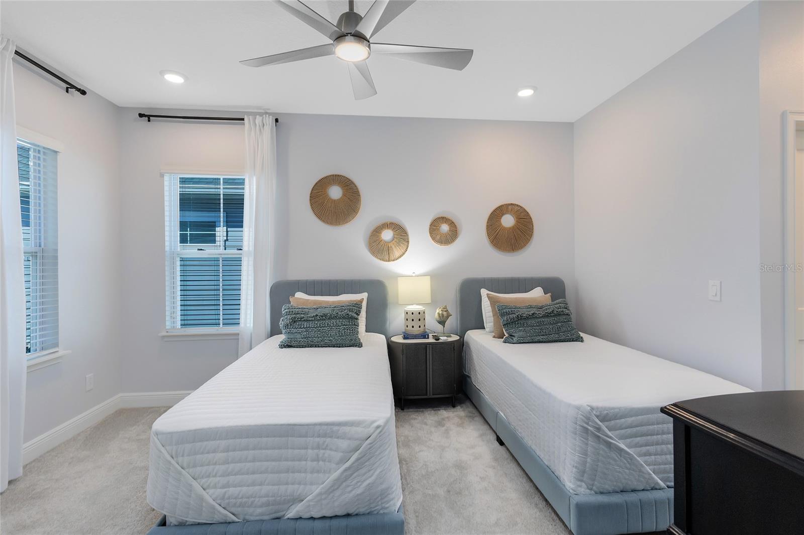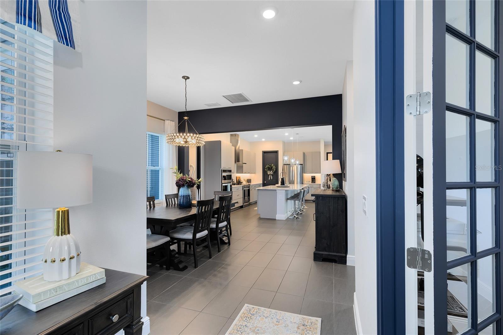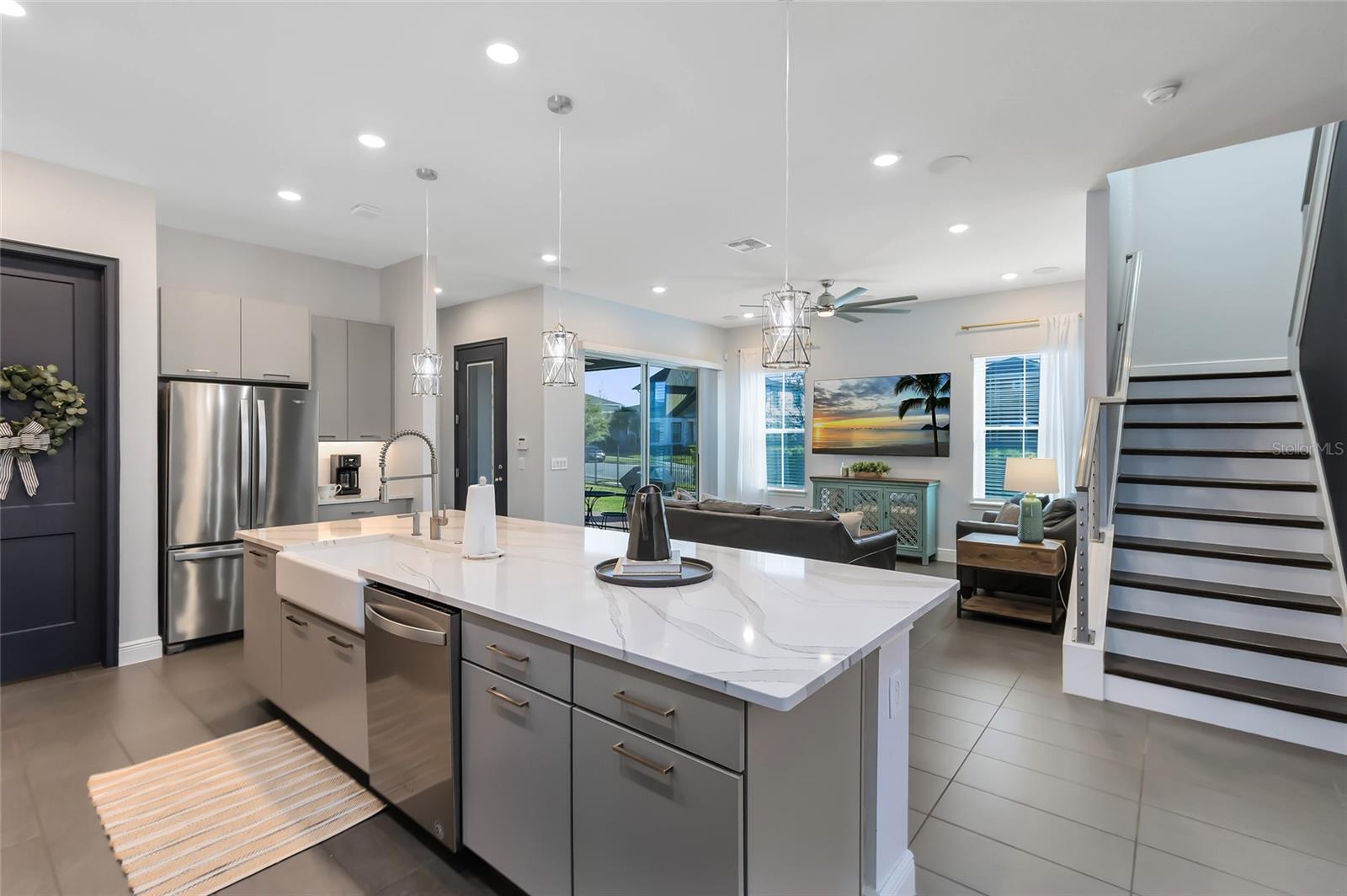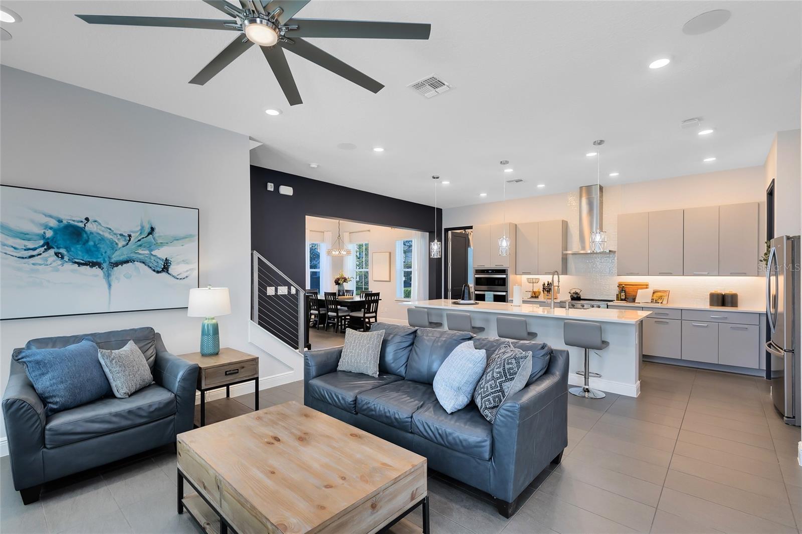 Experience modern elegance and unmatched flexibility in the heart of Laureate Park, Lake Nona. This standout property includes a private, detached garage apartment—complete with its own entrance, full kitchen, bathroom, and living space. Whether used as a rental, guest suite, or multigenerational setup, this bonus space adds major value and versatility. Situated on one of the largest corner lots in the community, the main home offers nearly 3,500 sq ft of designer living. A charming front porch with modern metal columns and wood beams welcomes you inside, where custom finishes shine—from the herringbone-tiled office to the open-concept kitchen, dining, and living areas. The gourmet kitchen features sleek cabinetry, premium appliances, and a quartz island built for gathering. The first-floor primary suite offers backyard views, a spa-style ensuite with an oversized shower, and a custom walk-in closet. Upstairs, three additional bedrooms, two full baths, and a private studio with a kitchenette and full bath offer even more flexible living options. Additional perks include an extended driveway for five vehicles, a custom drop zone, and a three-car garage. Laureate Park isn’t just a neighborhood—it’s a vibrant lifestyle. Enjoy the Aquatic Center, resort-style pools, LP Fit gym, and 44+ miles of trails. Minutes from Medical City, dining, shopping, major highways, MCO Airport, and the USTA National Campus. This home delivers luxury, location, and the rare bonus of income-generating potential. Schedule your private tour today!