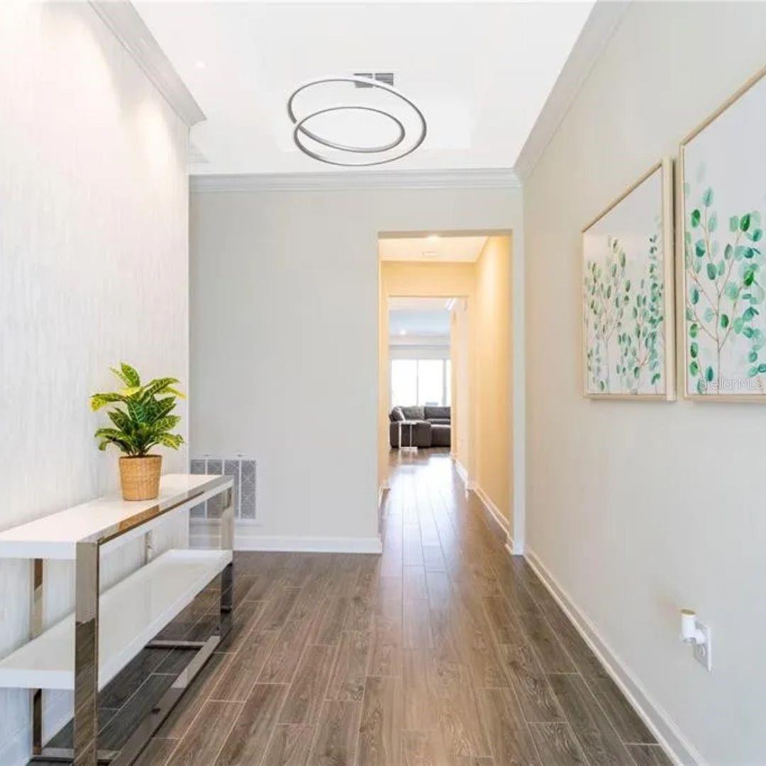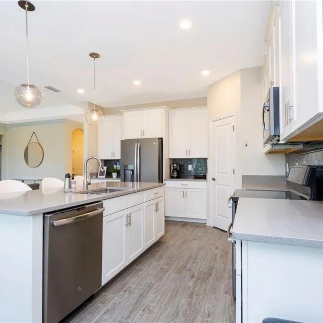 This stunning 4-bedroom, 3-bathroom home in Panther View offers the perfect blend of comfort and elegance. With an open-concept design, the space is filled with natural light, creating an inviting atmosphere for entertaining guests and making unforgettable family memories. The chef’s kitchen features quartz countertops, a stylish backsplash, stainless steel appliances, and 42-inch cabinets for plenty of storage. The spacious master bedroom includes a walk-in closet and a luxurious master bath with dual sinks, a soaking tub, and a separate shower. Prime location! Enjoy easy access to Walt Disney World, Universal Studios, Winter Garden Village, and more! At Innovation at Panther View Manors, nature, beauty, and community come together to create a truly unique lifestyle.