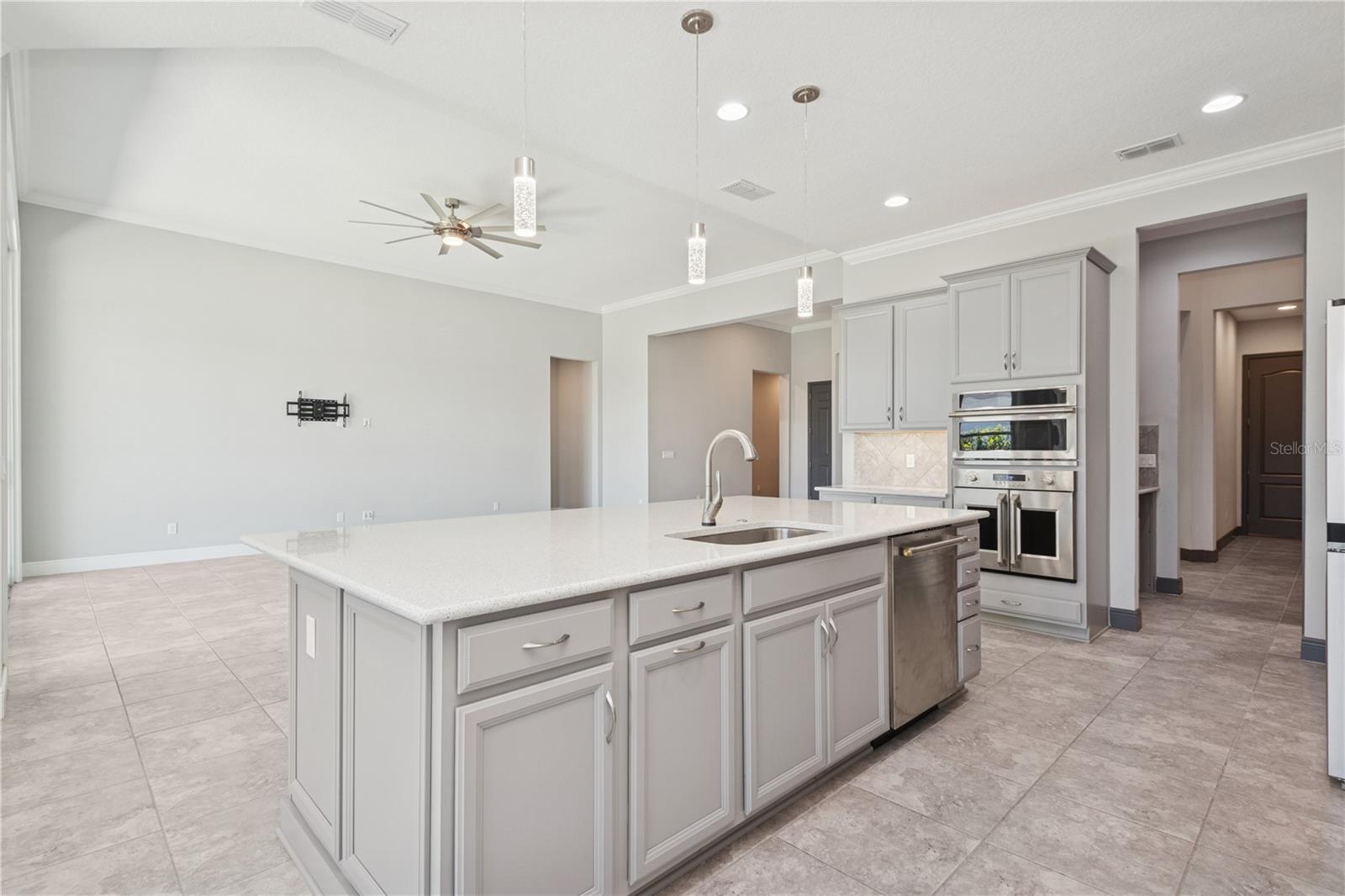 Stunning LAKEFRONT home on Lake Hancock! You'll love this SINGLE LEVEL home that has had only ONE OWNER. The owners paid attention to every detail on this home, from the EXTRA WIDE for comfort, to the DUAL WATER HEATERS in the home which ensure hot water is at the ready for everyone. You'll enter the home through a gorgeous brick pavered enclosed courtyard. Inside you'll find a formal dining area, a massive living area with high ceilings, and a stunning kitchen. When the owners first moved into this home, I took a brief video of this kitchen and it went viral with OVER 24 MILLION views--that's how gorgeous and loved this kitchen in. From QUARTZ counters to the French door oven and convection/microwave, counter depth fridge, and GAS cooktop, and the HUGE ISLAND, you'll fall in love with it too. The rooms are all spacious, and the primary suite was cleverly designed with closet spaces that also privately connect to the laundry room, another detail adding to the comfort of this home. You'll step outside through a triple slider door, onto your screened porch ready for your summer kitchen installation. Here's there's a retractable screen to keep any bugs out while you're enjoying your LAKE FRONTAGE. Would you like to build your own private boat dock? You can build a 12 1/2 ft wide dock and enjoy the lake life. You can fit it easily, since the home has garages for 3 cars. You'll find a double garage and a separate single garage. Just to add to this, you're in a great community with lots of amenities like community pool and clubhouse, community boat ramp, recreational facilities and more. View it today and enjoy the 3D interactive walkthrough online. <iframe width='853' height='480' src='https://my.matterport.com/show/?m=TFBLQJbBwep&mls=1' frameborder='0' allowfullscreen allow='xr-spatial-tracking'></iframe>