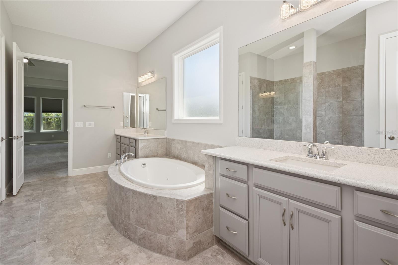 - Ceiling Fans(s), Eat-in Kitchen, Kitchen/Family Room Combo, Open Floorplan, Primary Bedroom Main Floor, Solid Surface Counters, Split Bedroom, Stone Counters, Window Treatments