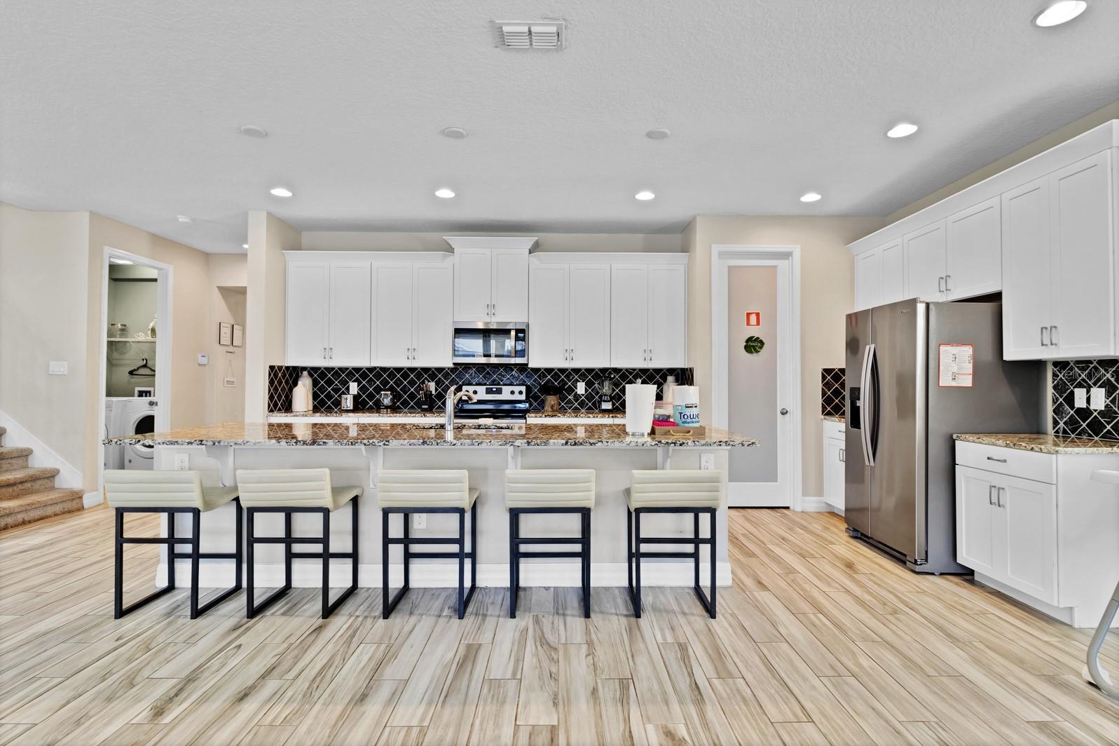 Seller will contribute $10,000 toward buyer’s closing costs or to buy down your interest rate! Turnkey Luxury Investment Home Just Steps from the Clubhouse in Solara Resort – Fully Furnished 9-Bedroom Model with Pool, Spa & Game Room... Now available is a rare opportunity to own a former model home in the exclusive, guard-gated Solara Resort—ideally located just steps from the clubhouse and world-class amenities. This beautifully appointed Naples II floor plan features 9 spacious bedrooms, 6.5 bathrooms, a large loft, a two-car garage, and comes fully furnished, making it a true turnkey investment. Meticulously maintained and still under builder warranty for another year, this home was previously a lease-back to Mattamy Homes and showcases over $100,000 in high-end upgrades. From the moment you walk in, you’ll be impressed by the open-concept layout, soaring ceilings, abundant natural light, and stylish design. The gourmet kitchen is a chef’s dream, featuring 42-inch cabinets, granite countertops, stainless steel appliances, and a large island with breakfast bar—perfect for casual meals and entertaining. The living and dining areas flow seamlessly onto a covered patio overlooking a private heated pool and spa, creating the perfect outdoor retreat for relaxation or hosting guests. The primary suite is conveniently located on the first floor and includes a walk-in closet and spa-like en-suite bath with dual vanities, soaking tub, and separate shower. Upstairs, themed bedrooms and a large loft with multiple big-screen TVs offer an immersive and fun-filled experience for guests, making this home highly desirable for short-term rentals. The garage has been transformed into a vibrant game room, further enhancing the home’s appeal on platforms like Airbnb and VRBO. With strong booking performance and an option for the seller to share future reservations, this is an investment opportunity you don’t want to miss. Located less than 15 minutes from Walt Disney World and with easy access to I-4, US-192, and US-27, the home offers unmatched convenience to Orlando’s top attractions, restaurants, and shopping destinations. The HOA includes internet, cable, landscaping, and access to one of Central Florida’s most impressive amenity centers. Solara Resort delivers the ultimate resort lifestyle, with a zero-entry pool, FlowRider surf simulator, water slides, poolside cabanas, bar and grill, on-site café, state-of-the-art fitness center, yoga lawn, splash zone, playground, marketplace, and sports courts for basketball, soccer, and volleyball. Whether you’re looking to generate passive income or create a luxurious family getaway, this property checks every box. With limited inventory and high demand in Solara Resort, opportunities like this are extremely rare. The motivated seller is open to offers and welcomes Realtor collaboration.