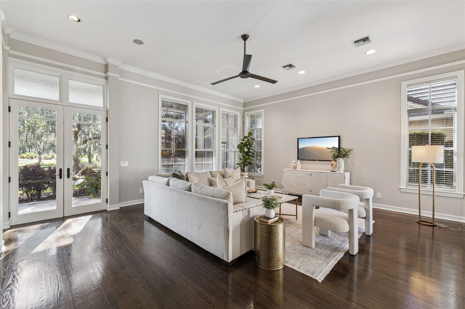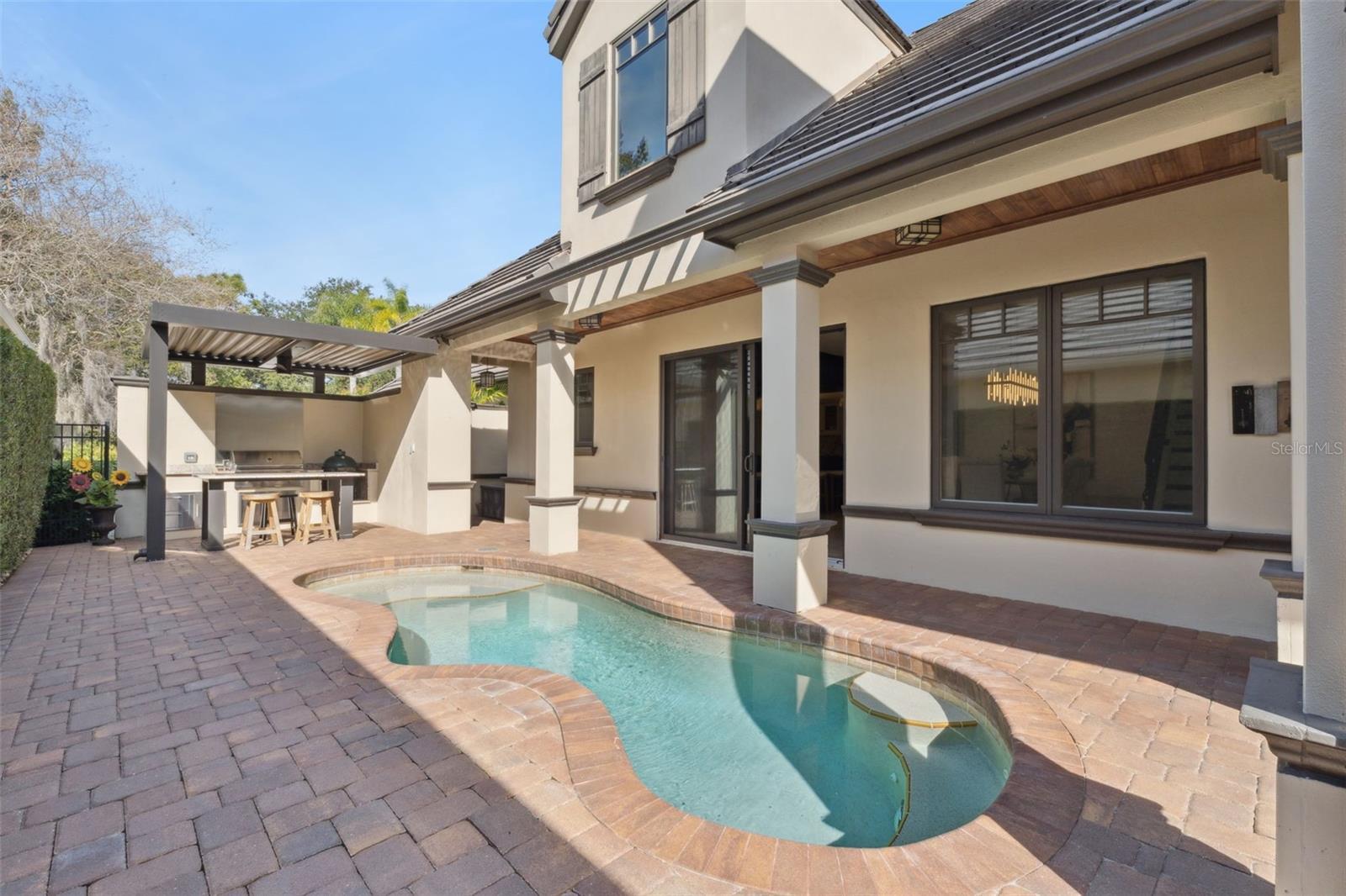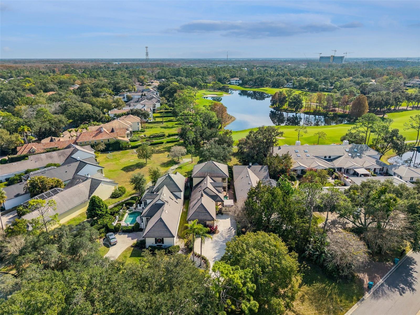 OWNER FINANCING AVAILABLE! Beautiful home in tranquil Lake Nona Estates. Exclusive, Gated Country Club living at its best! This home is on the 3rd hole...why watch golf on TV when you can watch professional golfers from your back patio! This courtyard home sits on almost a 1/2 acre of property and has 4 generously sized bedrooms - all ensuite! Two of the bedrooms can be main bedrooms so you can choose to be upstairs or downstairs! Ample walk-in closets, too! Upstairs has a total of 3 bedrooms and 2 bonus rooms - one is being used as a living area and one as a bar area. PLUS, TWO balconies overlooking the lush landscape and golf course. The gourmet kitchen is truly a one of a kind with lots of custom features including TWO copper sinks, TWO dishwashers, an additional smaller, copper sink perfect to fill with ice to store your drinks while entertaining, PLUS, a large wine fridge, built-in ice maker, and desk. The spacious living room is warm and inviting with a wall of built in bookcases to showcase all your family photos and provides access to both the courtyard and back lanai. The paver courtyard is ideal for indoor/outdoor living with a pool and new outdoor kitchen with motorized louvered roof. There is also an additional screened in lanai out back overlooking the spacious yard with brick paver patio in the shade of a large oak tree. NEW Upstairs A/C (2025), NEW Carpet (2026) Lake Nona Golf and Country Club offers private country club living...A premier club offering golf, tennis, pickleball, a fitness center, daycare, a restaurant, access to the lake via boat ramp with dock, boat storage, and more! You can choose between a Social or Golf Membership. A-rated schools, minutes to Orlando International Airport, Medical City, USTA National Campus, Lake Nona's many delicious restaurants, and so much more! Multiple, easy accesses to 417 and 528 to make your commute to Orlando, the beach, or the theme parks convenient!